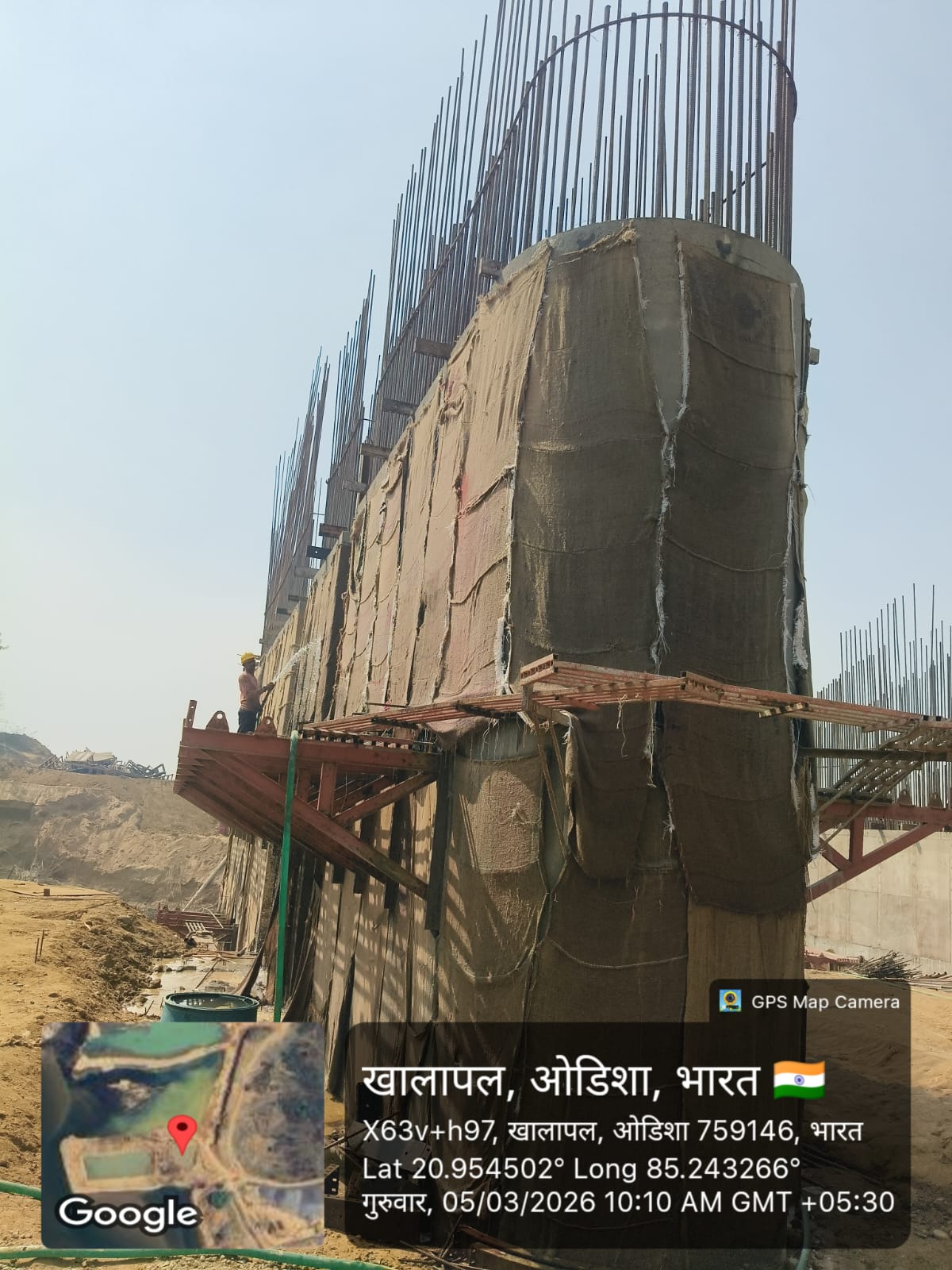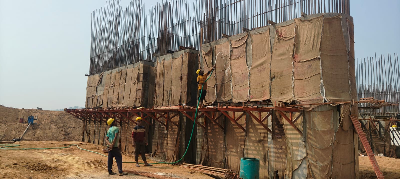 Curing at building column is under progress on 05.03.2026