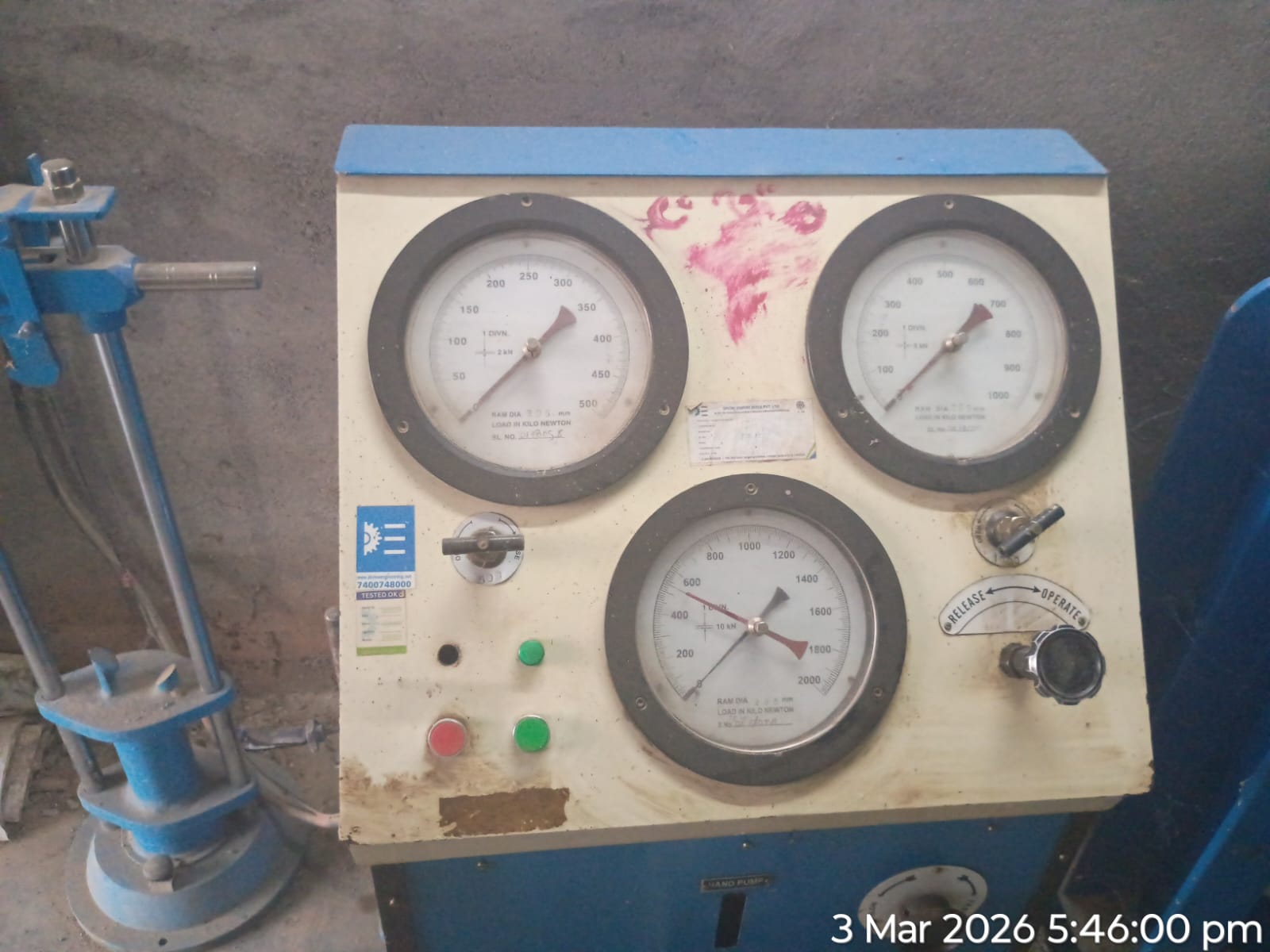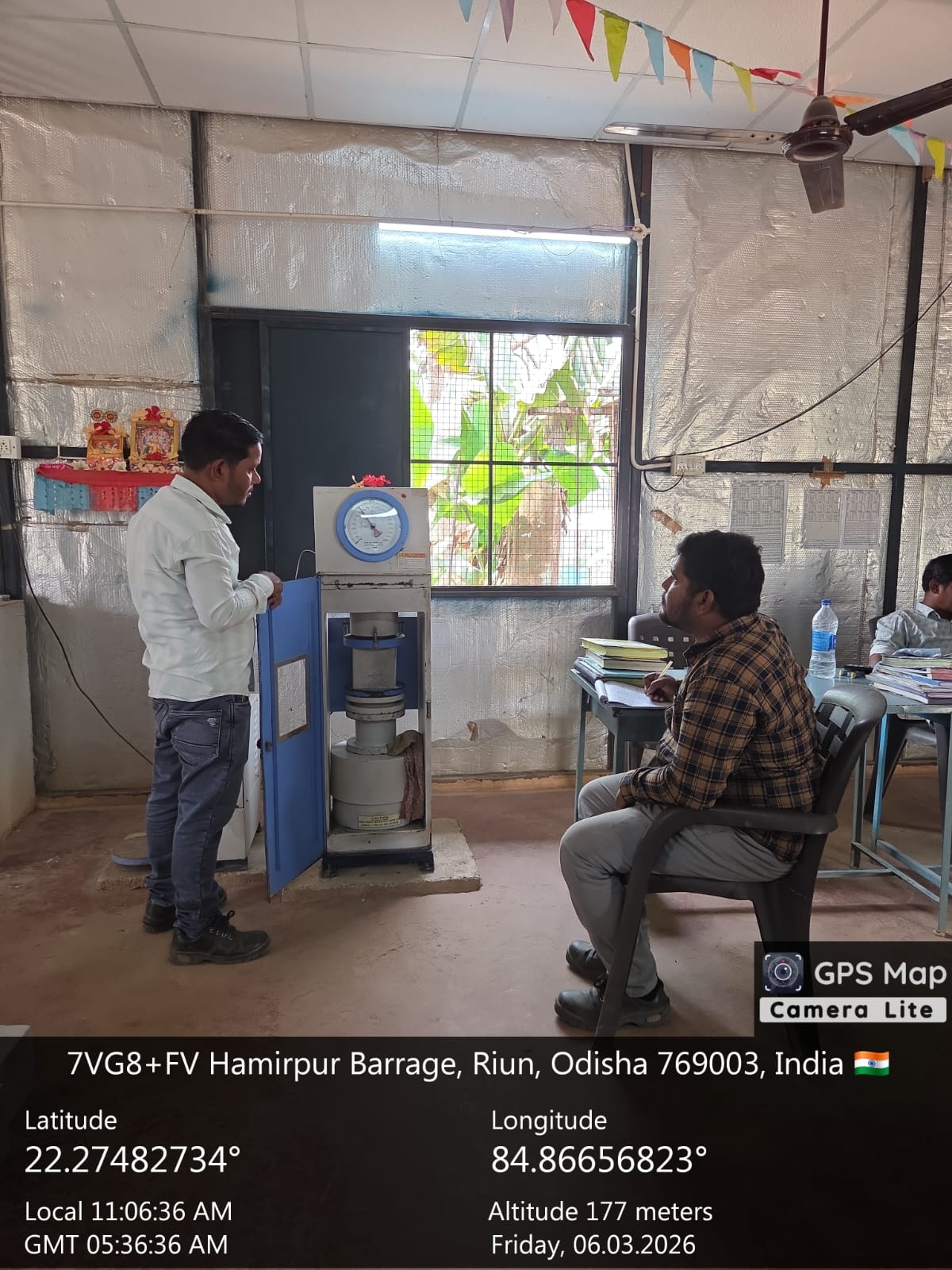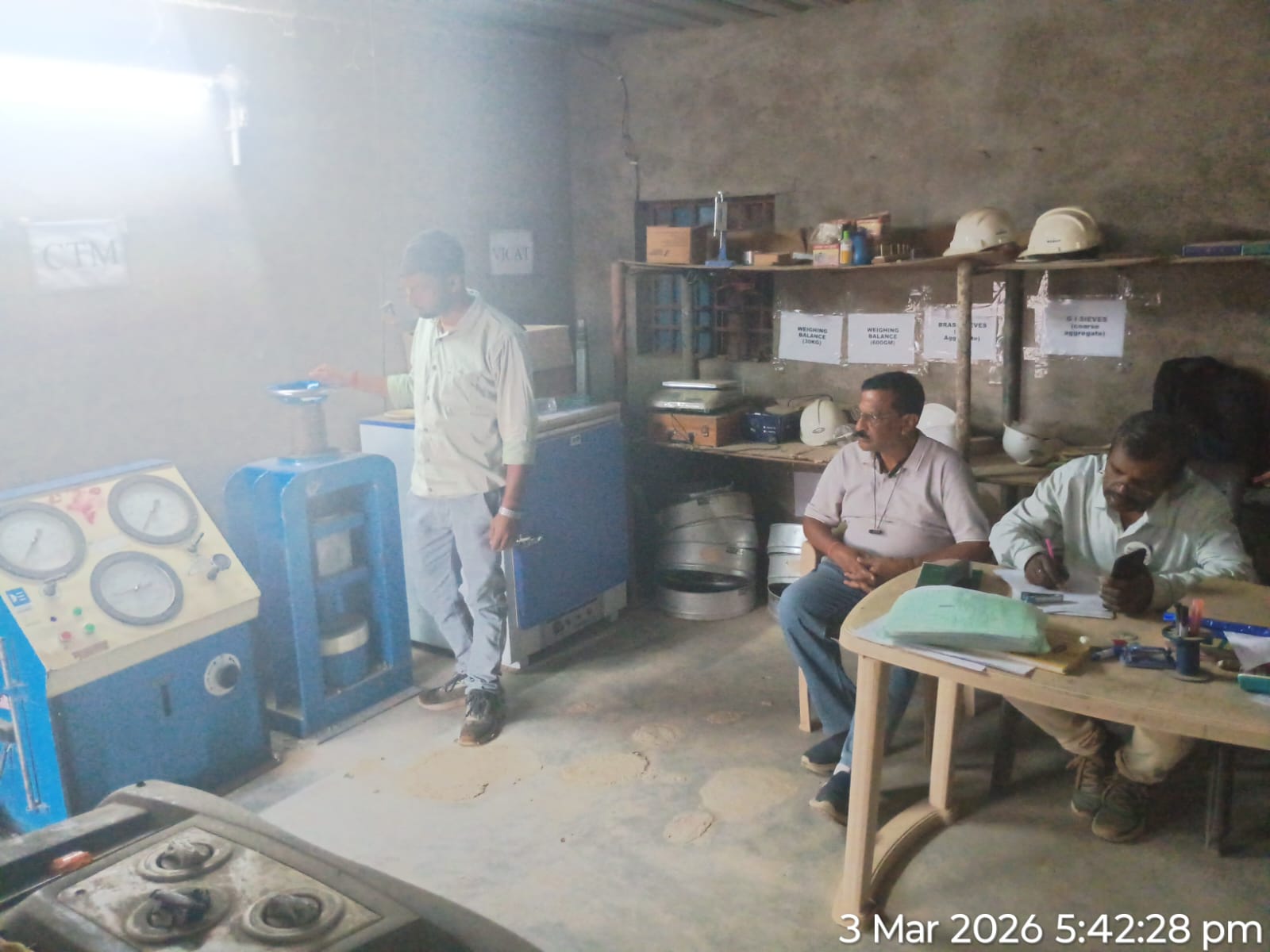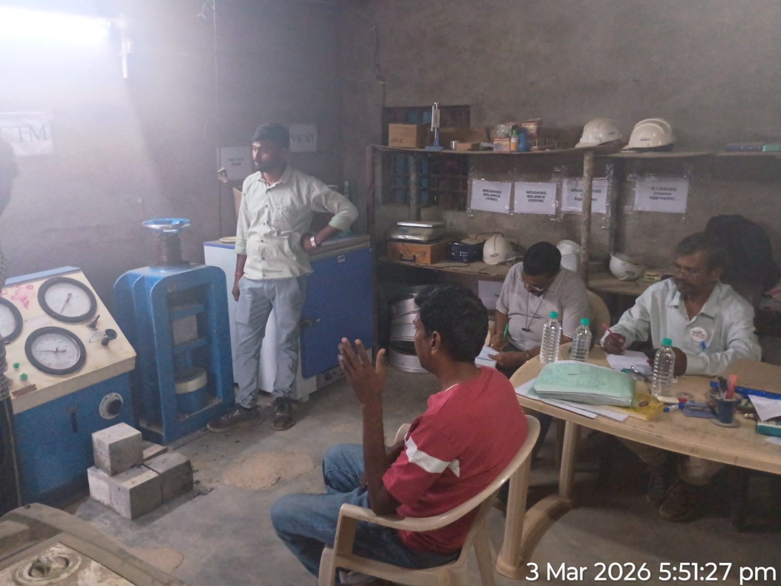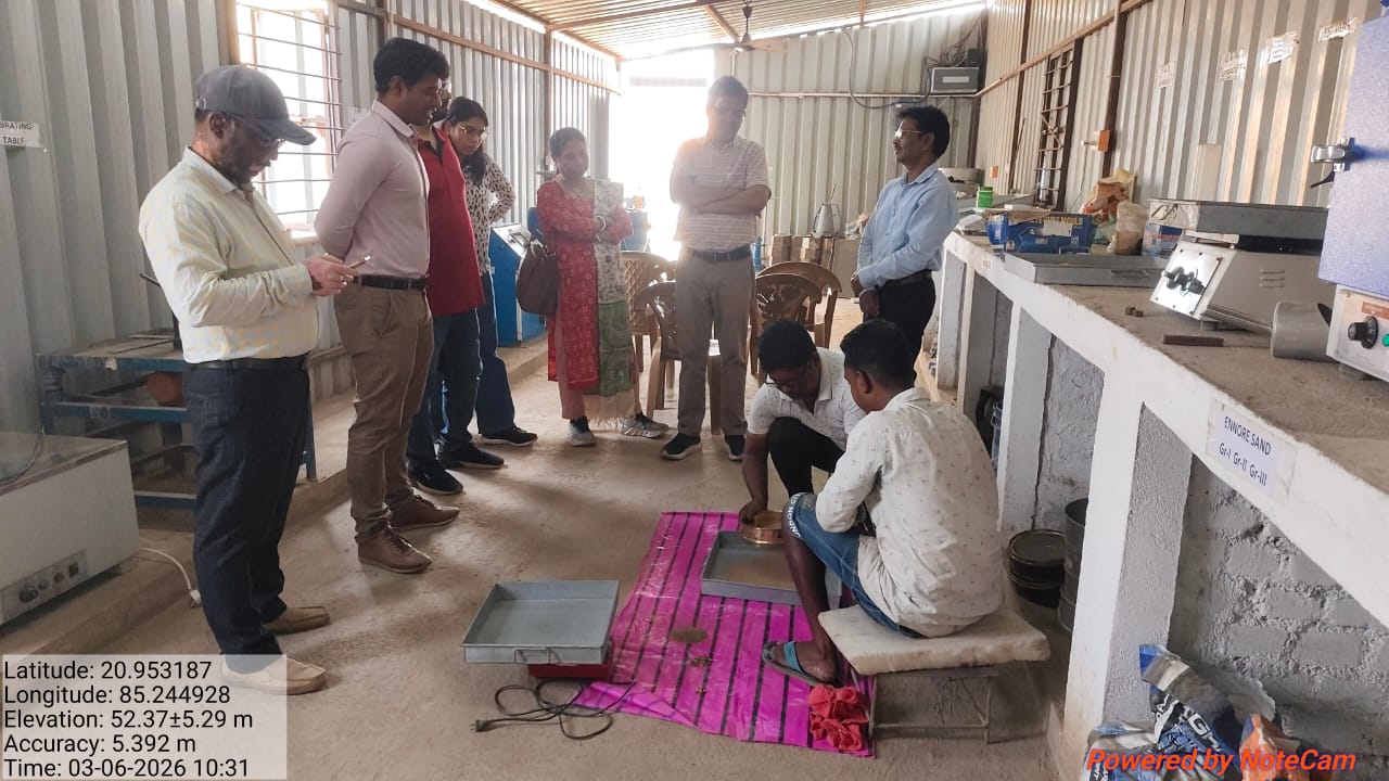 Conducted one set cube test(3 nos. cubes) of M15A20 grade at Site Lab in presence of CME, Sr. Site Engineer of PMC other site Engineers PMC and EPC Agency, ISS Nandagaon. Found the result is compressive strength was 23.41N/mm²( Avg) on 03.03.2026