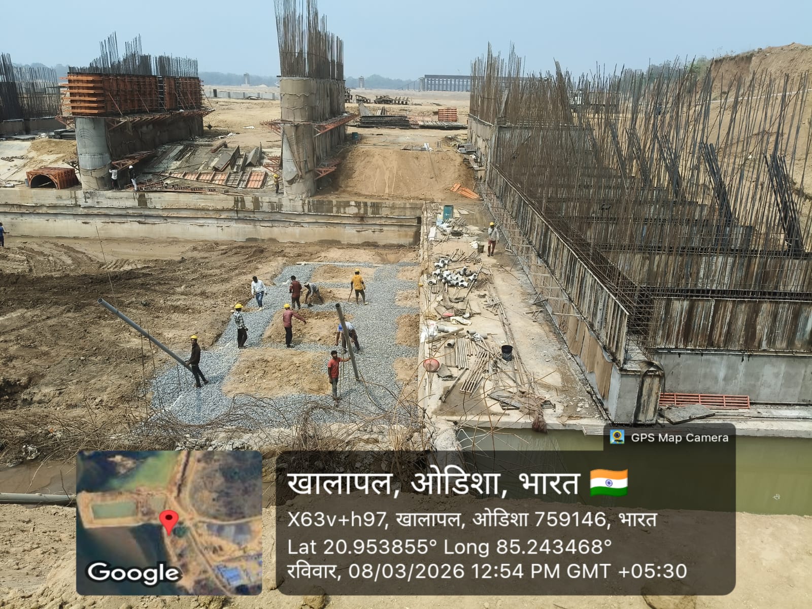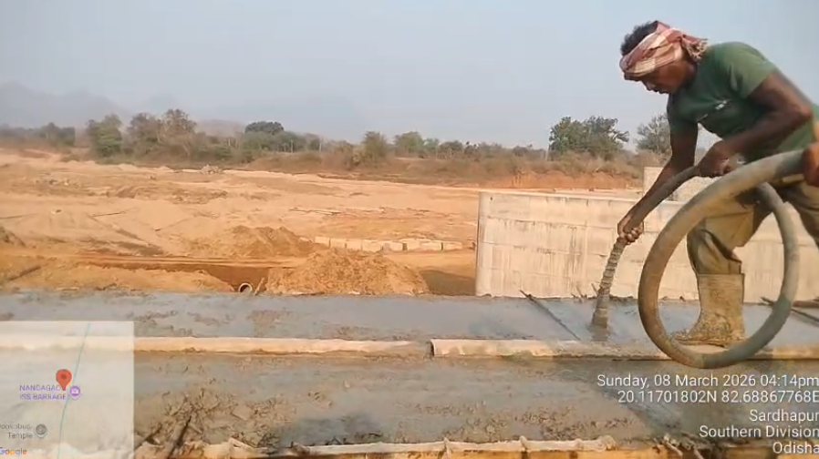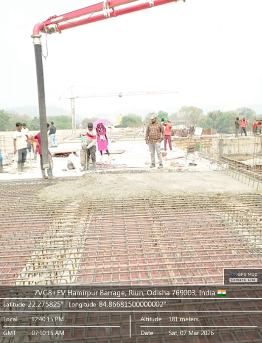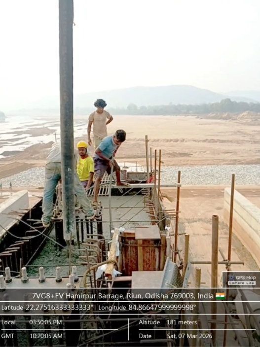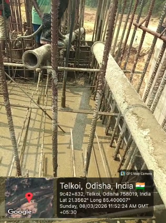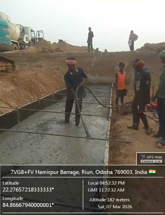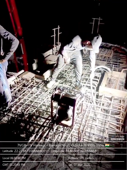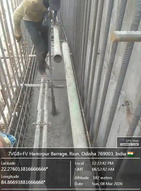 (v) Area is cleaned using air water pressure and passed by SE, KID, Bhawanipatna and ready to place concrete with RCC M35A20 grade upto RL-247.00m on 08.03.2026