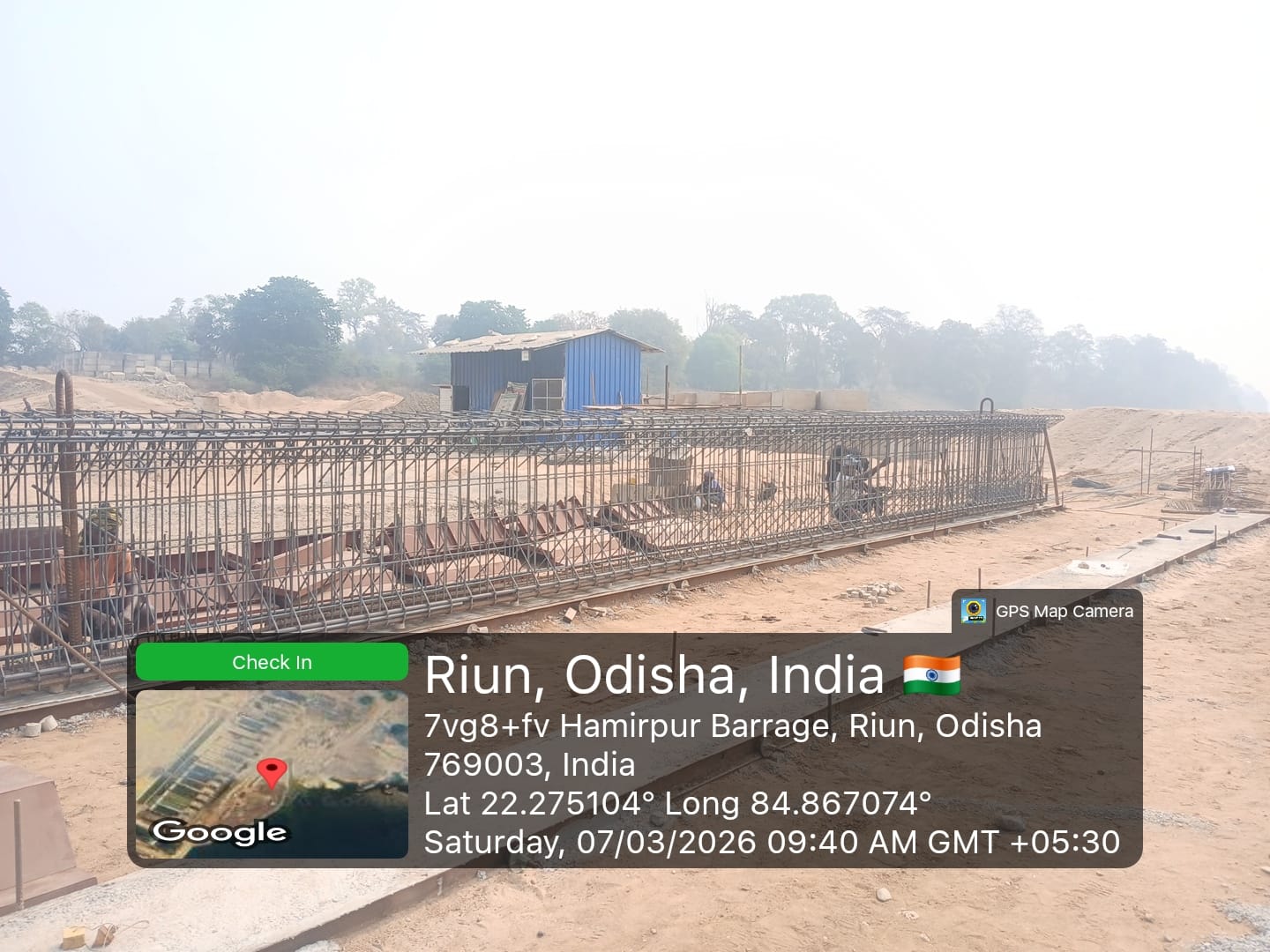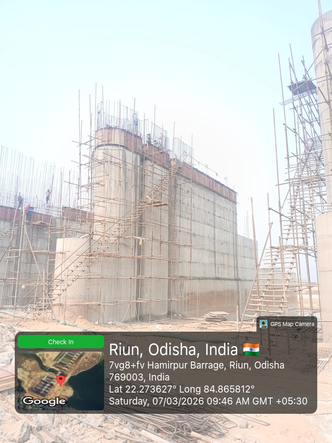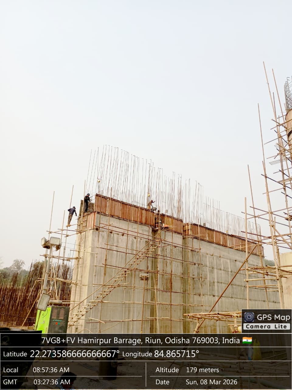 (v) Area is cleaned using air water pressure and passed by SE, KID, Bhawanipatna and ready to place concrete with RCC M35A20 grade upto RL-247.00m on 08.03.2026
