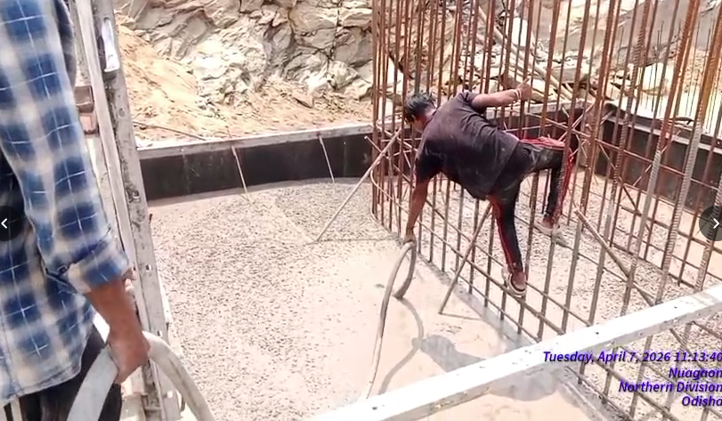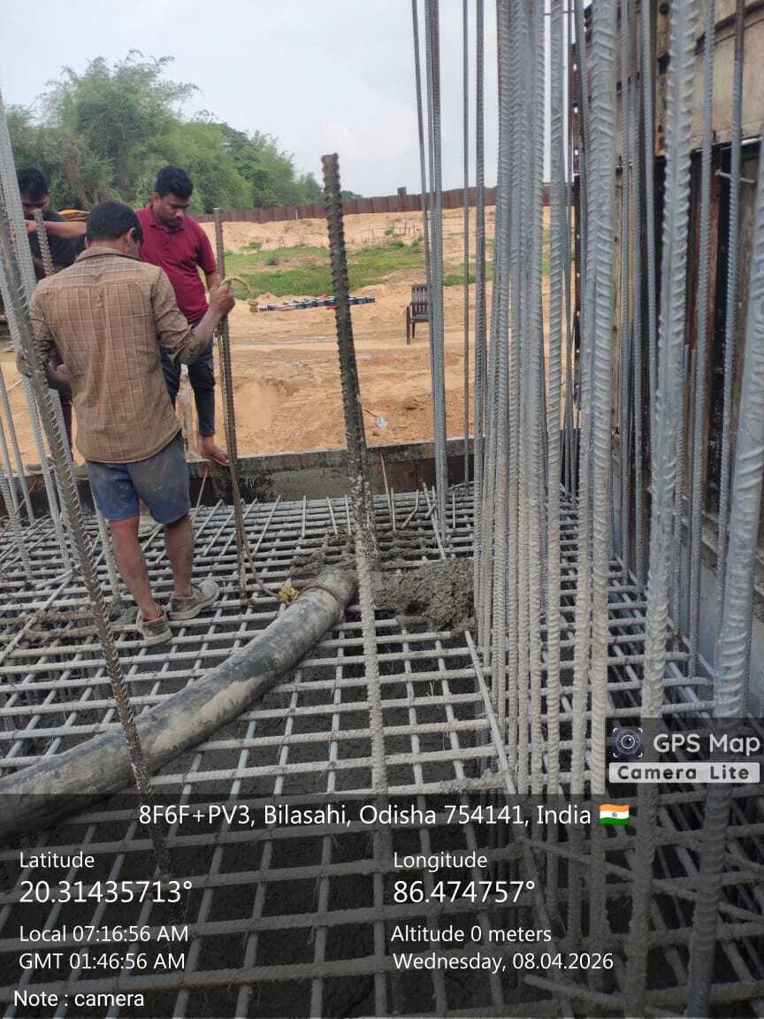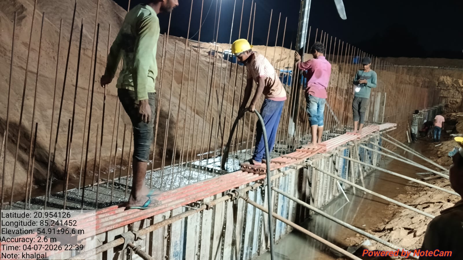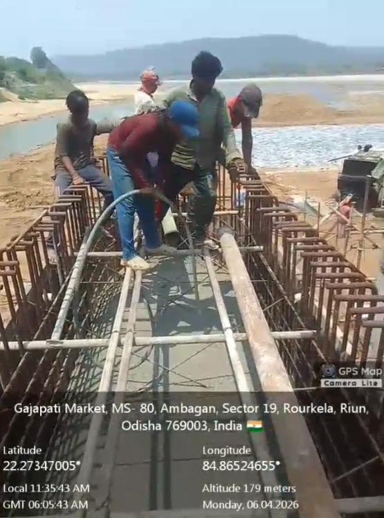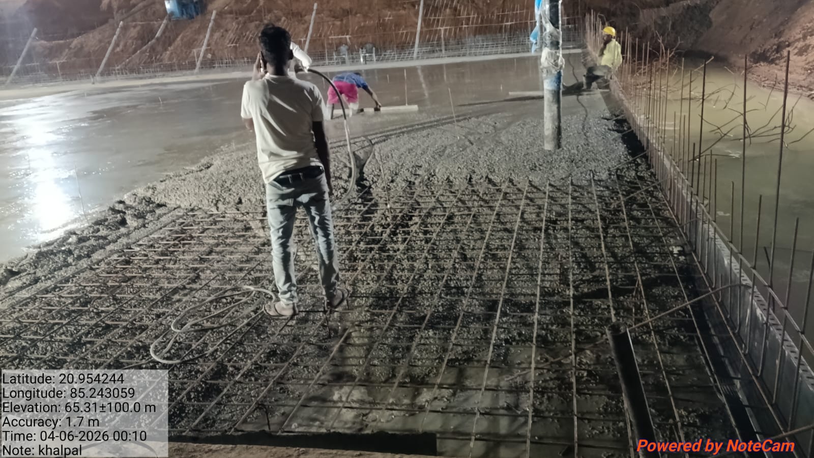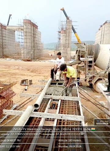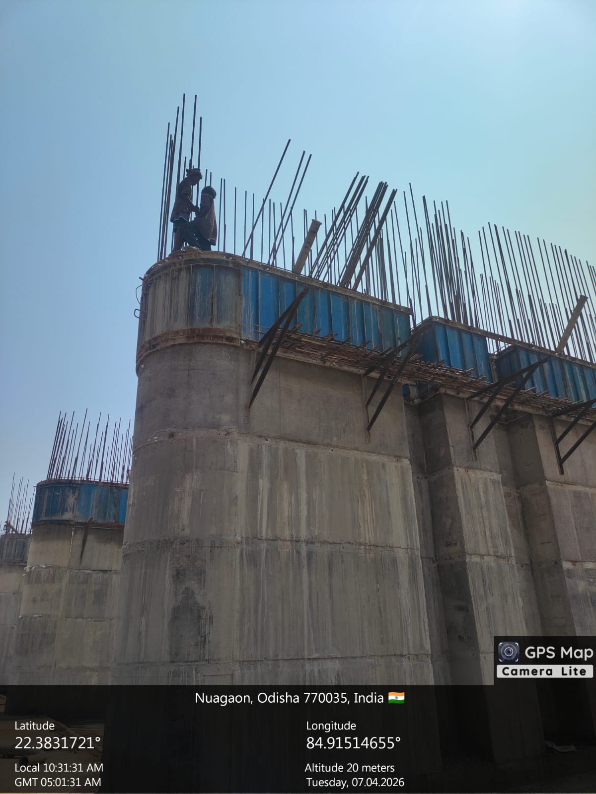 Barrage bay Raft Casting work in progress.In presence of SE,AEE,AE of Akhuapada irrigation division,PMC and representative of Agency of Baitarani Iss.Till now Volume of Concrete Poured 1167 Cum-07.04.2026