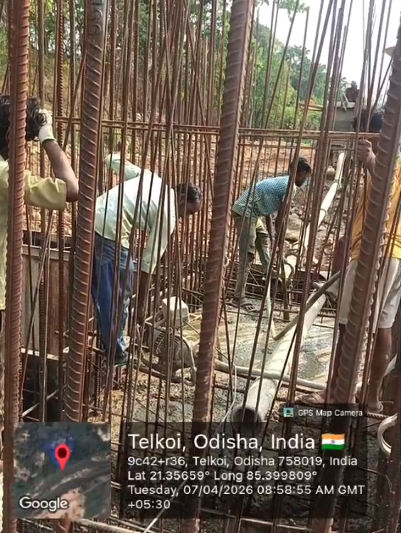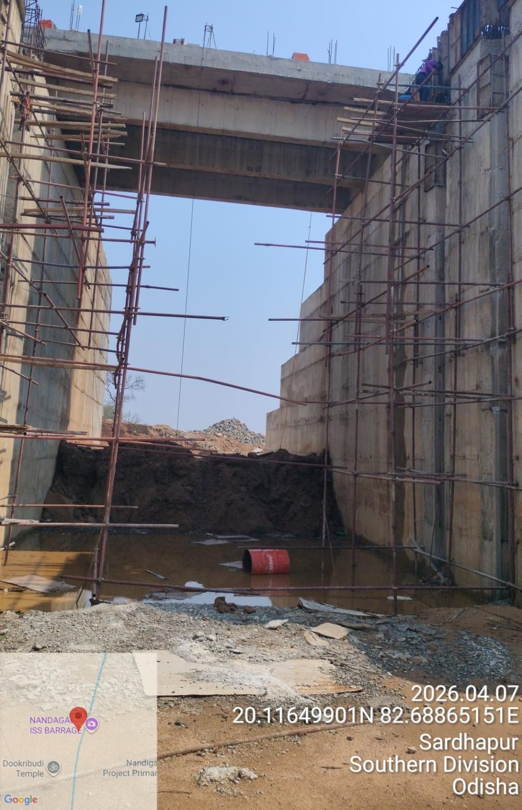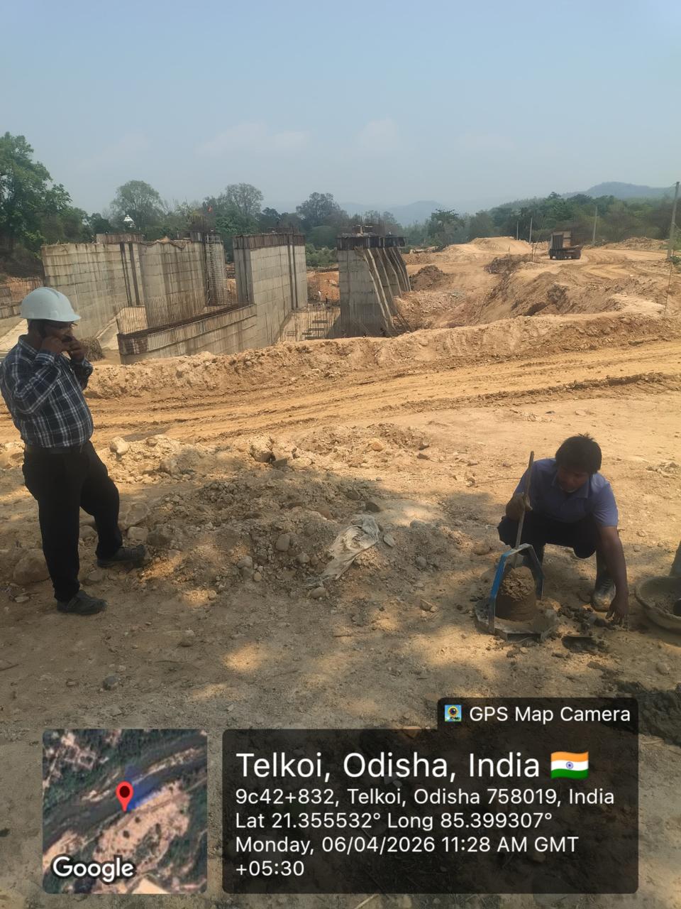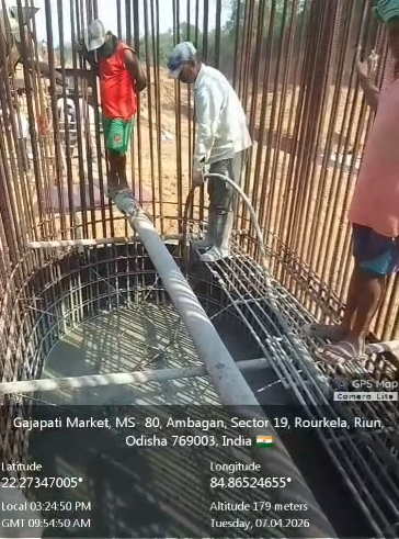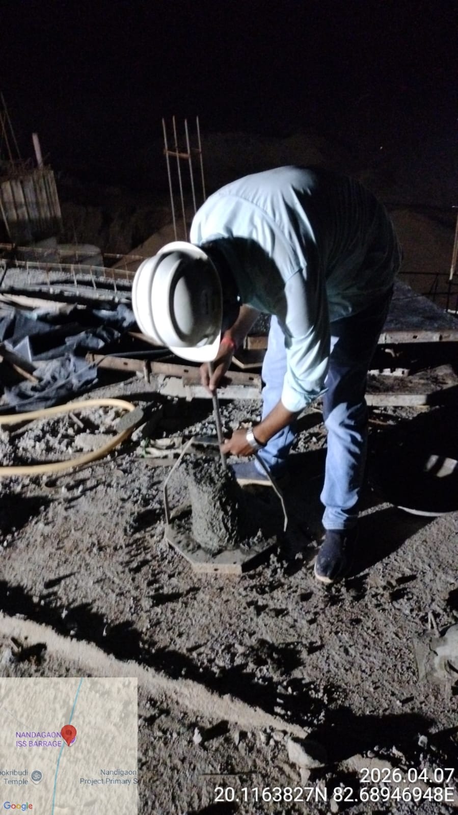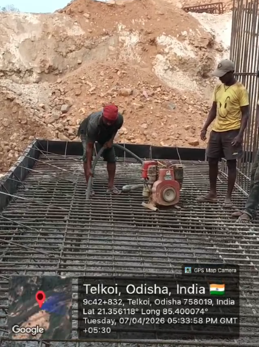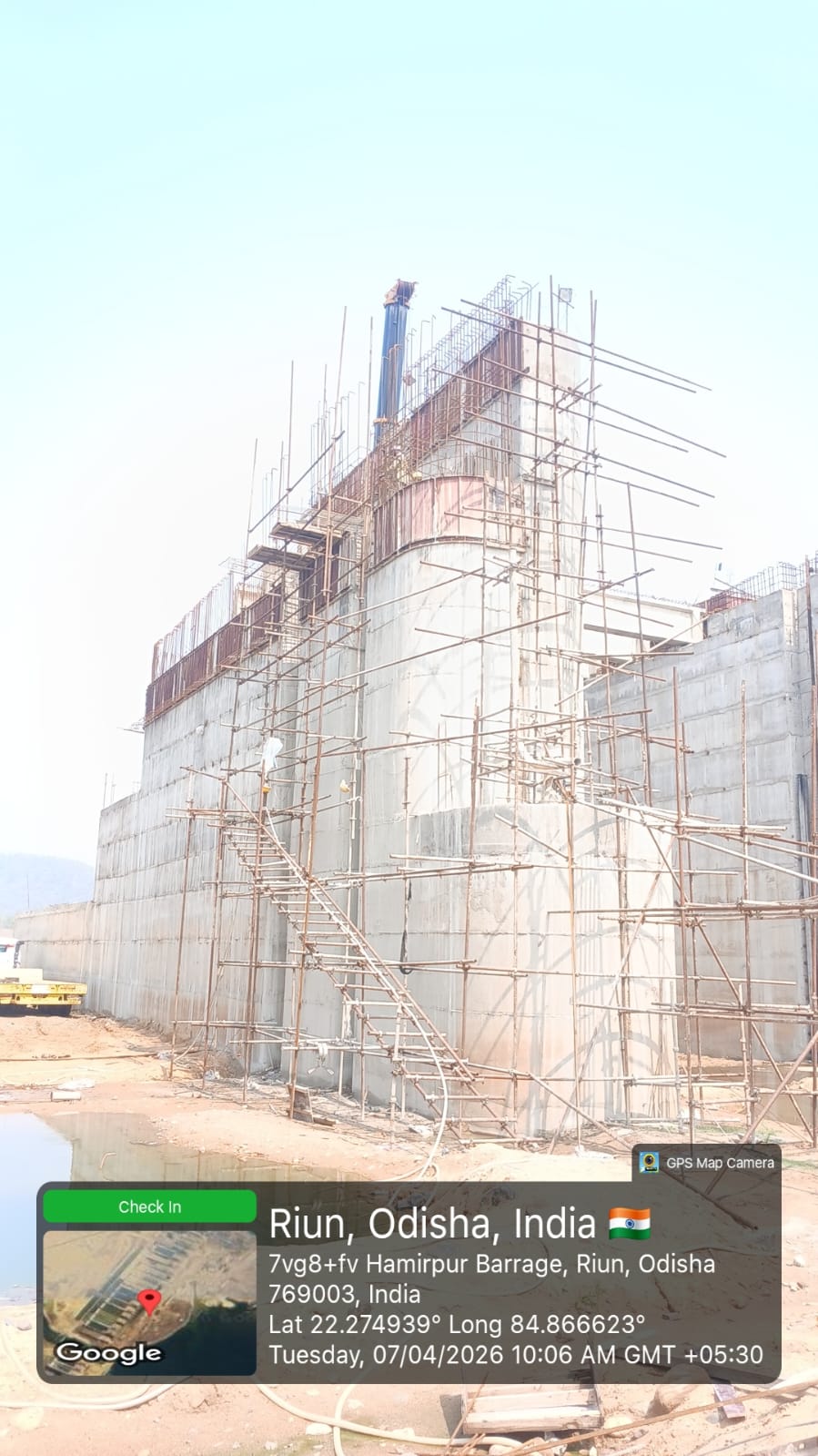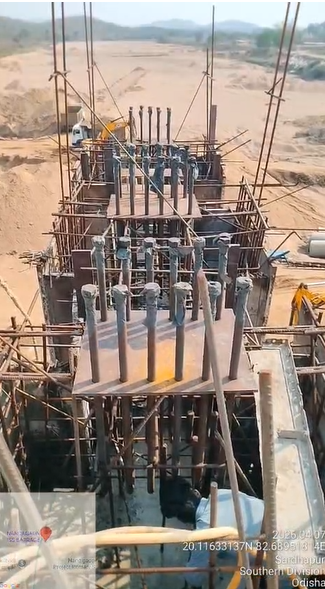 Barrage bay Raft Casting work in progress.In presence of SE,AEE,AE of Akhuapada irrigation division,PMC and representative of Agency of Baitarani Iss.Till now Volume of Concrete Poured 1167 Cum-07.04.2026