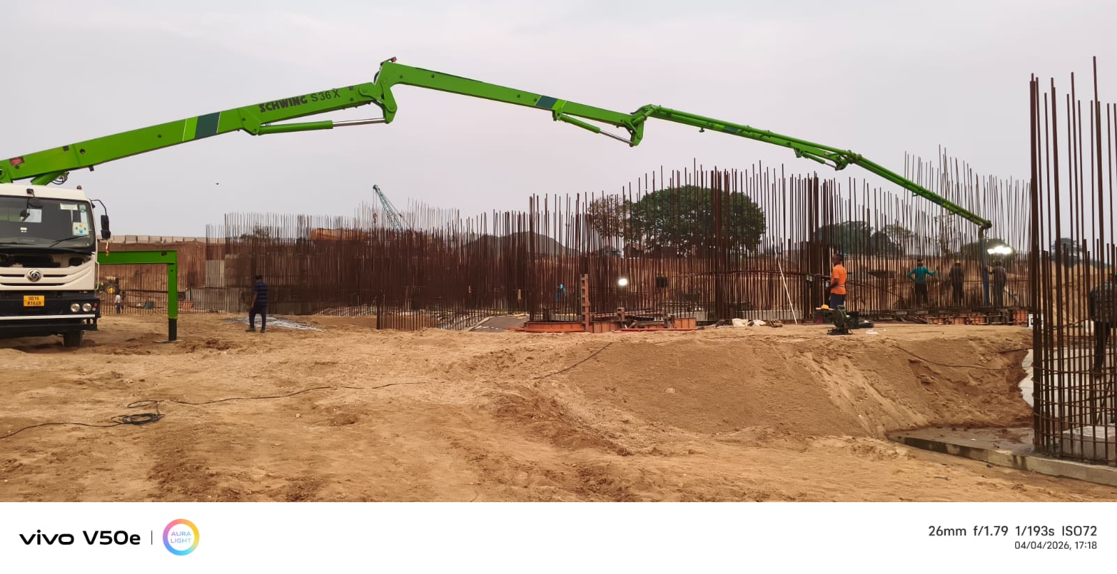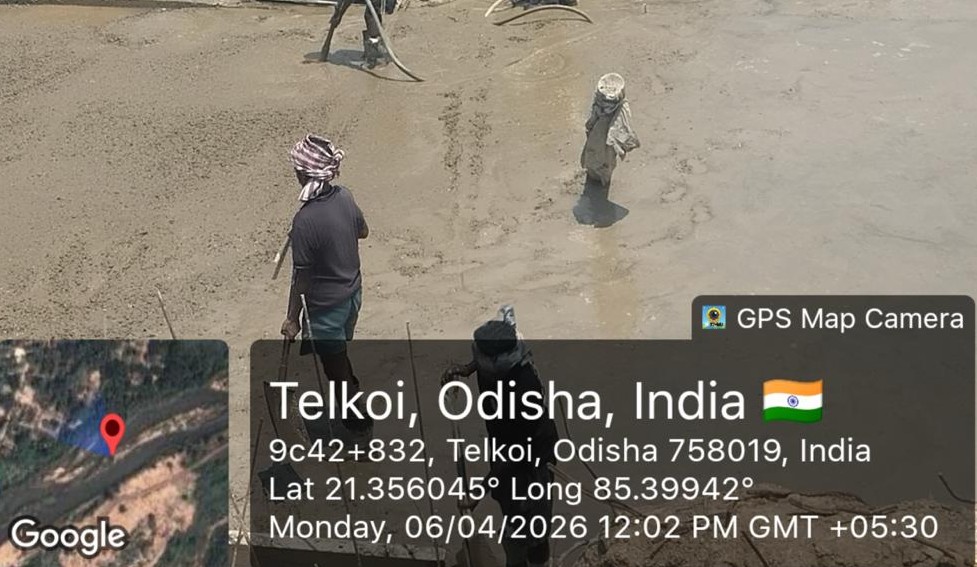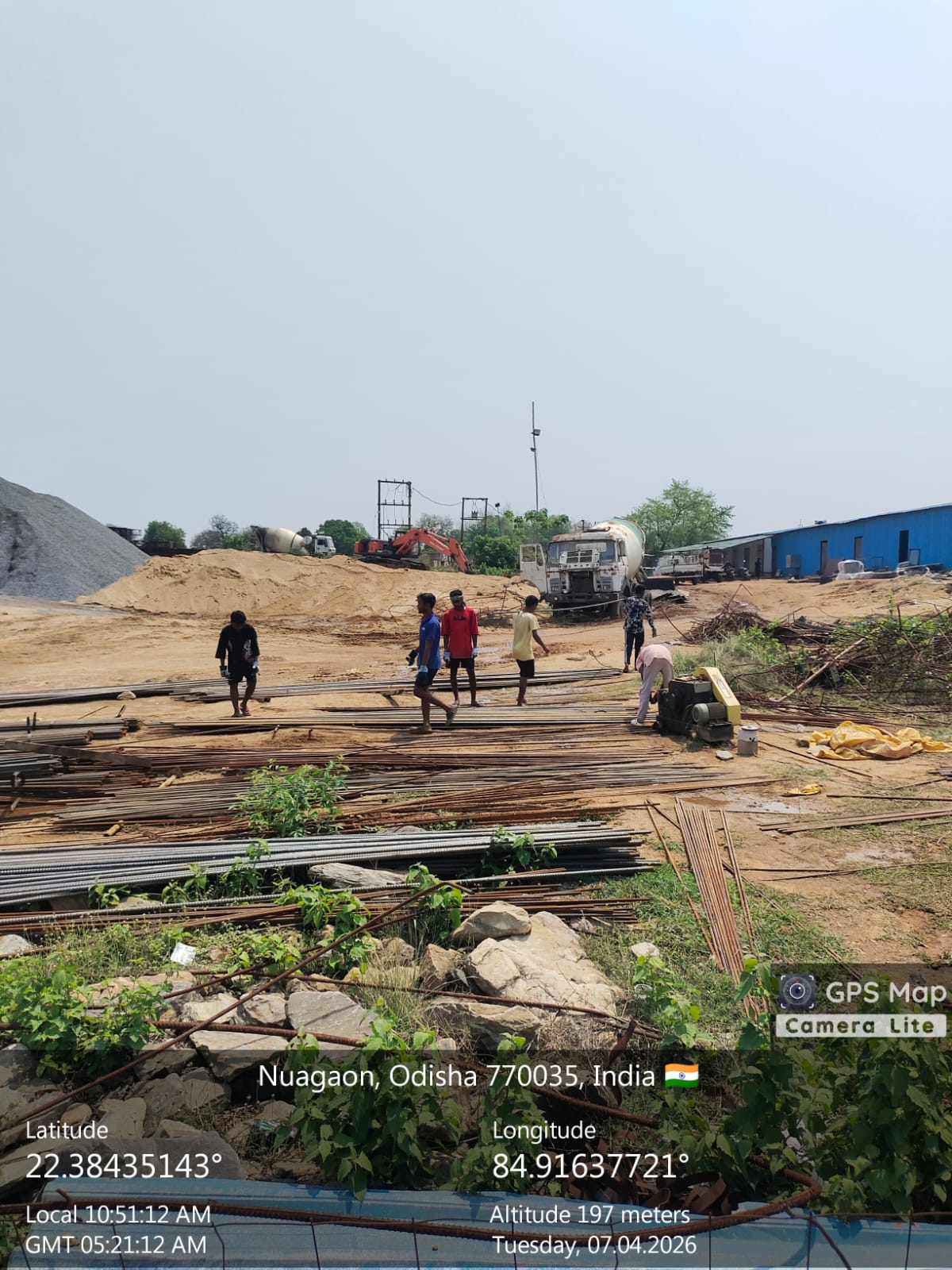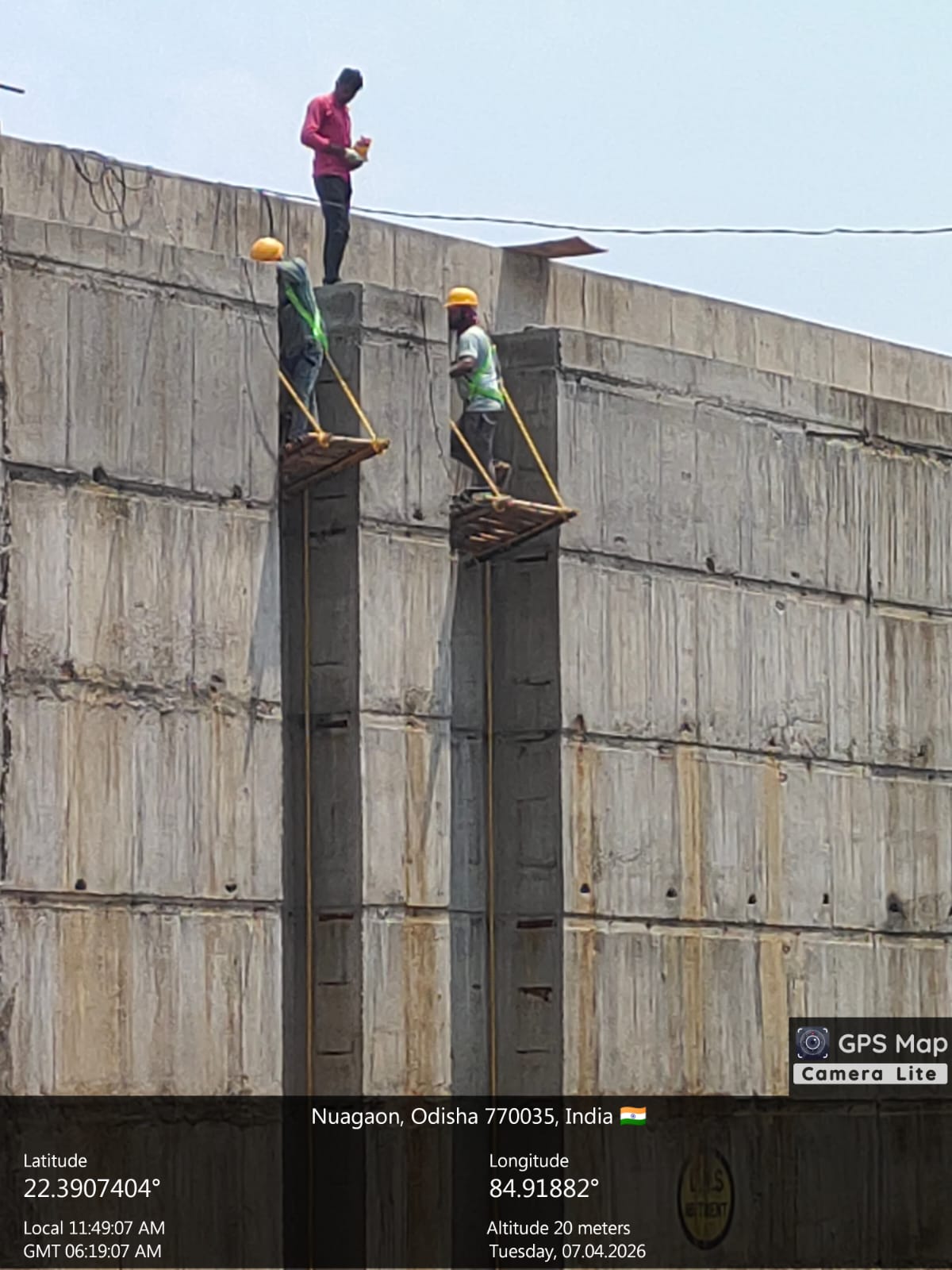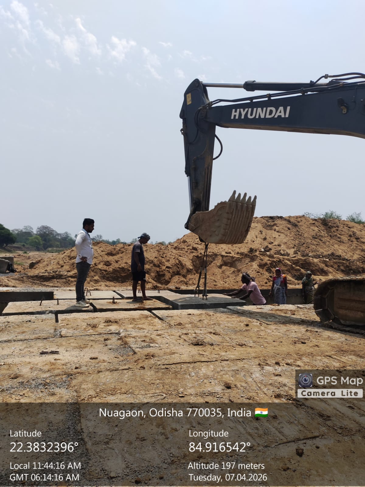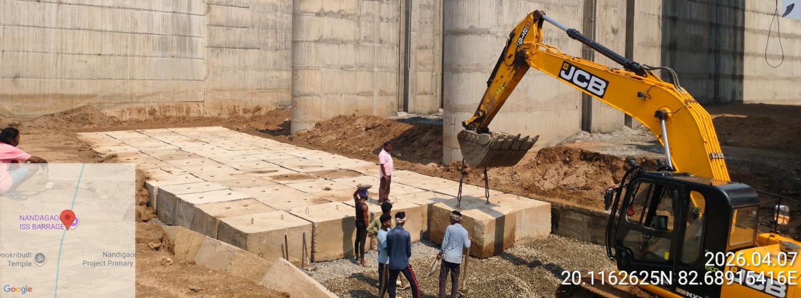 Barrage bay Raft Casting work in progress.In presence of SE,AEE,AE of Akhuapada irrigation division,PMC and representative of Agency of Baitarani Iss.Till now Volume of Concrete Poured 1167 Cum-07.04.2026