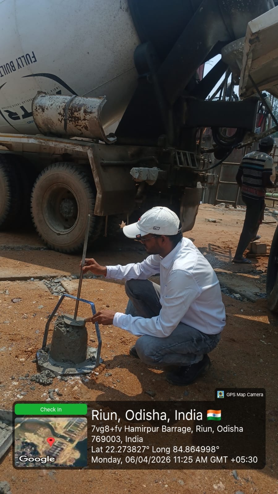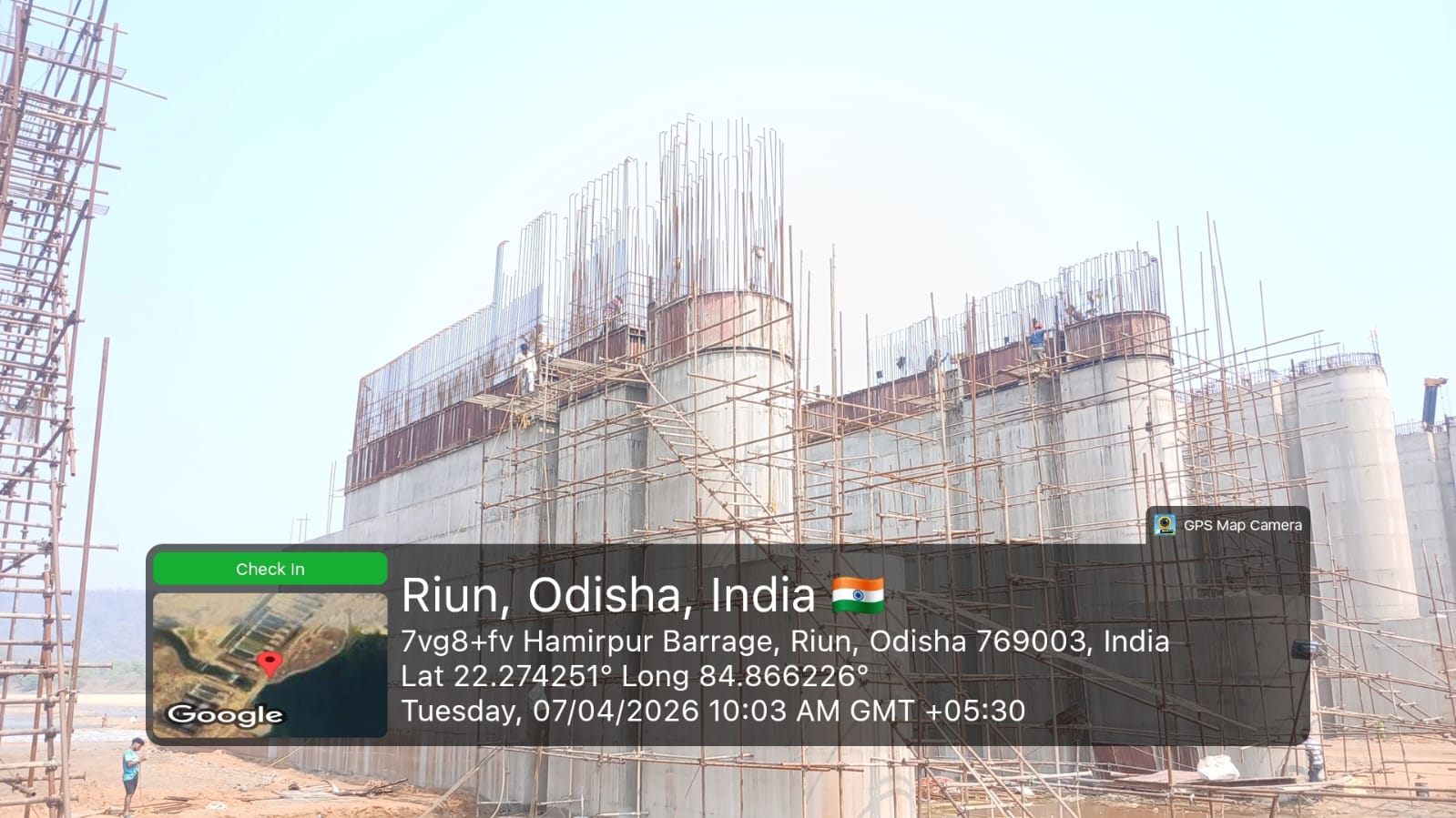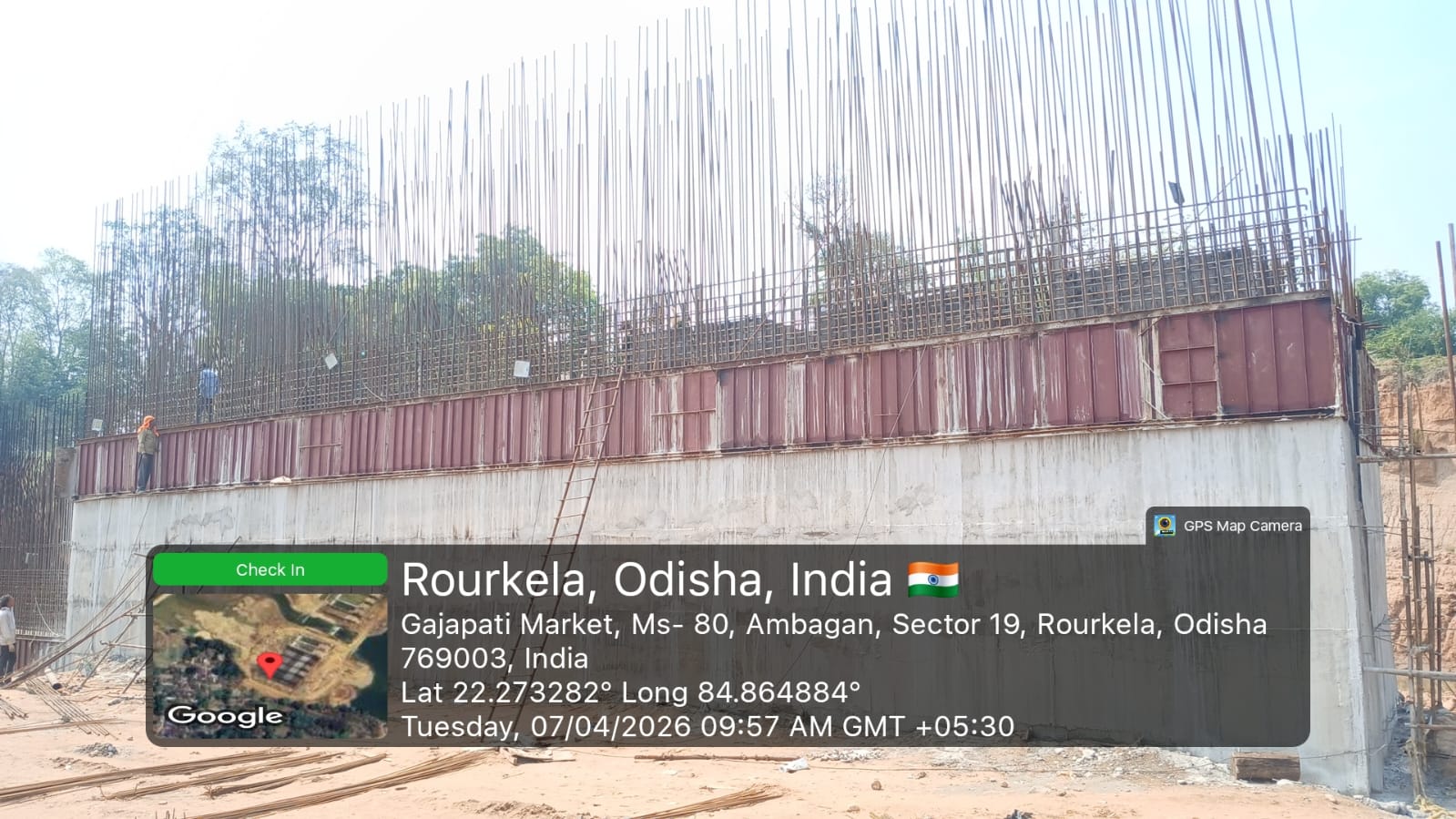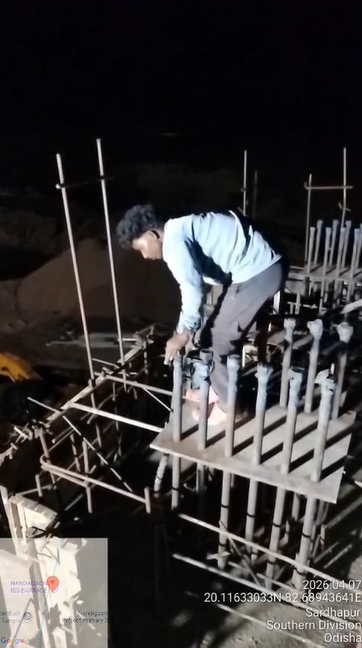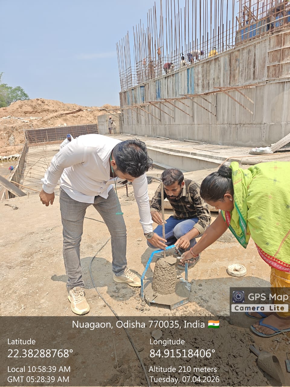 Barrage bay Raft Casting work in progress.In presence of SE,AEE,AE of Akhuapada irrigation division,PMC and representative of Agency of Baitarani Iss.Till now Volume of Concrete Poured 1167 Cum-07.04.2026