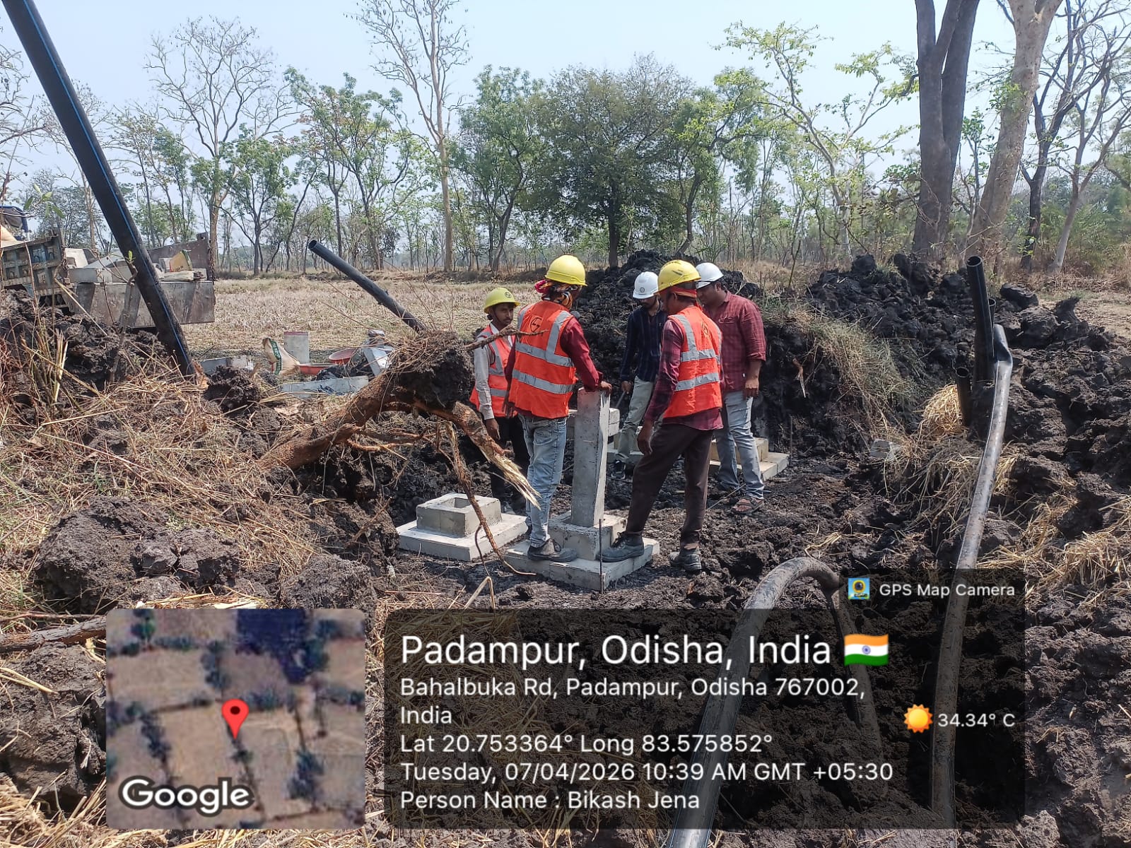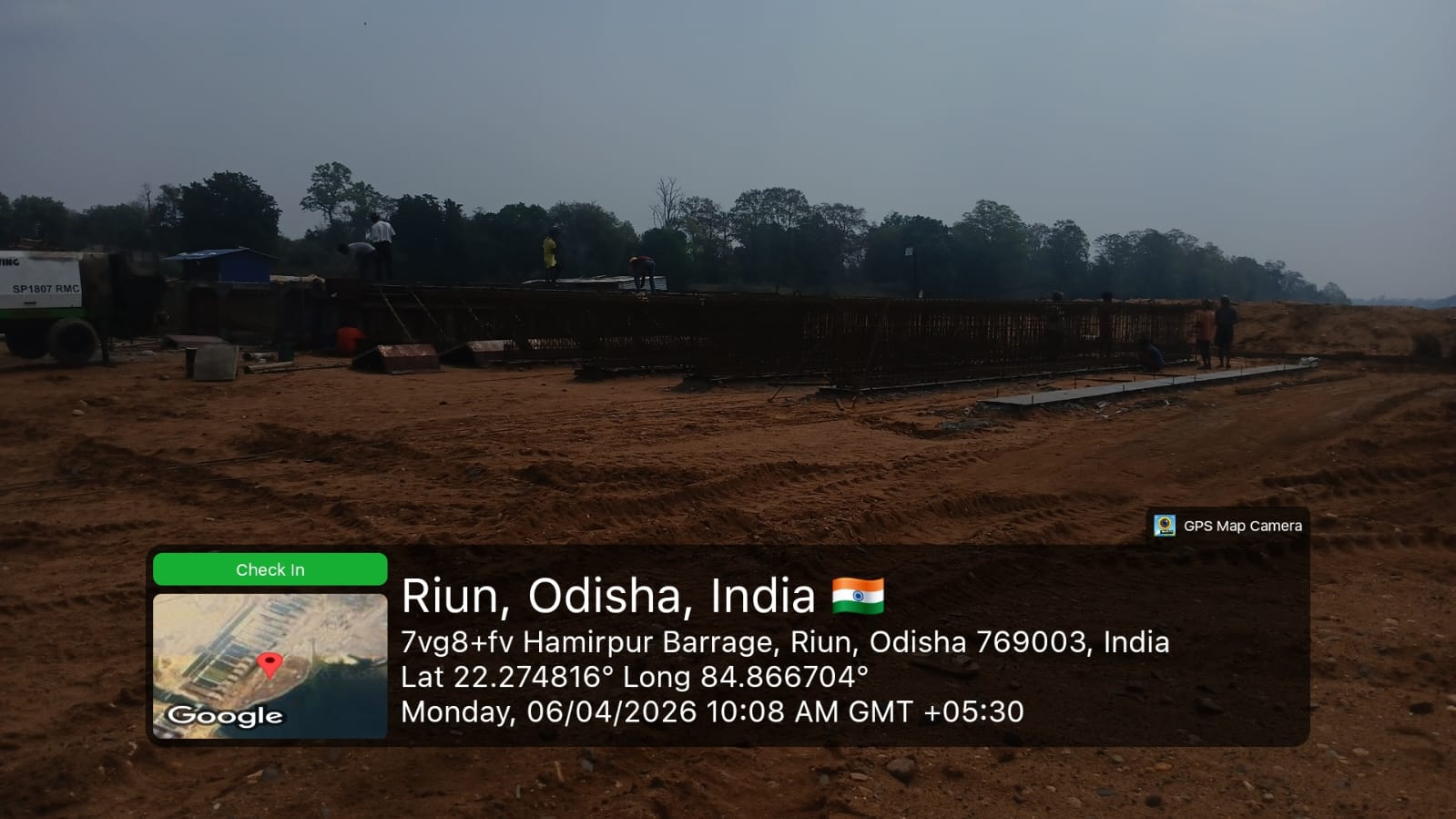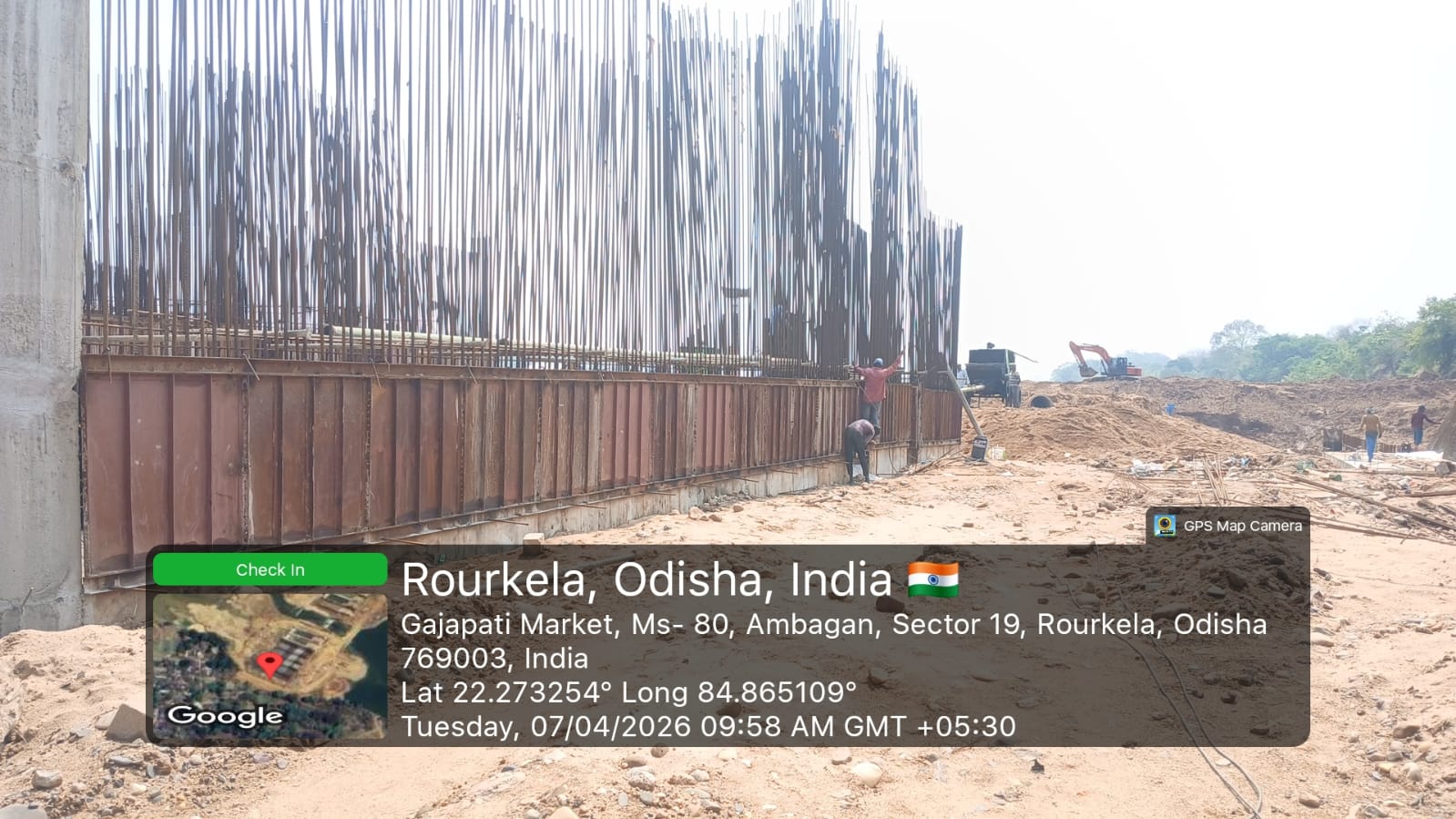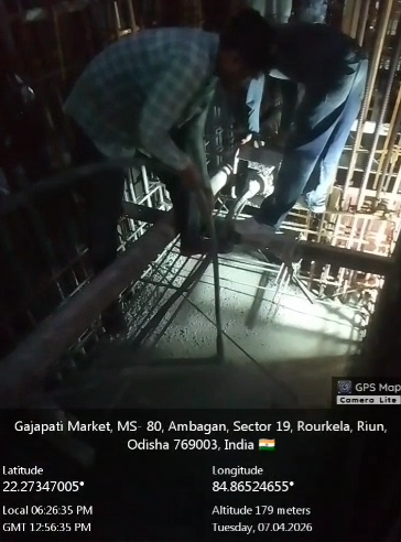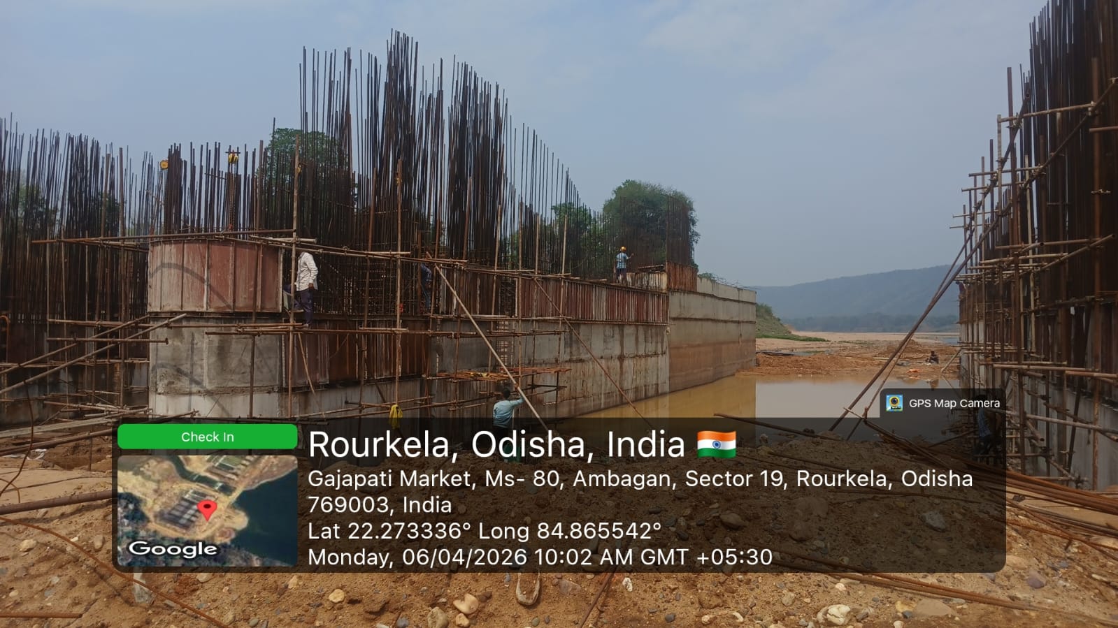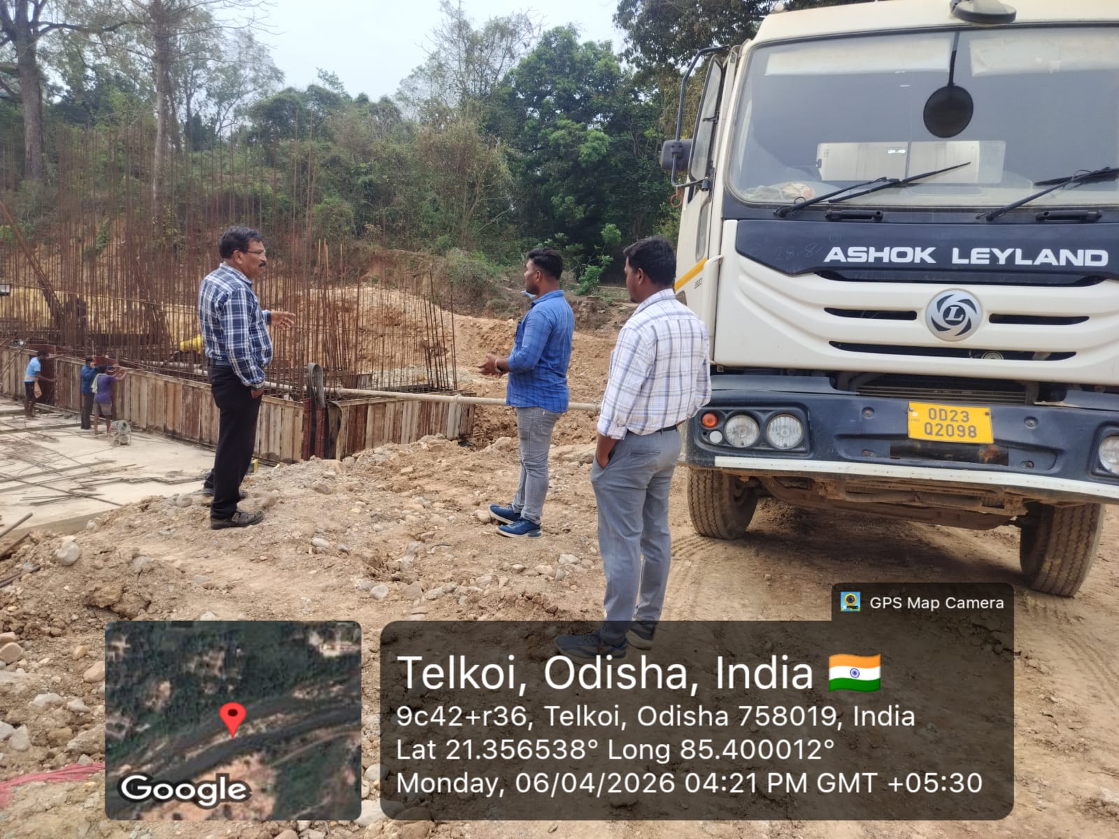 Barrage bay Raft Casting work in progress.In presence of SE,AEE,AE of Akhuapada irrigation division,PMC and representative of Agency of Baitarani Iss.Till now Volume of Concrete Poured 1167 Cum-07.04.2026