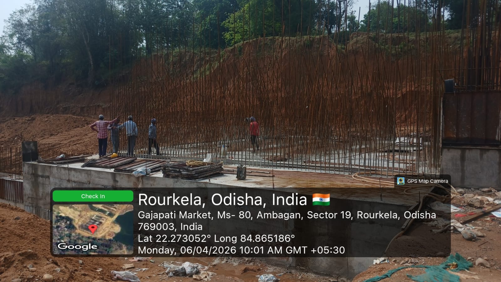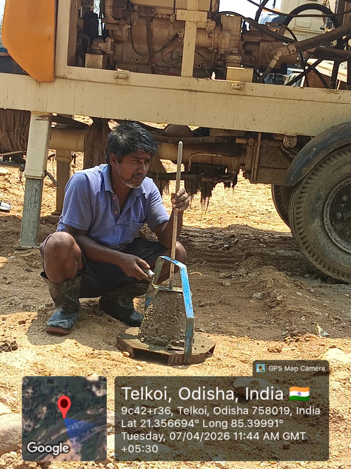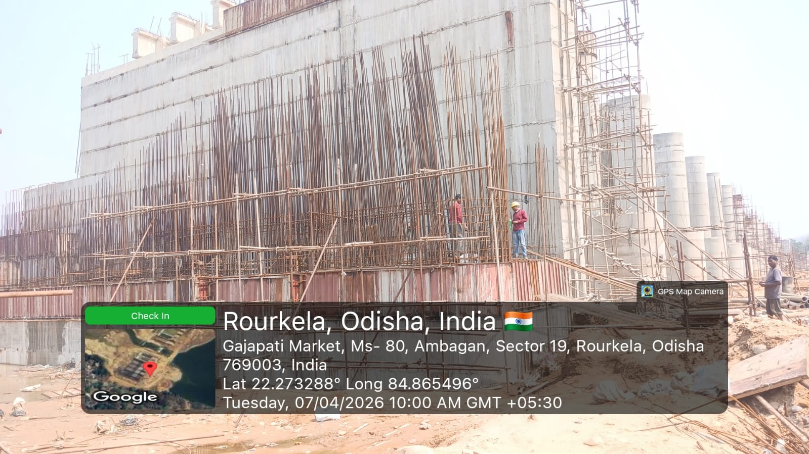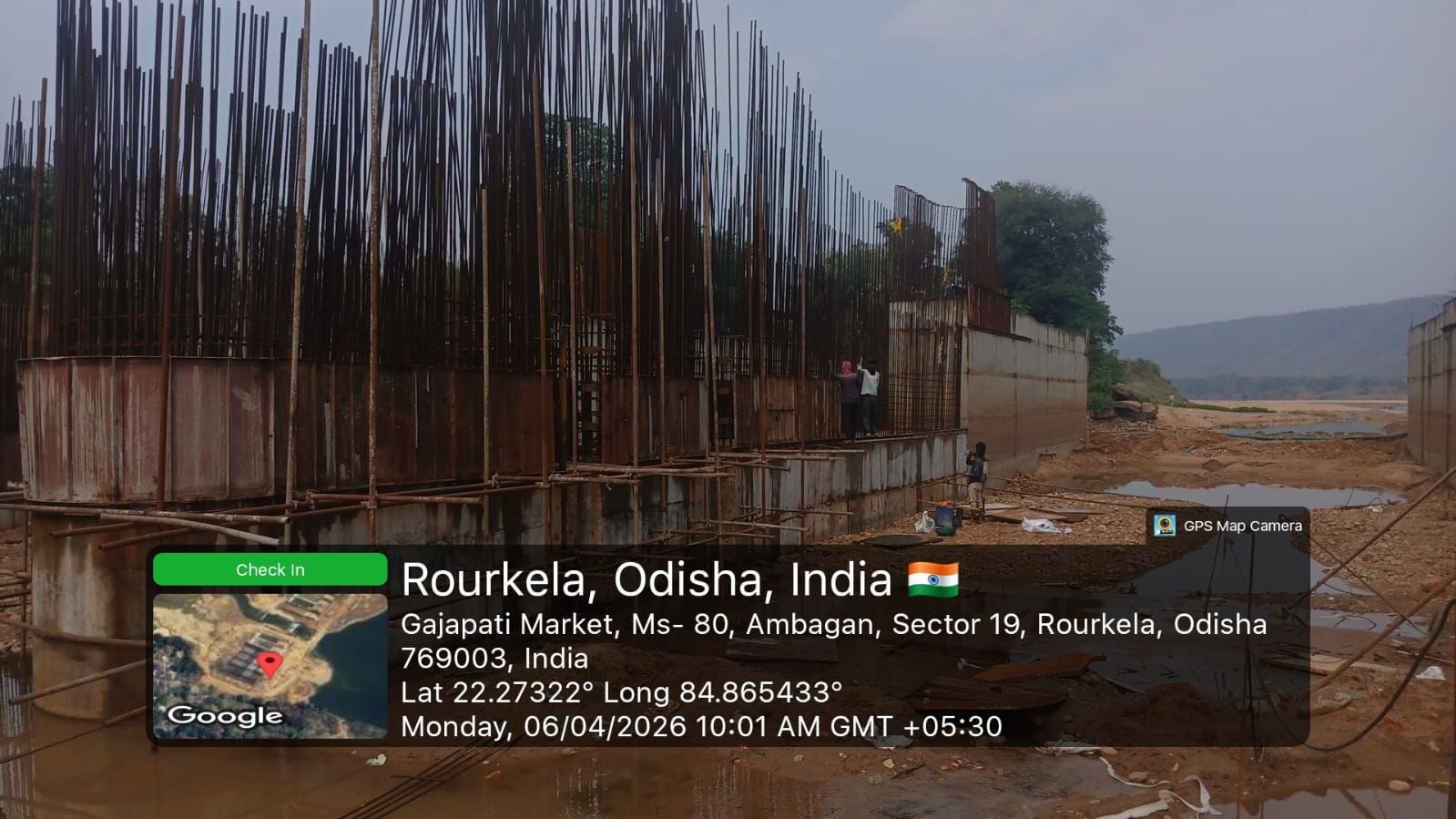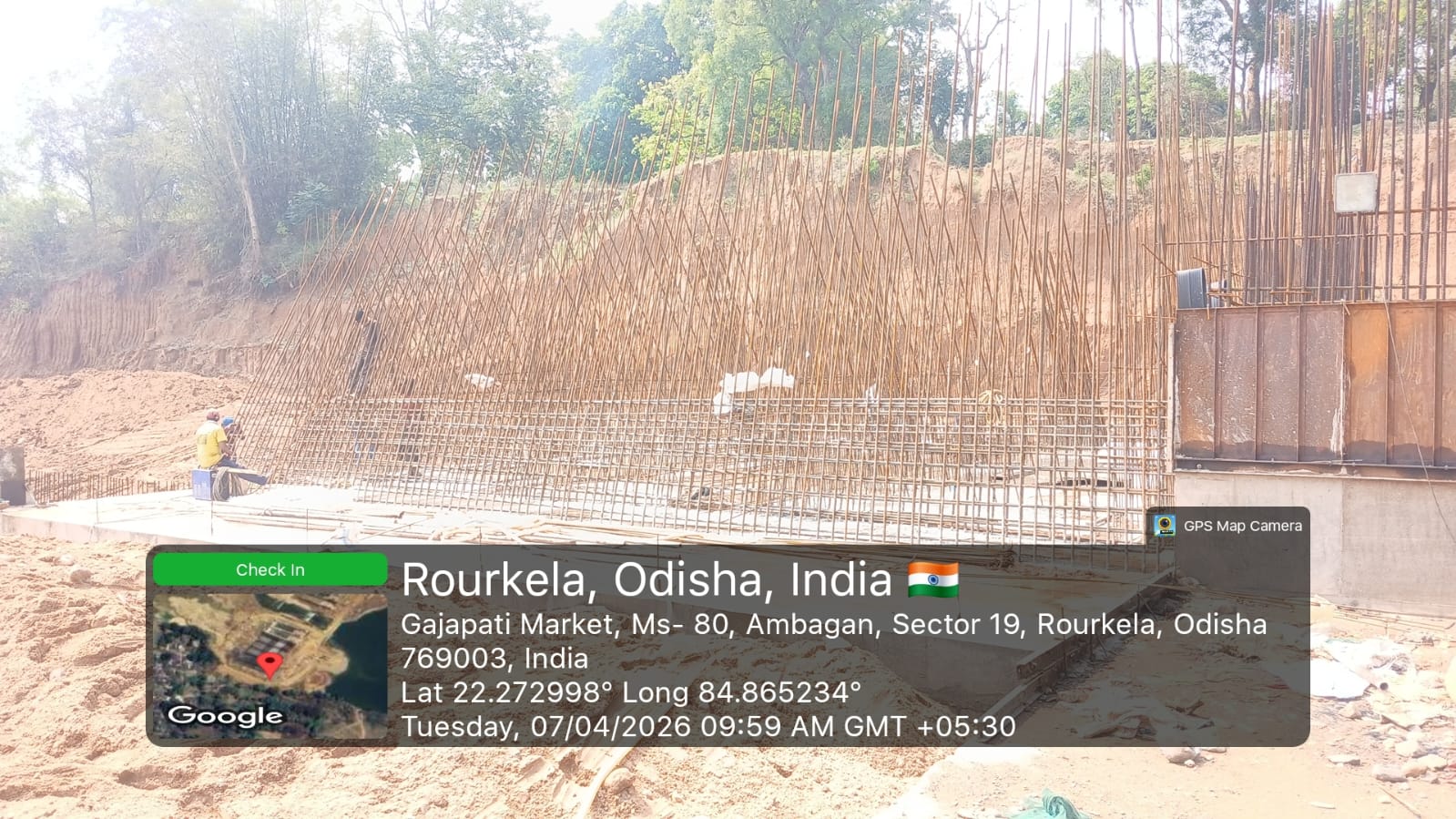 Barrage bay Raft Casting work in progress.In presence of SE,AEE,AE of Akhuapada irrigation division,PMC and representative of Agency of Baitarani Iss.Till now Volume of Concrete Poured 1167 Cum-07.04.2026
