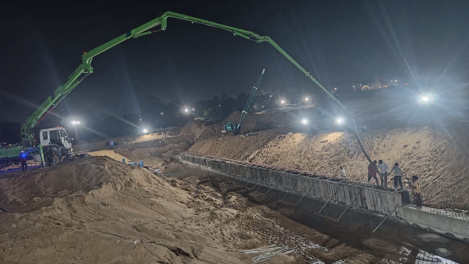 Concreting M25A20 of Barrage Bay No-2 Mid Cut-off, 2nd lift is under progress in presence of Client & PSS Team.
