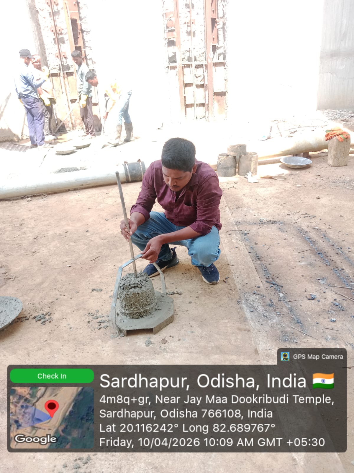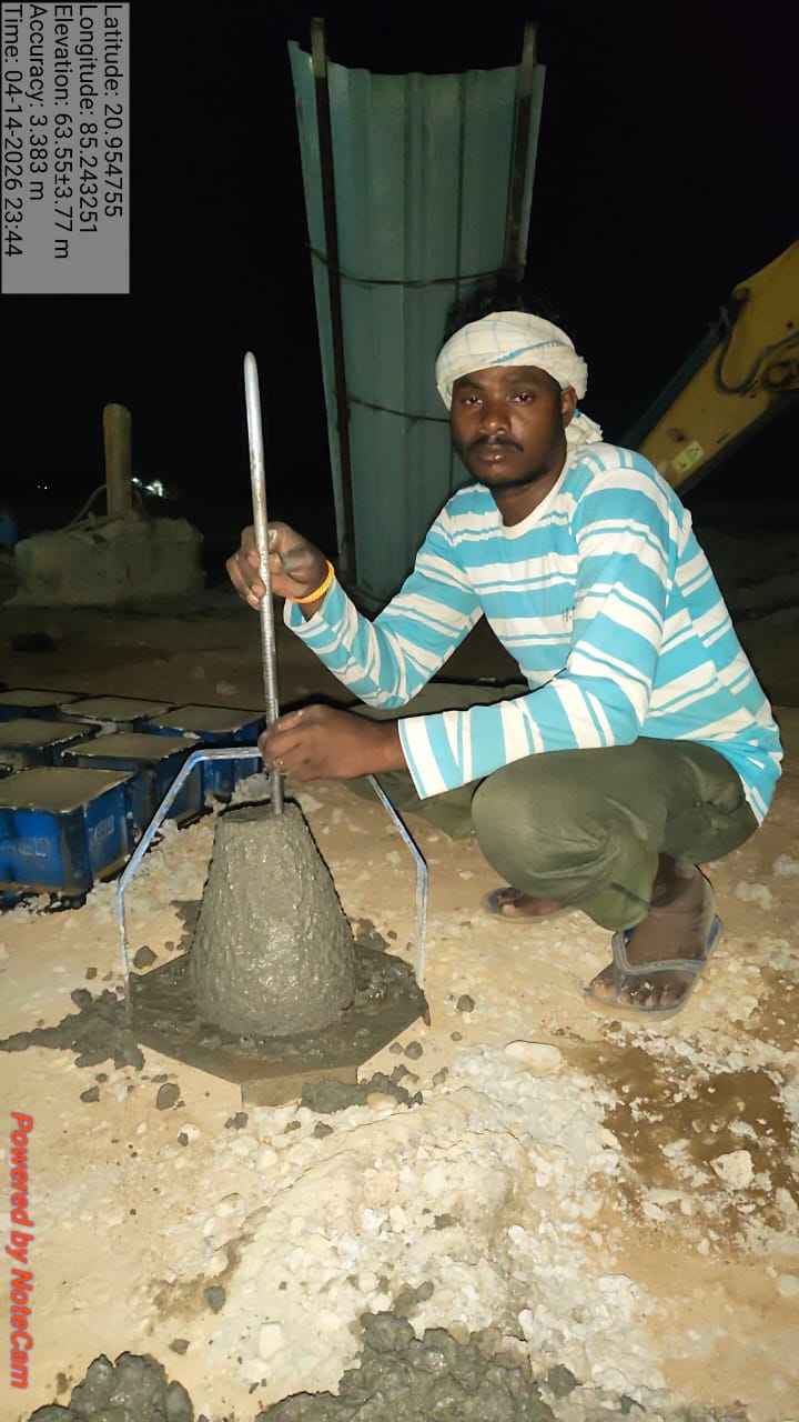 Slump testing M20A20 (Value 75 mm) of Pier No-8 to RHS (D2) U/S Gravity floor done in presence of Client & PSS Team.