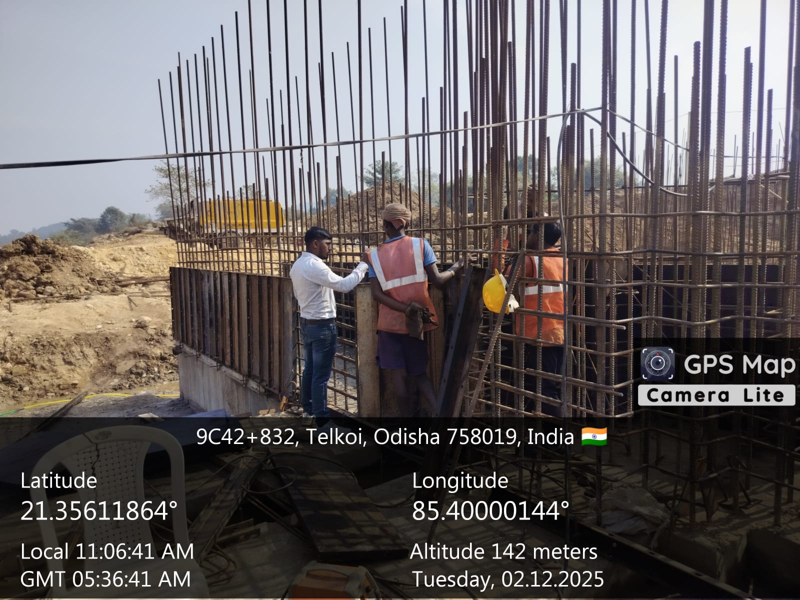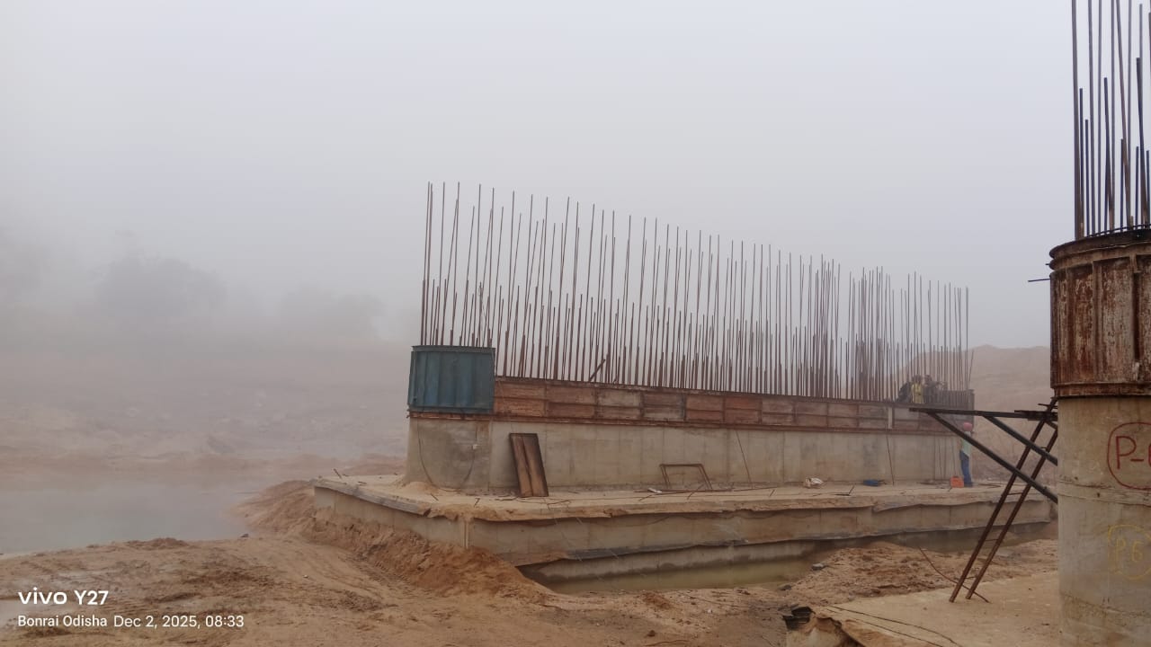 Concrete casting with RCC M25A20 grade at Pier no.9 for 7th lift at U/S side & 8th lift at D/S side from RL-241.10m to RL-242.45m is in progress through concrete pump in presence of JE,KID, PM EPC agency, Site Engineers of PMC & EPC agency. Slump achieved 85mm on 02.12.2025