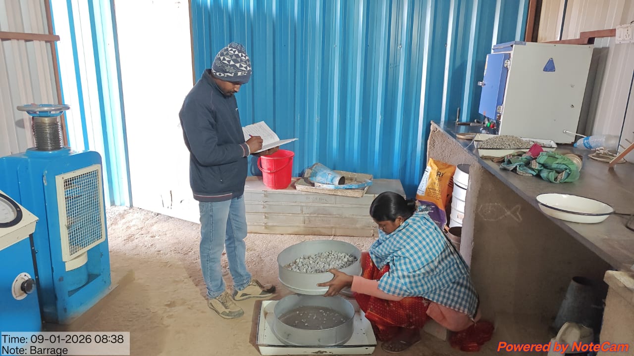 6.Conducted 3nos. cube tests of RCC M25A20 grade for 28days compressive strength at Site Lab in presence of DTL, Tel Basin, Bhawanipata, Experts of PMC, Sr. Site Engineer of PMC and Site Engineers of PMC n EPC Agency, ISS Nandagaon and found the result 32.73N/mm²(Avg) on 08.01.2026