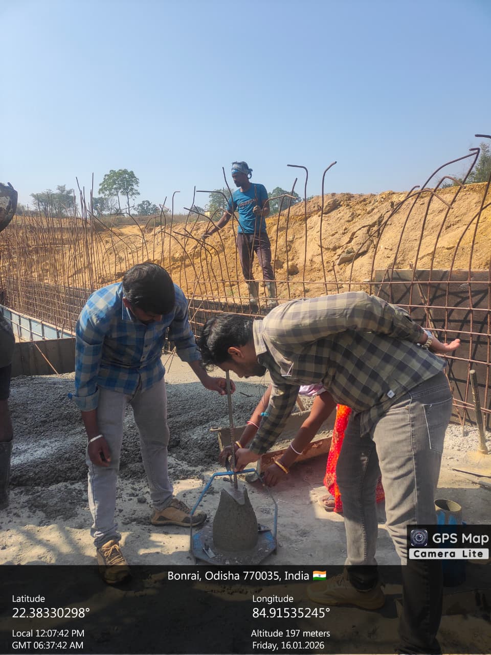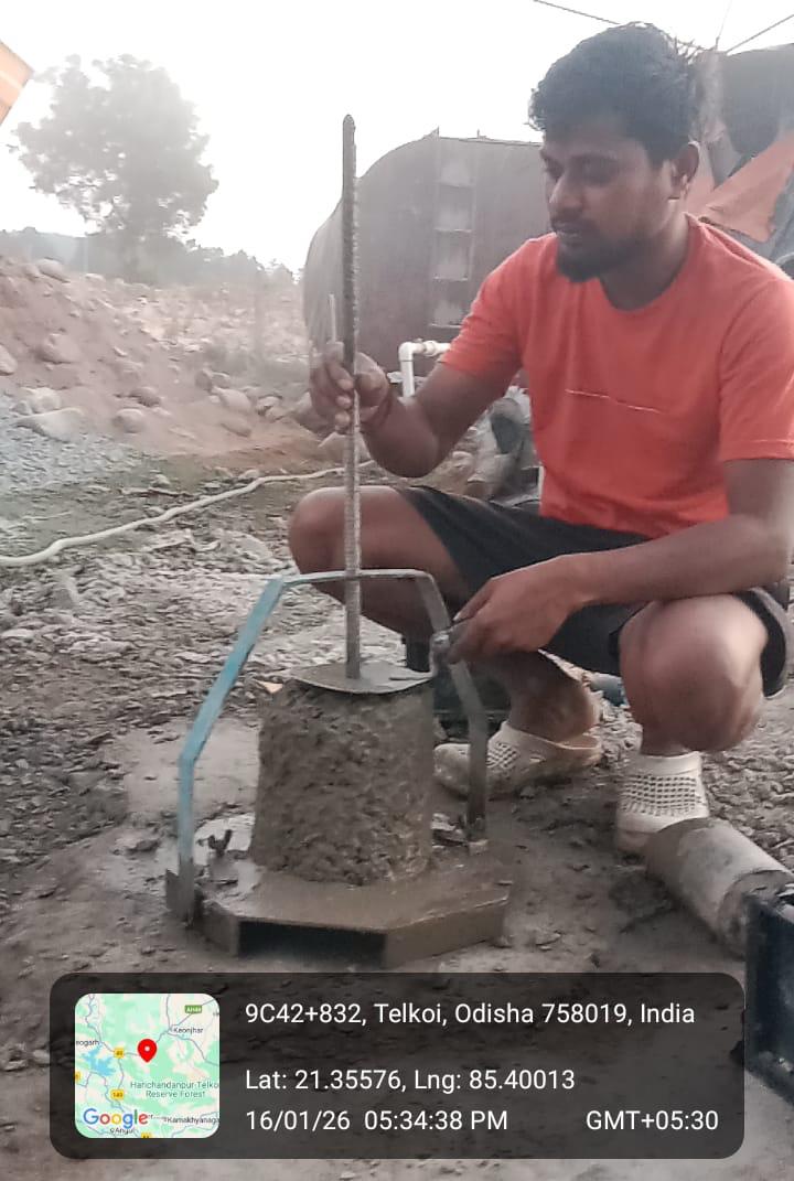 Slump testing M20A20 (Value 50 mm) of Pier No-5 to Pier No-6 U/S Gravity floor, 2nd lift PCC done in presence of Client & PSS Team.