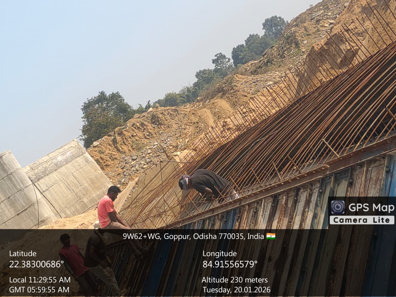 Reinforcement work at right side D/s flank wall for 5th lift RCC is under progress on 20.01.2026