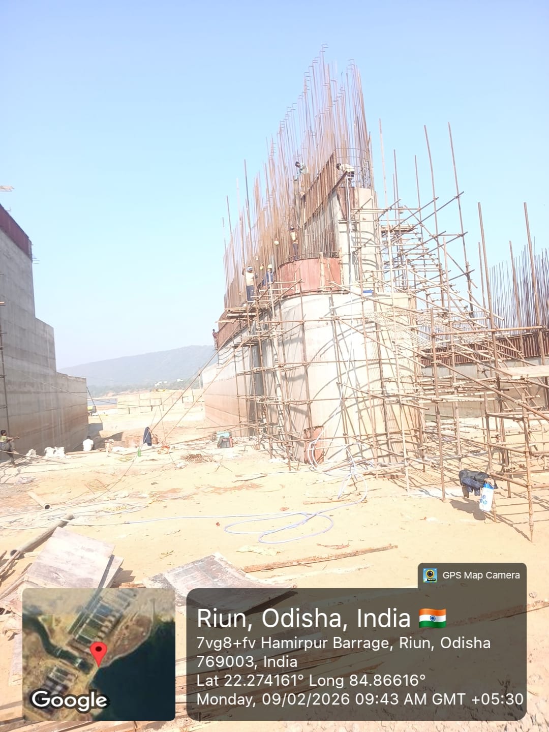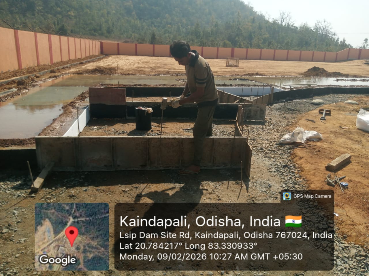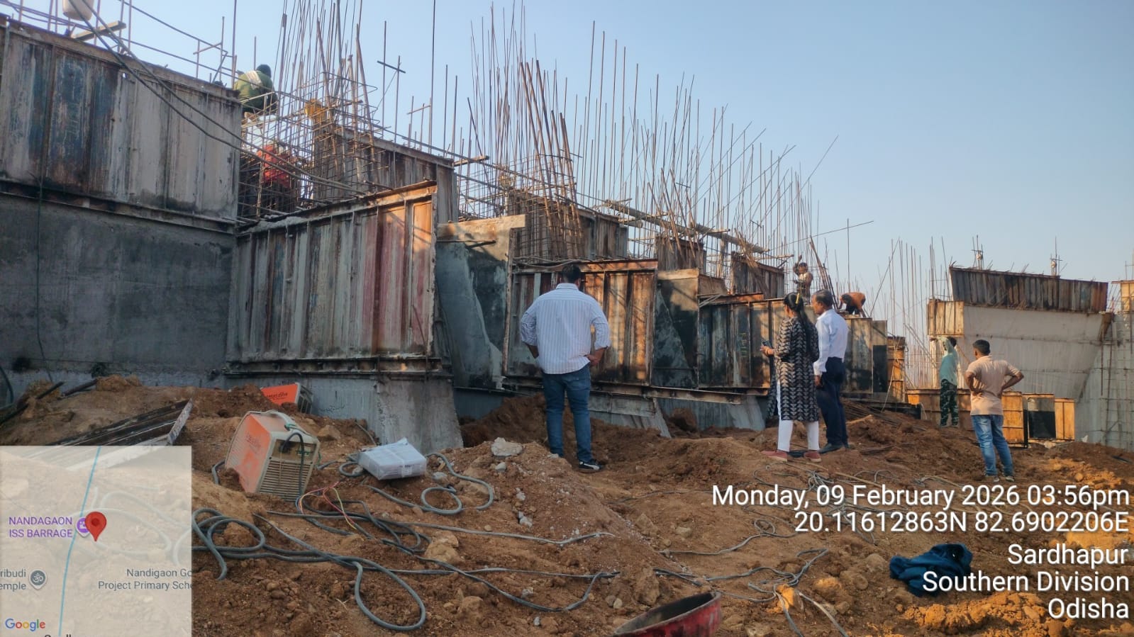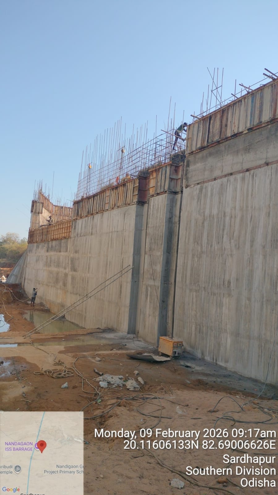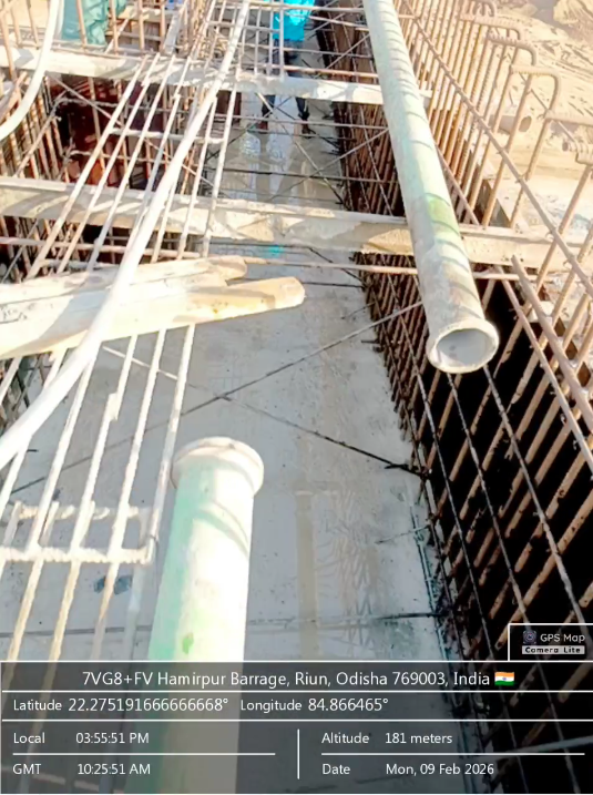 2. Inspected the D/S right Flared out wall mass concrete area. Shuttering works were in progress and will be ready for placing concrete with PCC M15A20 grade for 2nd lift upto RL- 233.70m on 09.02.2026