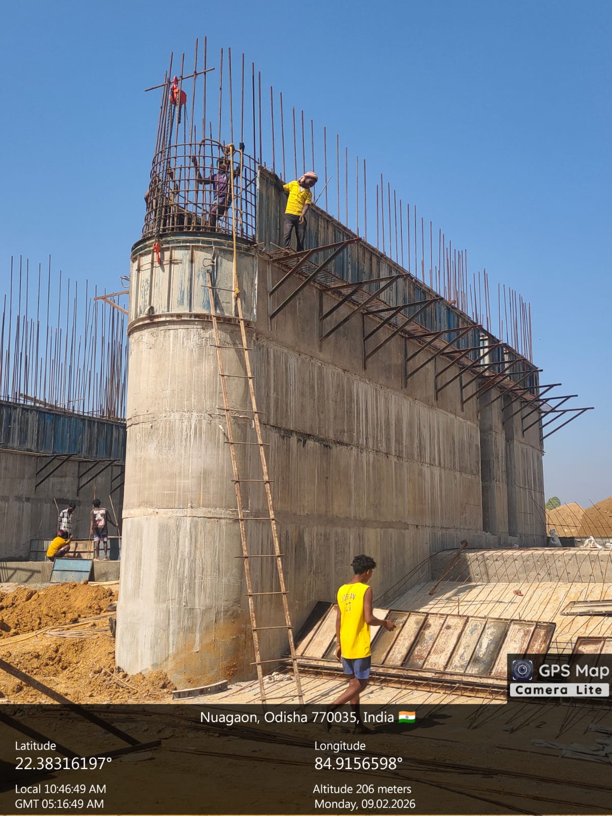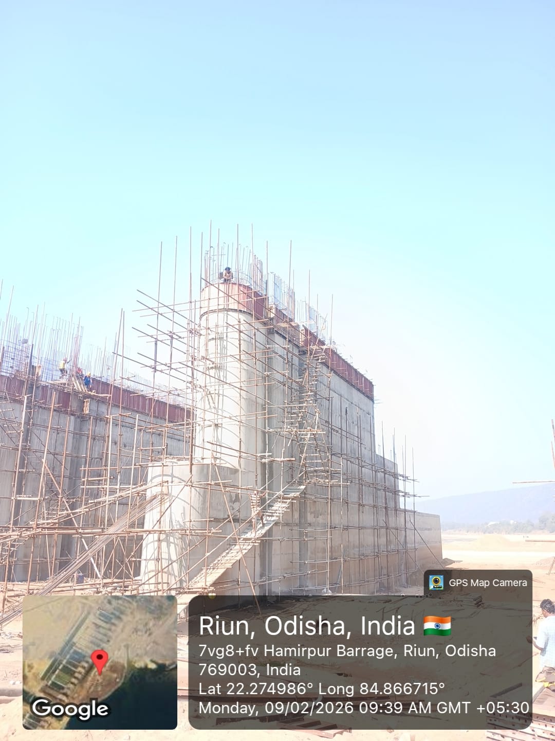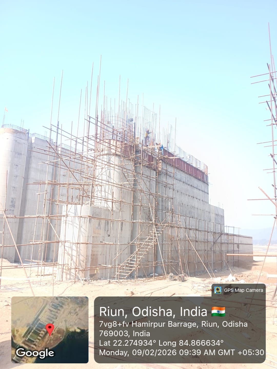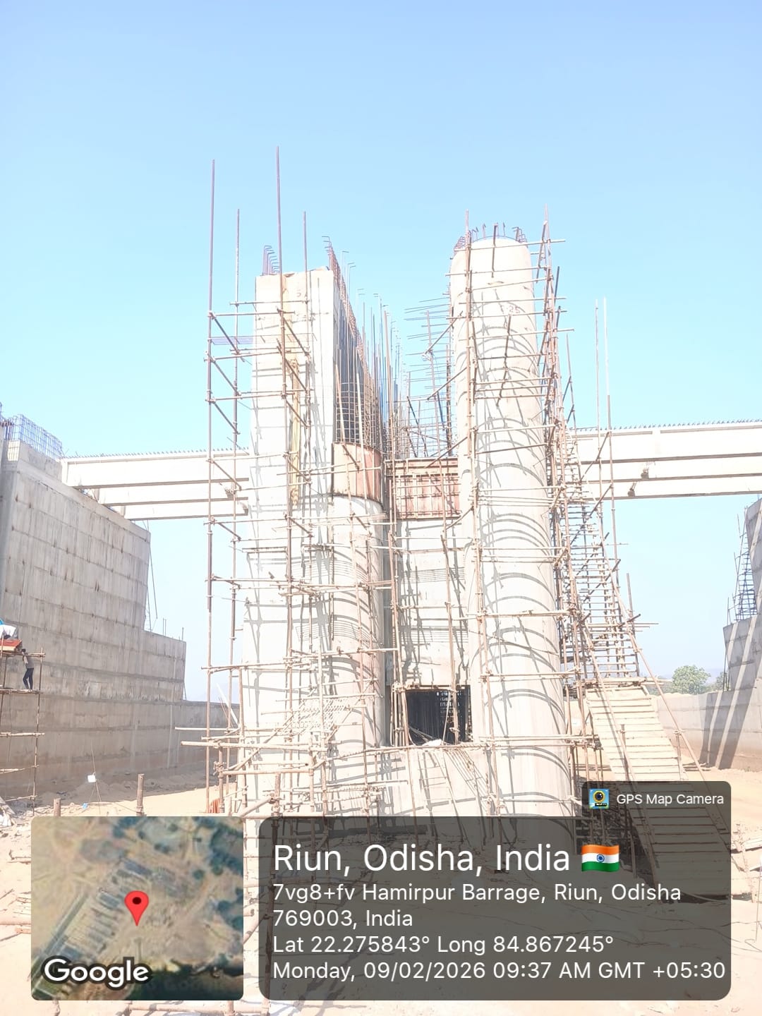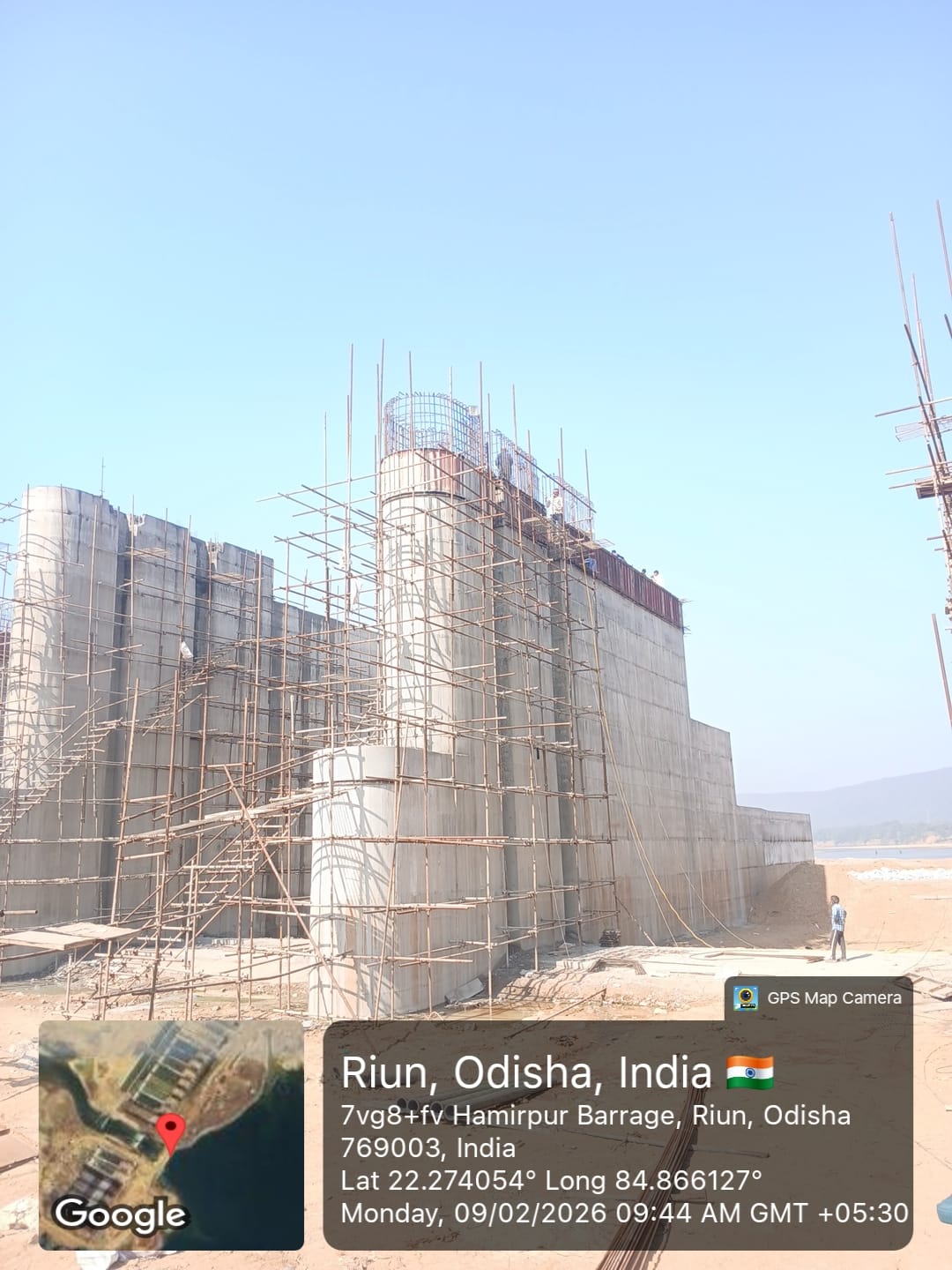 2. Inspected the D/S right Flared out wall mass concrete area. Shuttering works were in progress and will be ready for placing concrete with PCC M15A20 grade for 2nd lift upto RL- 233.70m on 09.02.2026