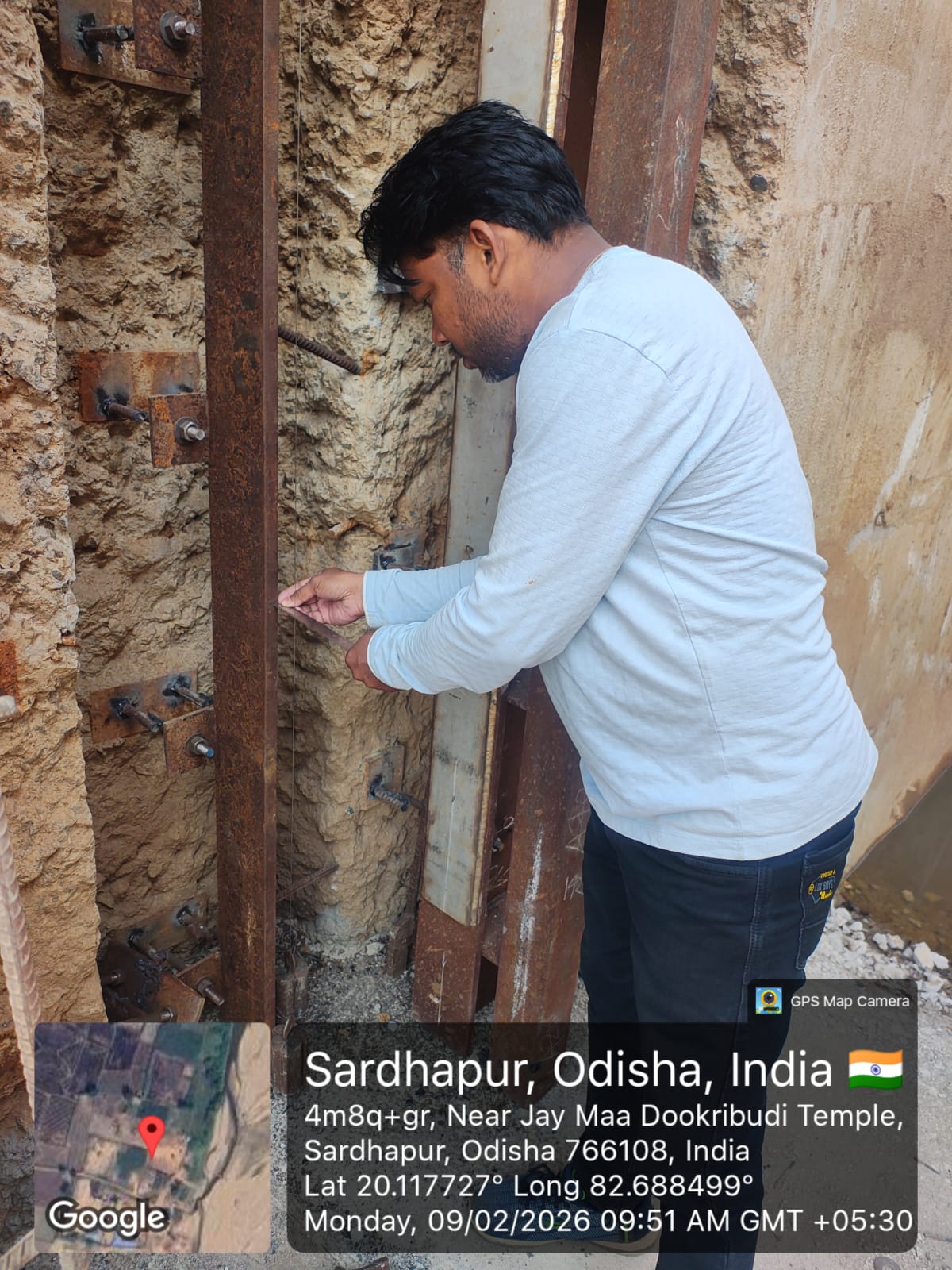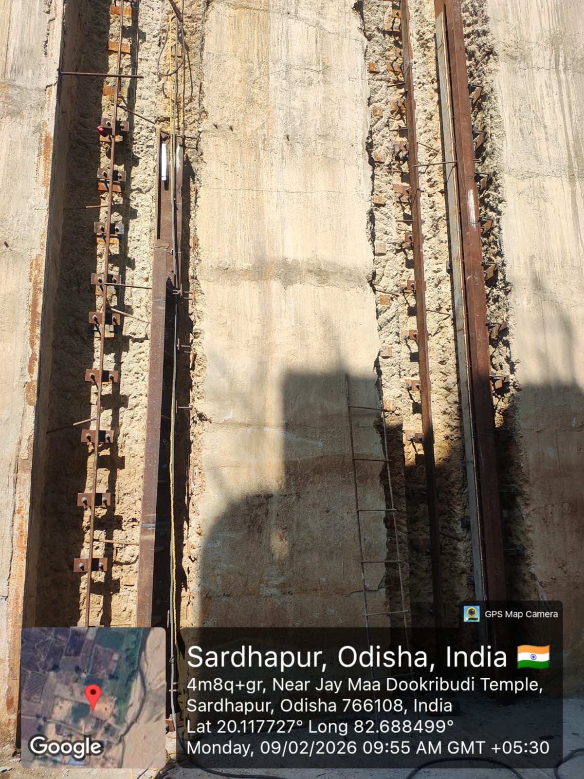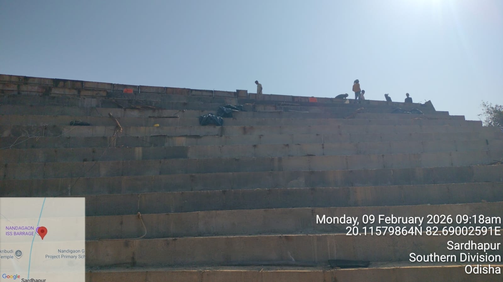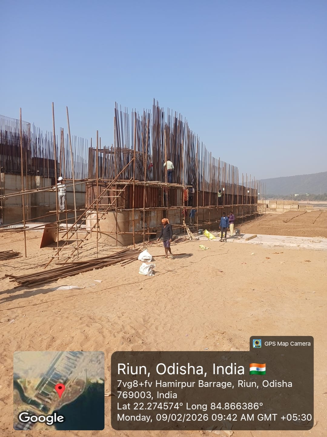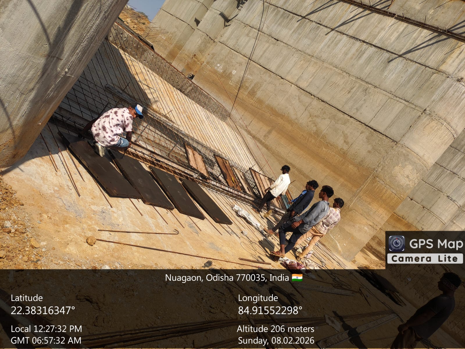 2. Inspected the D/S right Flared out wall mass concrete area. Shuttering works were in progress and will be ready for placing concrete with PCC M15A20 grade for 2nd lift upto RL- 233.70m on 09.02.2026