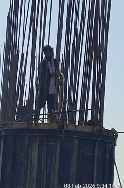 Binding of reinforcement for Pier No-14, 11th lift is under progress.