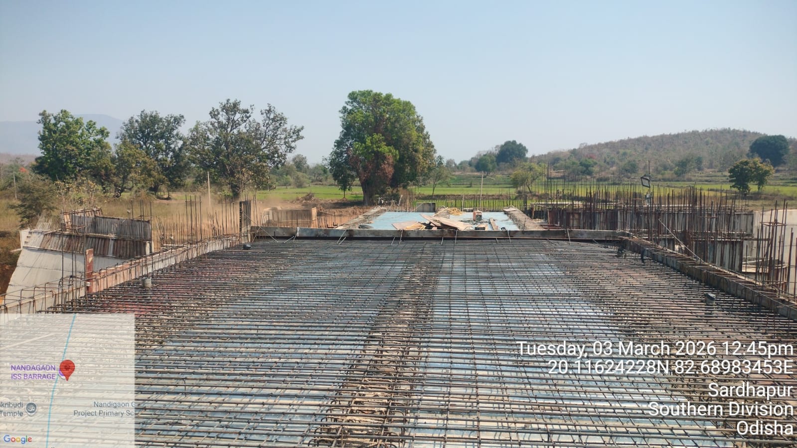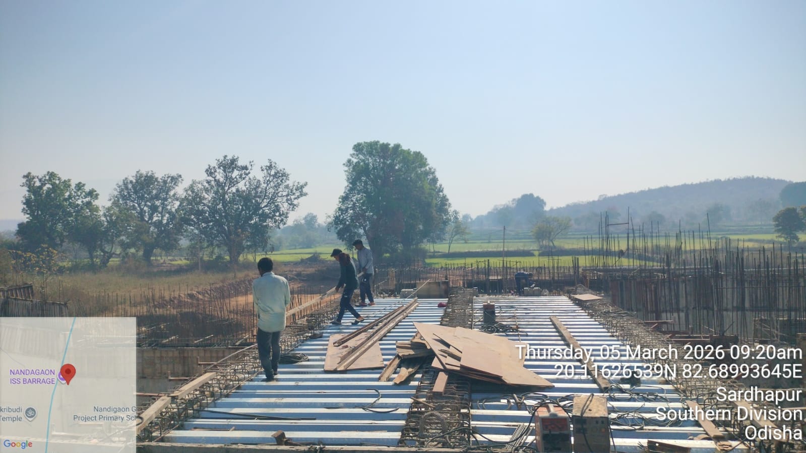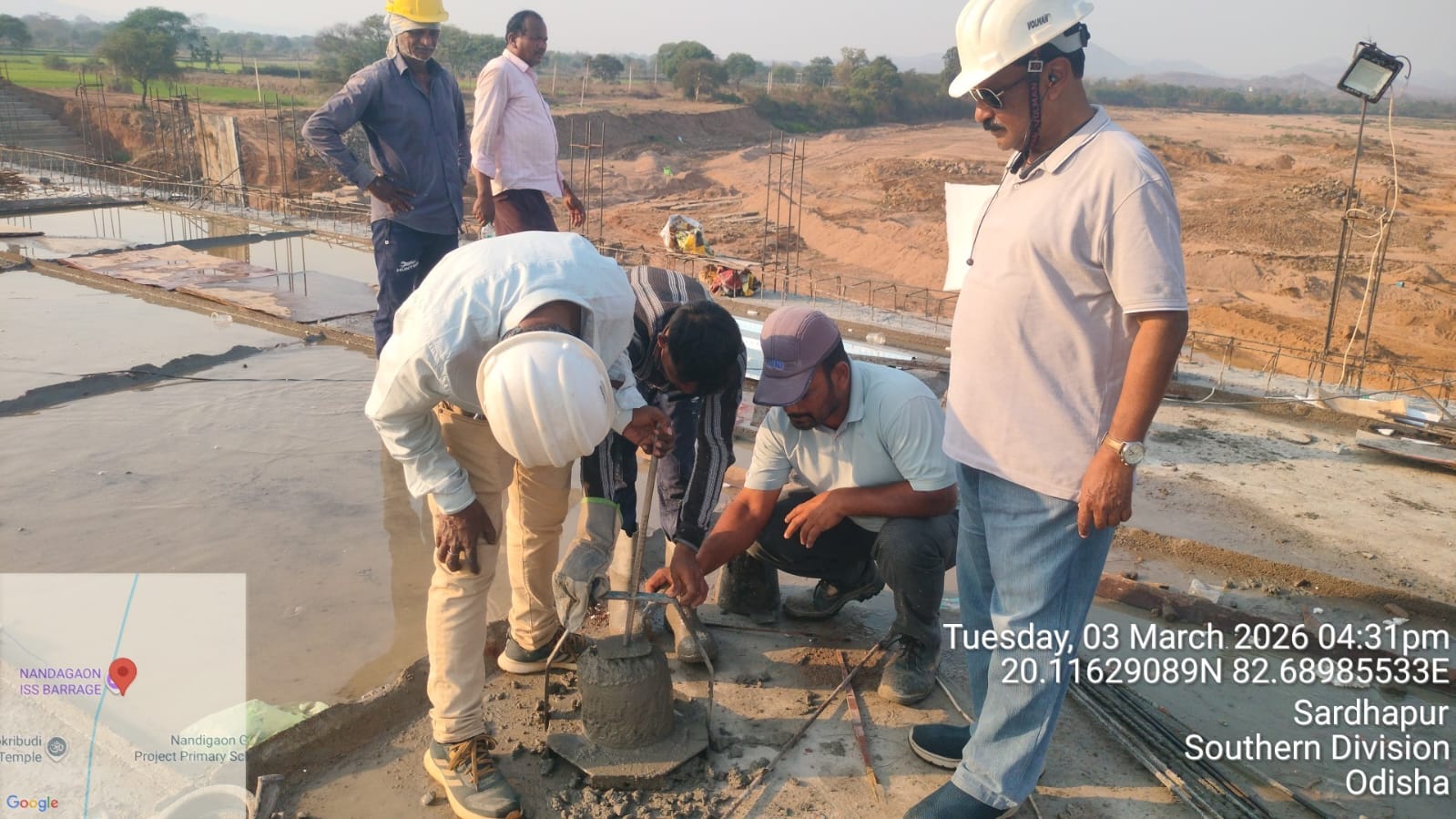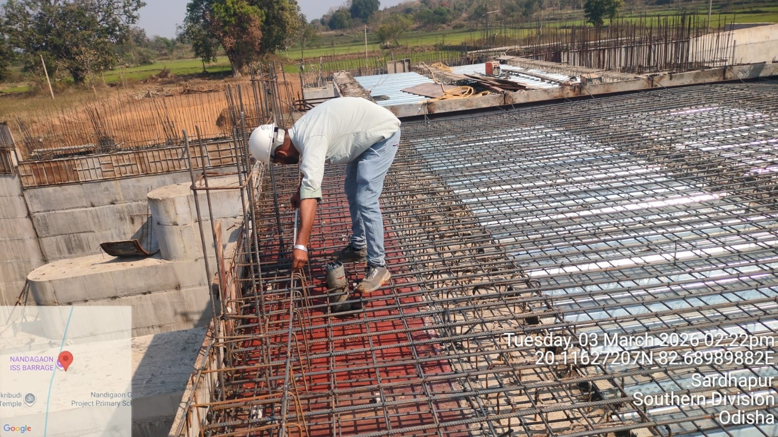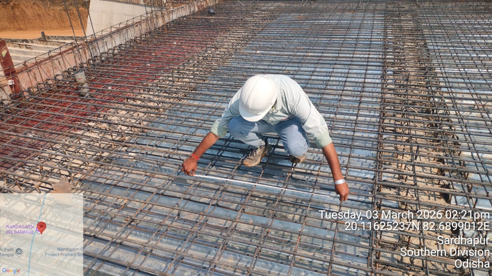 • 1) Site visit of ISS Nandagaon by CME,Sr. Site Engineer of PMC in presence of PM,EPC Agency, Site Engineers of PMC and site Engineer of EPC Agency. Found the area in binding, placing of reinforcements works including shuttering at RCC Deck slab of span-12 at barrage bay-10 of block-2 are completed as follows :