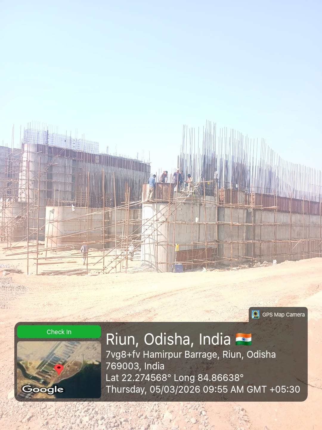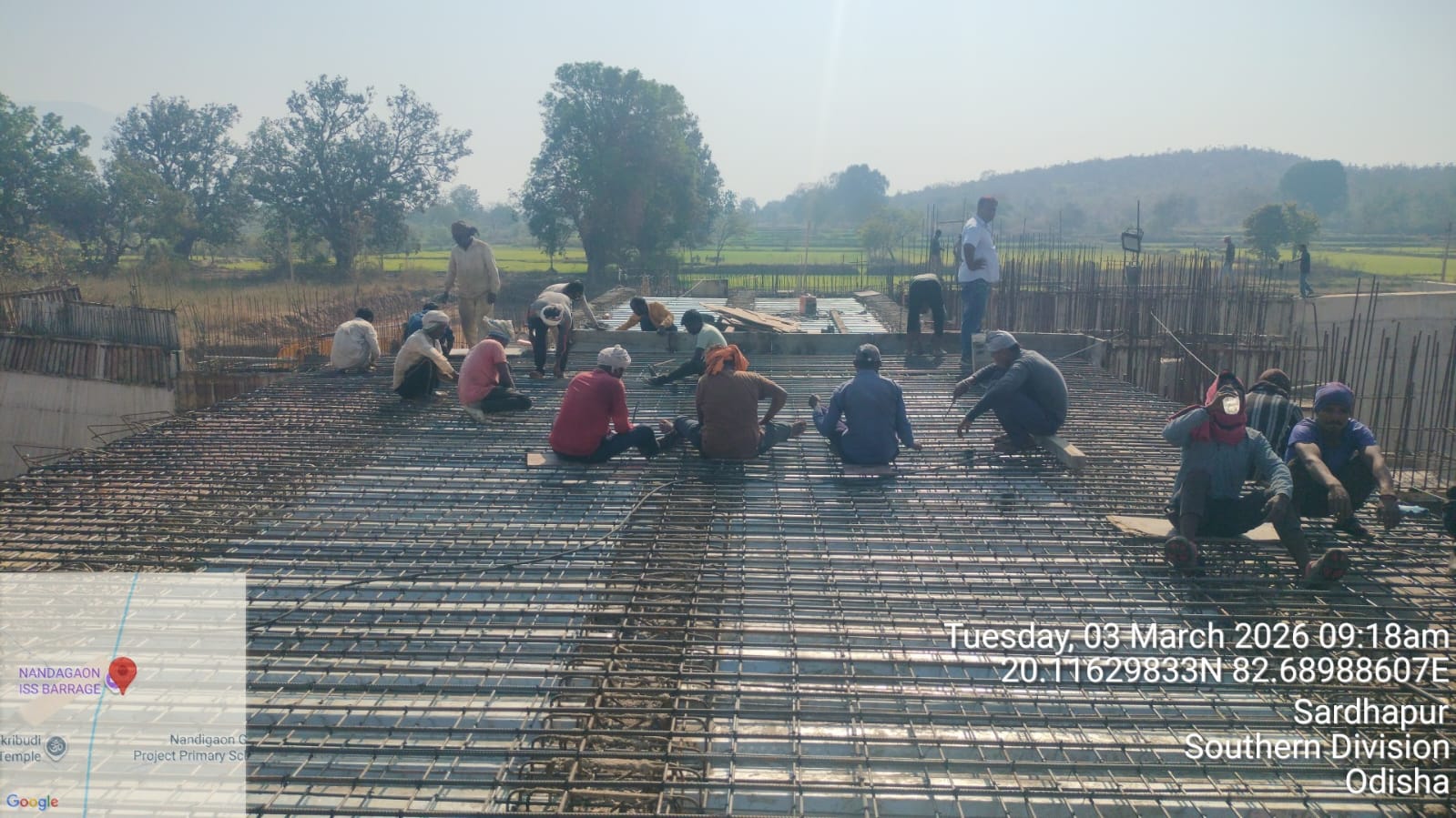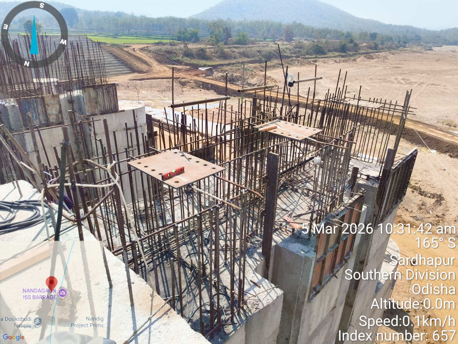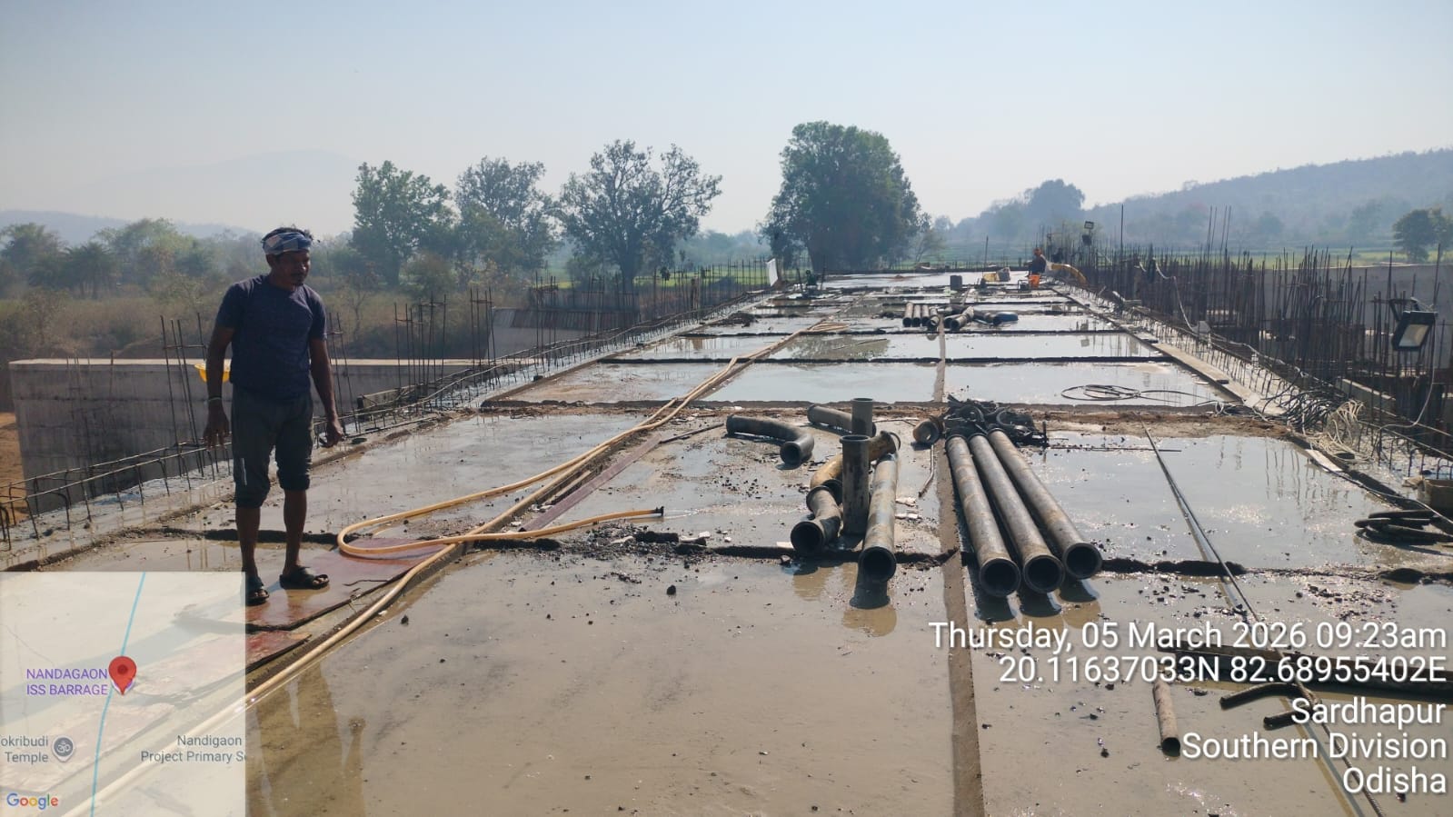 • 1) Site visit of ISS Nandagaon by CME,Sr. Site Engineer of PMC in presence of PM,EPC Agency, Site Engineers of PMC and site Engineer of EPC Agency. Found the area in binding, placing of reinforcements works including shuttering at RCC Deck slab of span-12 at barrage bay-10 of block-2 are completed as follows :