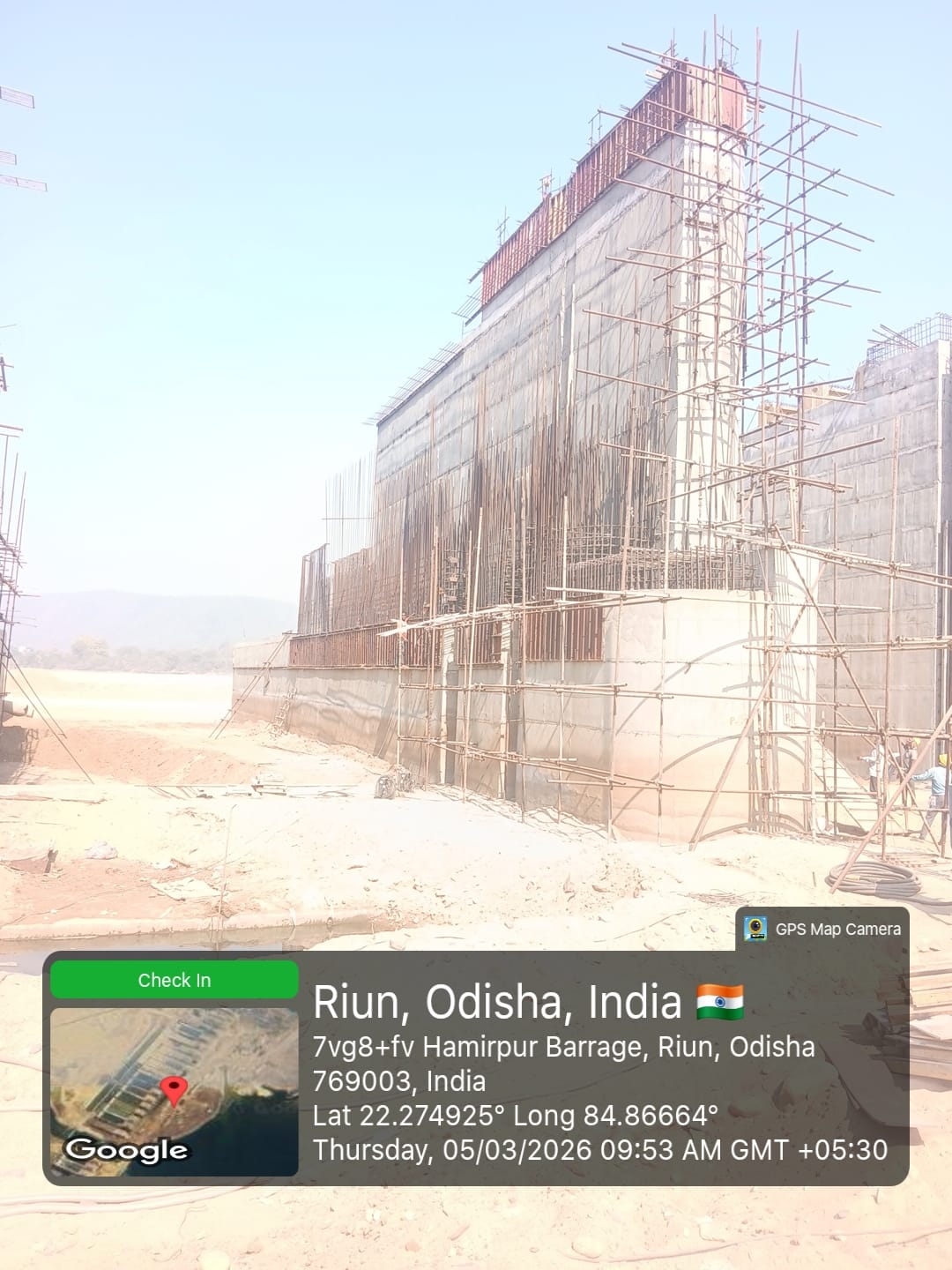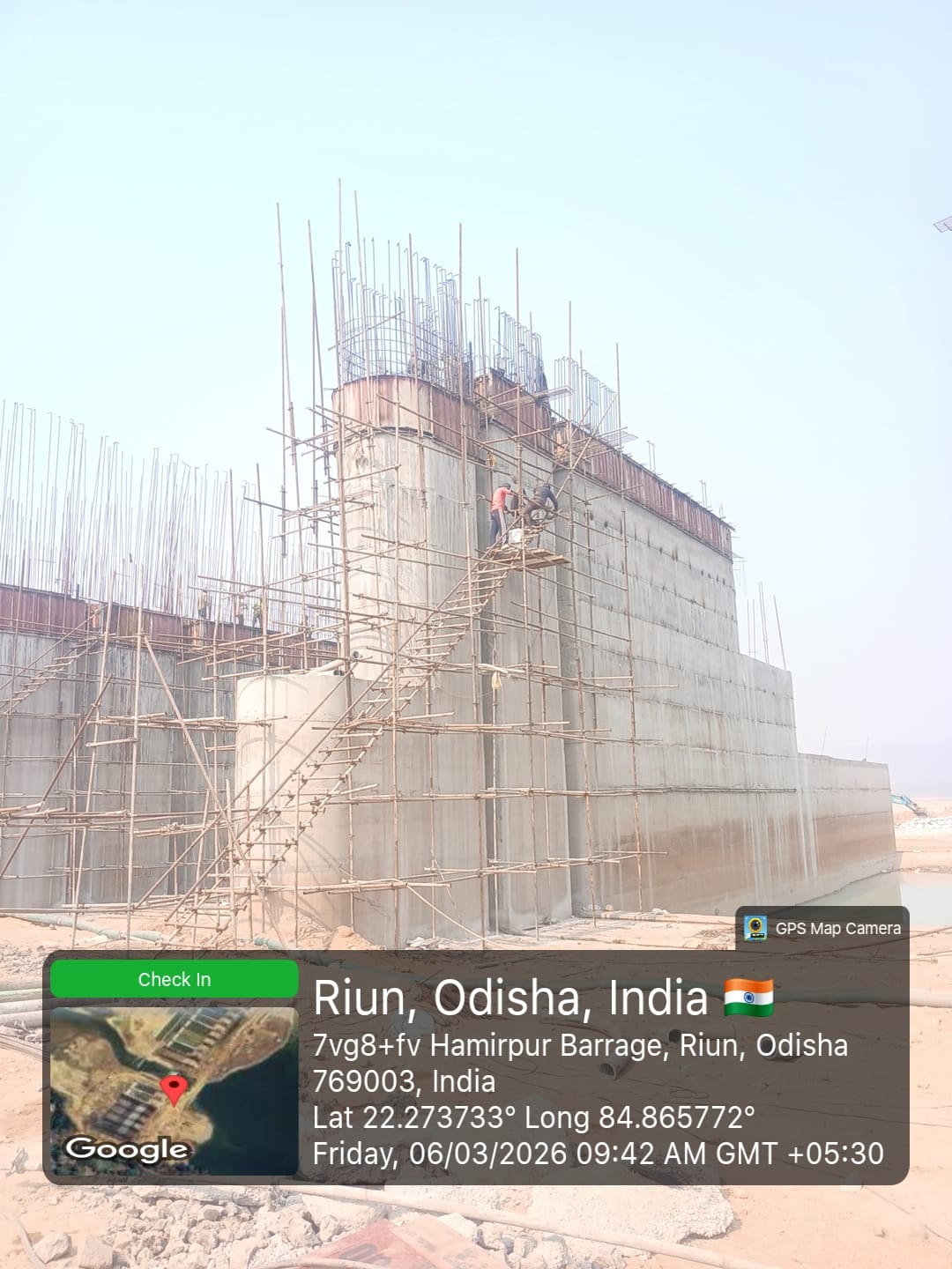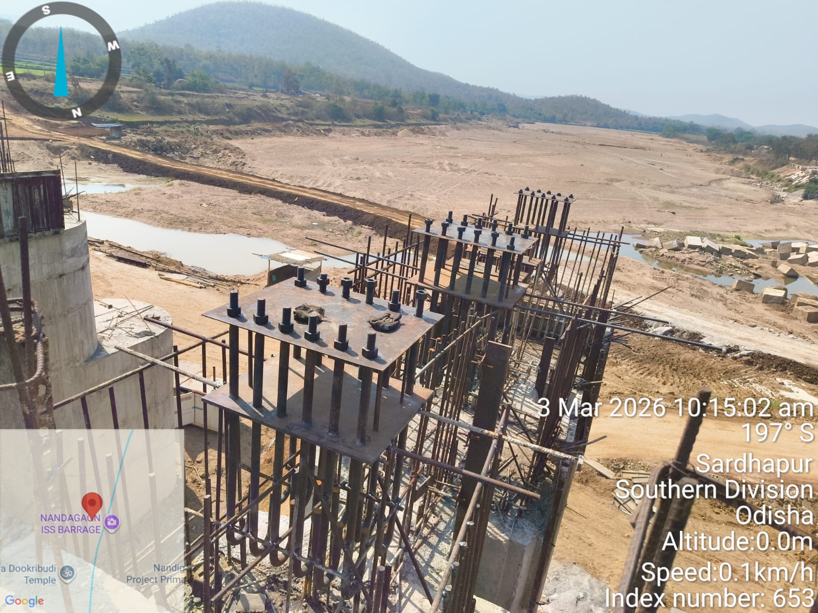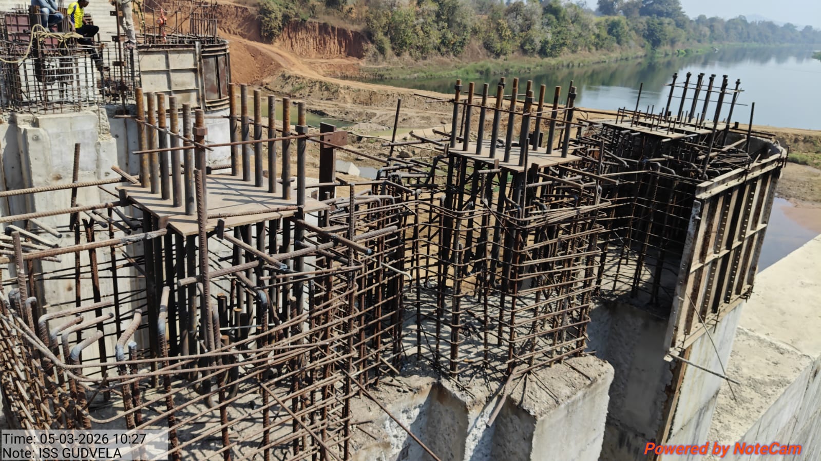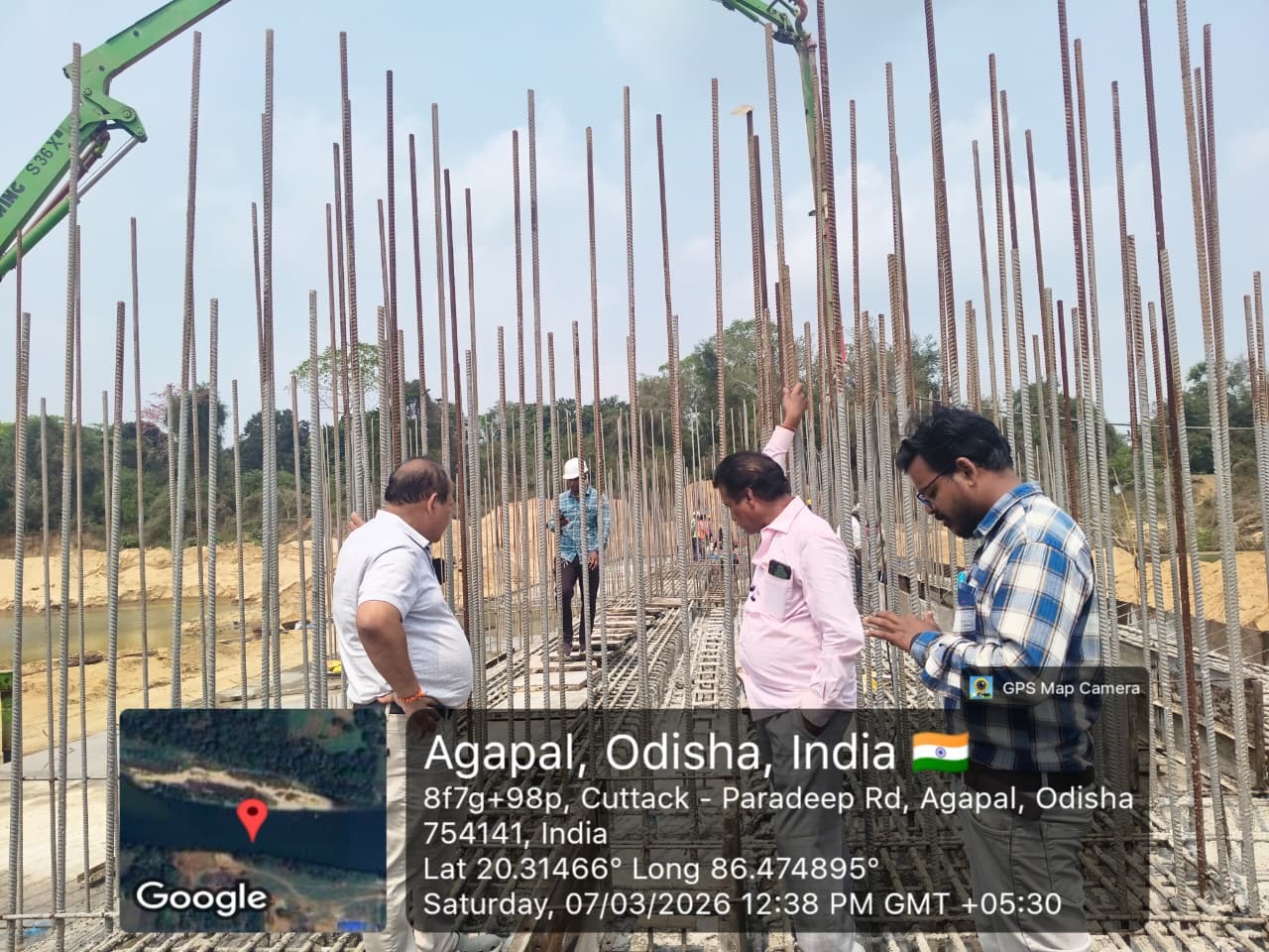 • 1) Site visit of ISS Nandagaon by CME,Sr. Site Engineer of PMC in presence of PM,EPC Agency, Site Engineers of PMC and site Engineer of EPC Agency. Found the area in binding, placing of reinforcements works including shuttering at RCC Deck slab of span-12 at barrage bay-10 of block-2 are completed as follows :
