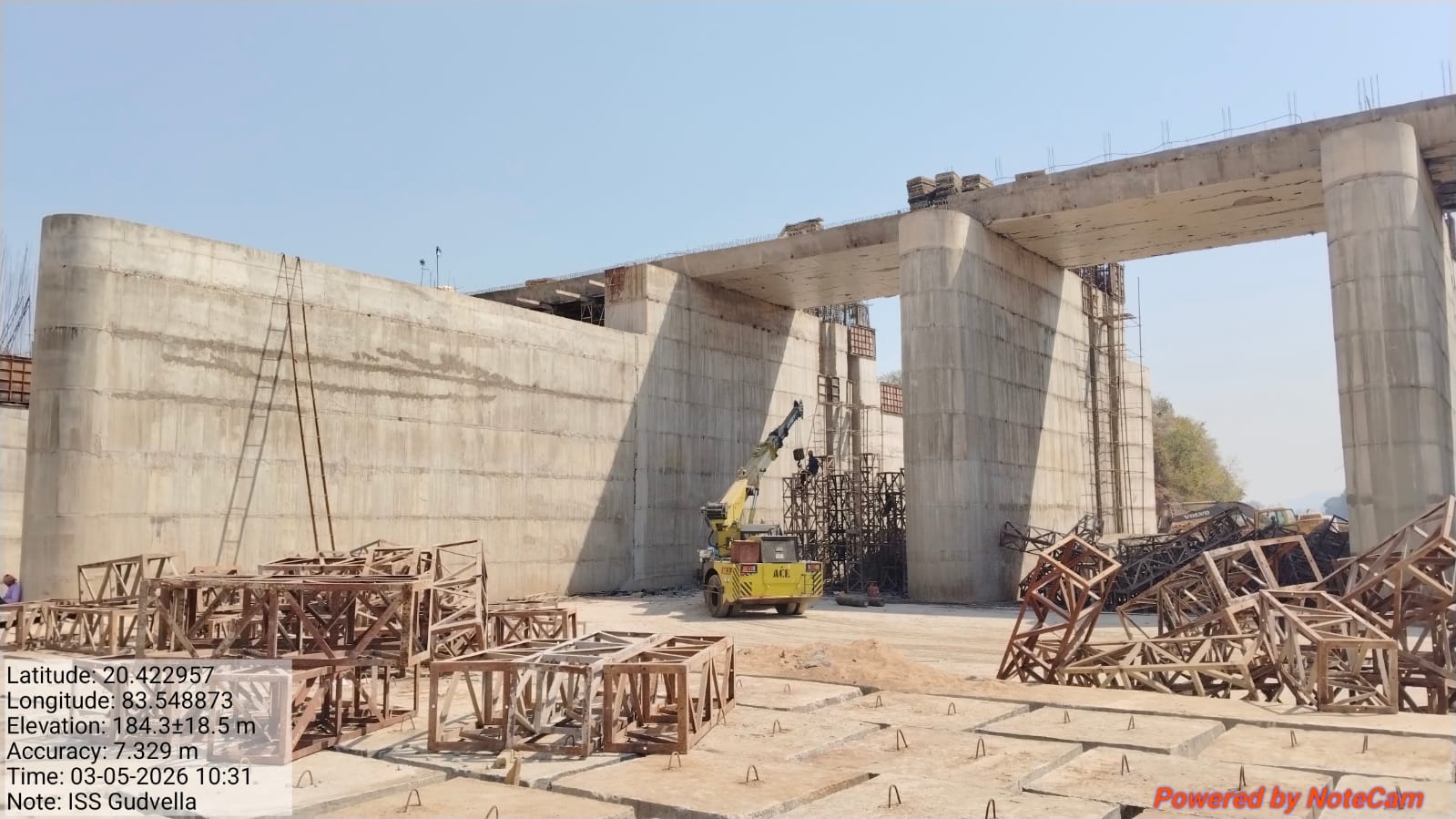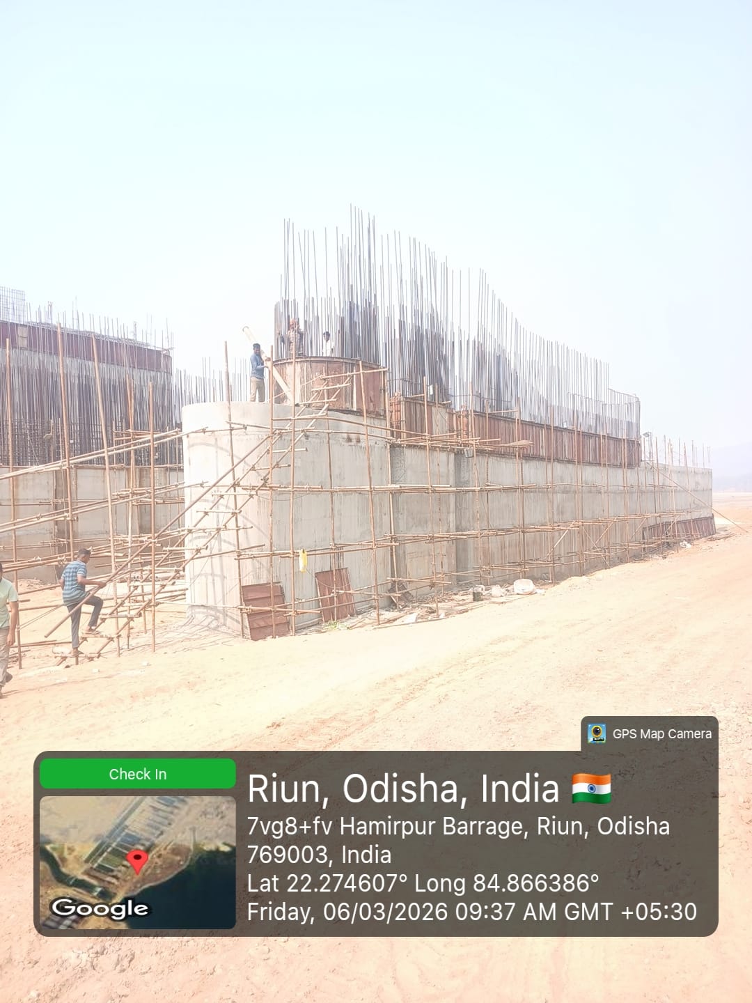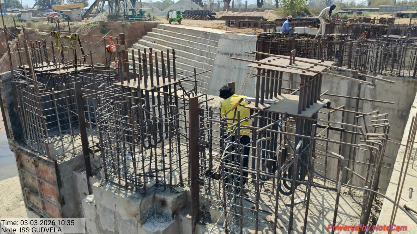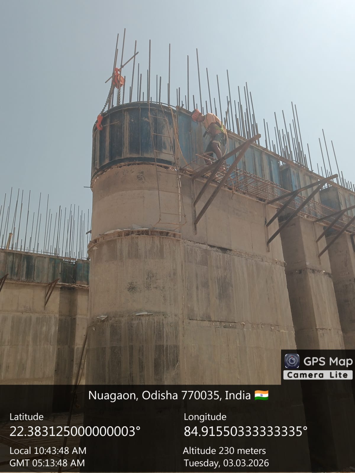• 1) Site visit of ISS Nandagaon by CME,Sr. Site Engineer of PMC in presence of PM,EPC Agency, Site Engineers of PMC and site Engineer of EPC Agency. Found the area in binding, placing of reinforcements works including shuttering at RCC Deck slab of span-12 at barrage bay-10 of block-2 are completed as follows :