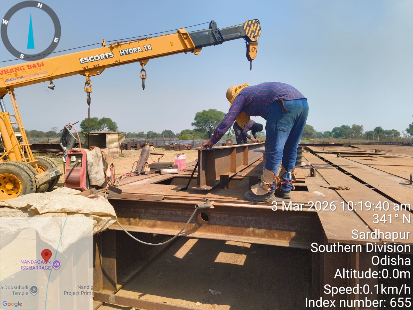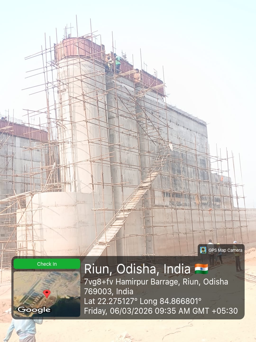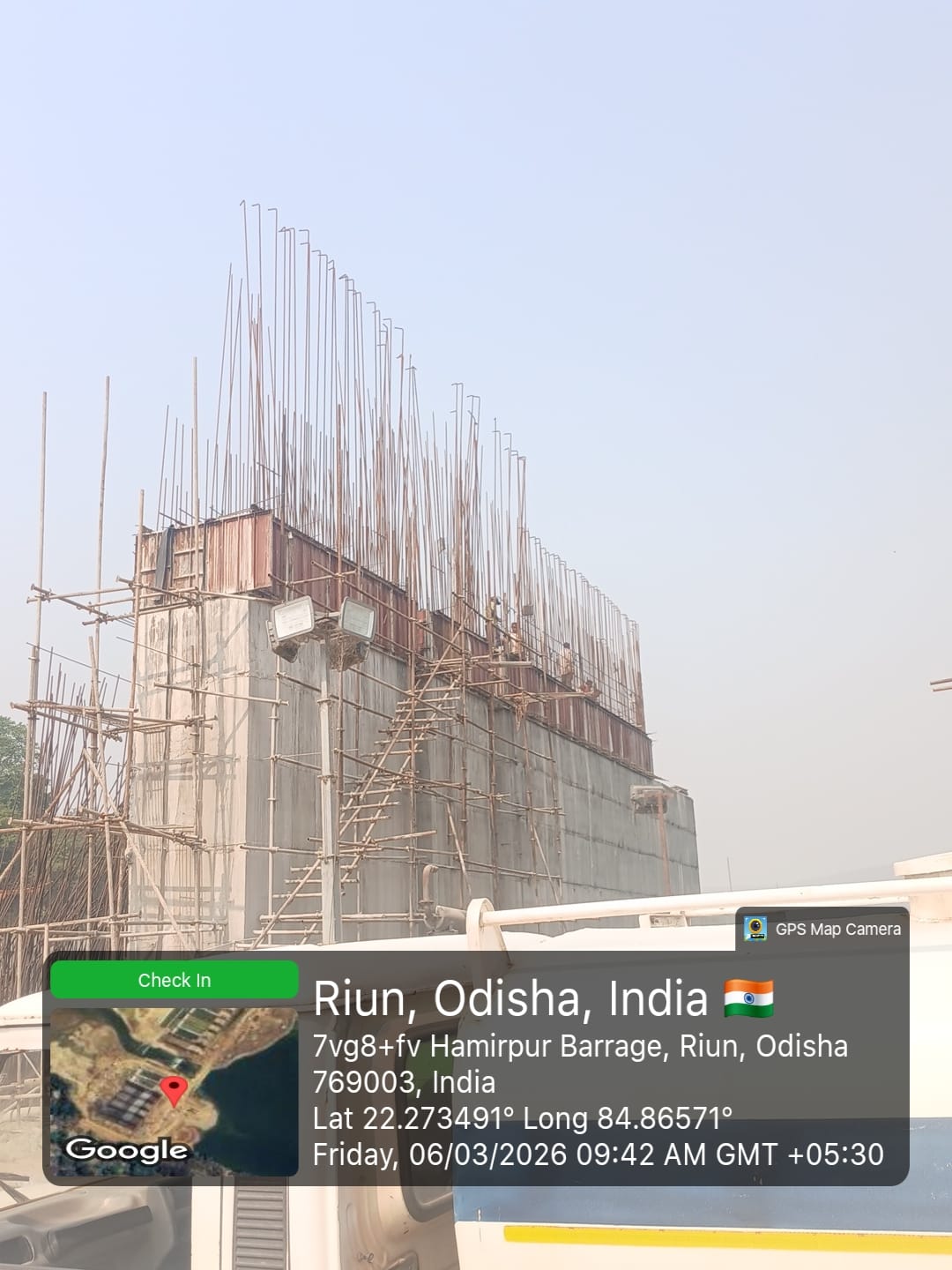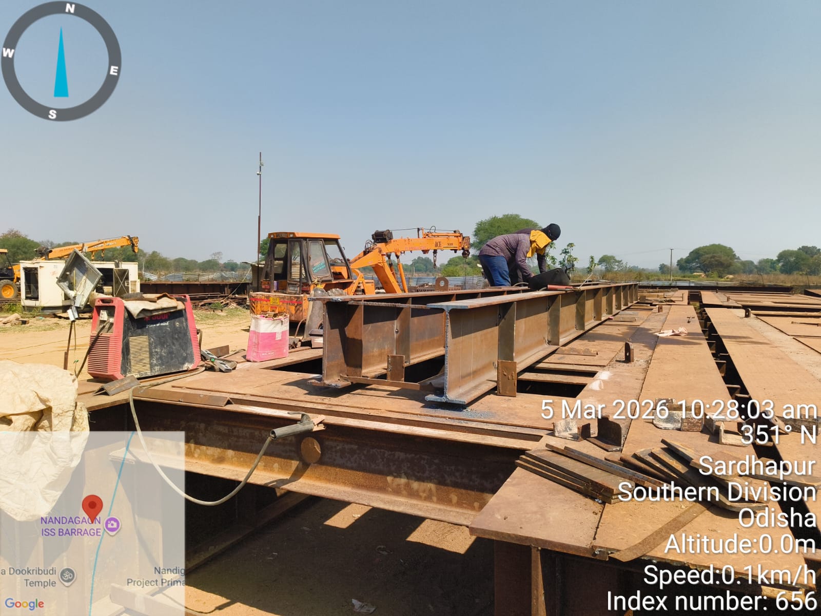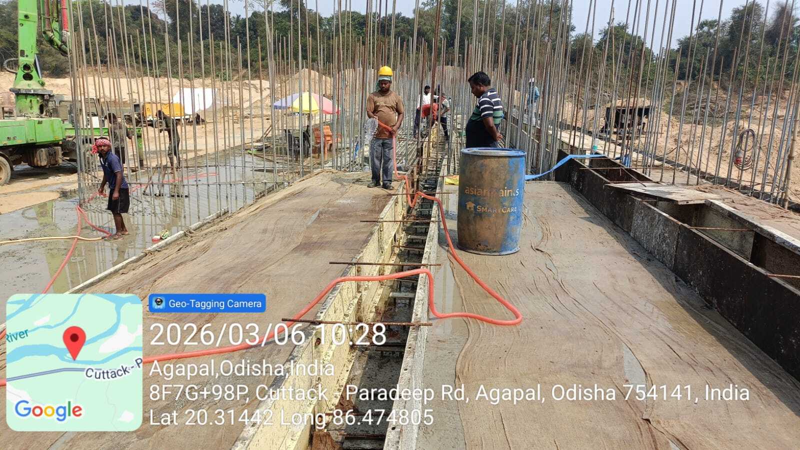 • 1) Site visit of ISS Nandagaon by CME,Sr. Site Engineer of PMC in presence of PM,EPC Agency, Site Engineers of PMC and site Engineer of EPC Agency. Found the area in binding, placing of reinforcements works including shuttering at RCC Deck slab of span-12 at barrage bay-10 of block-2 are completed as follows :