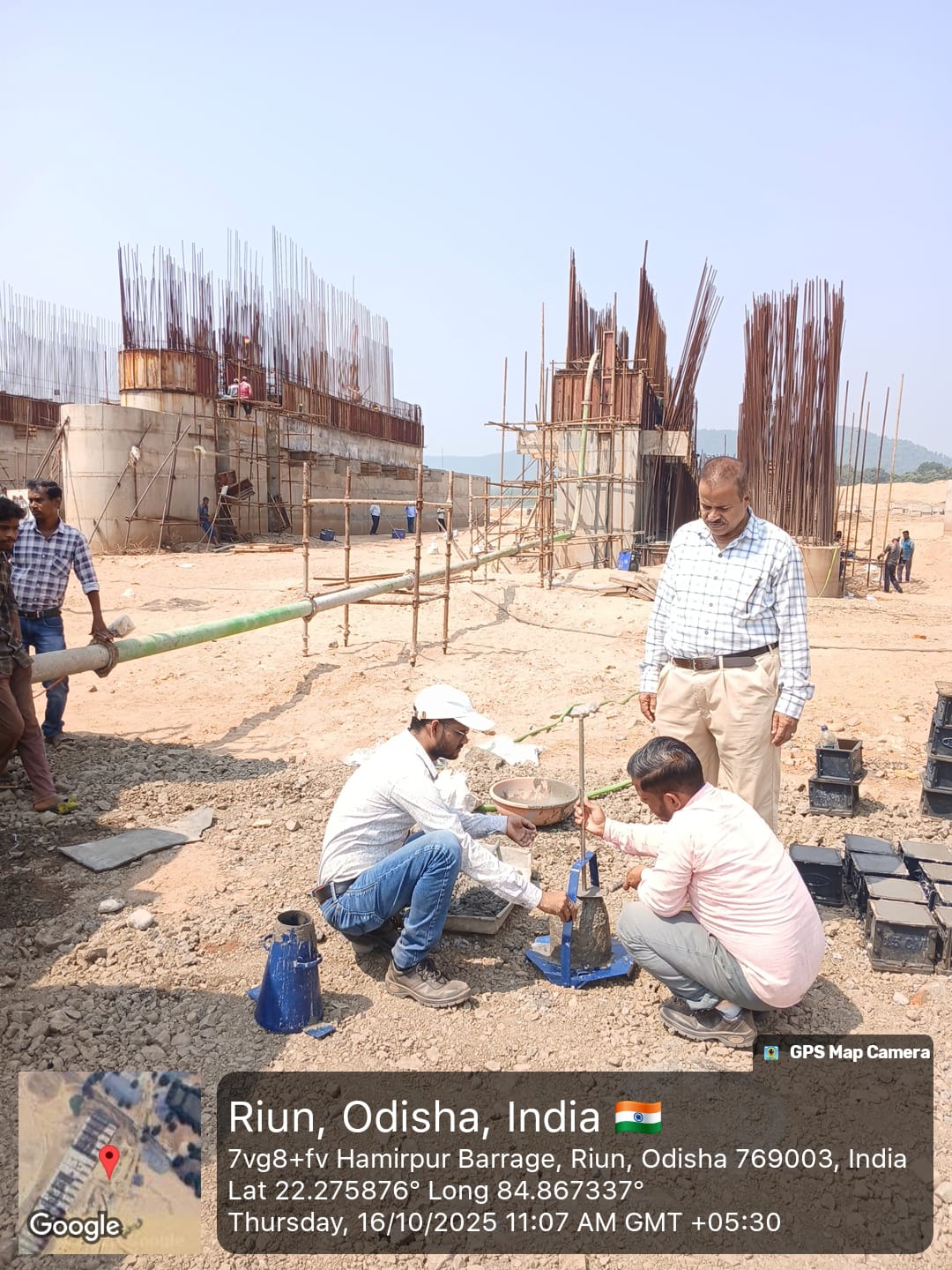Slump Test conducted at Location TURI site. RCC of Counterfort wall underway Barrage Portion
