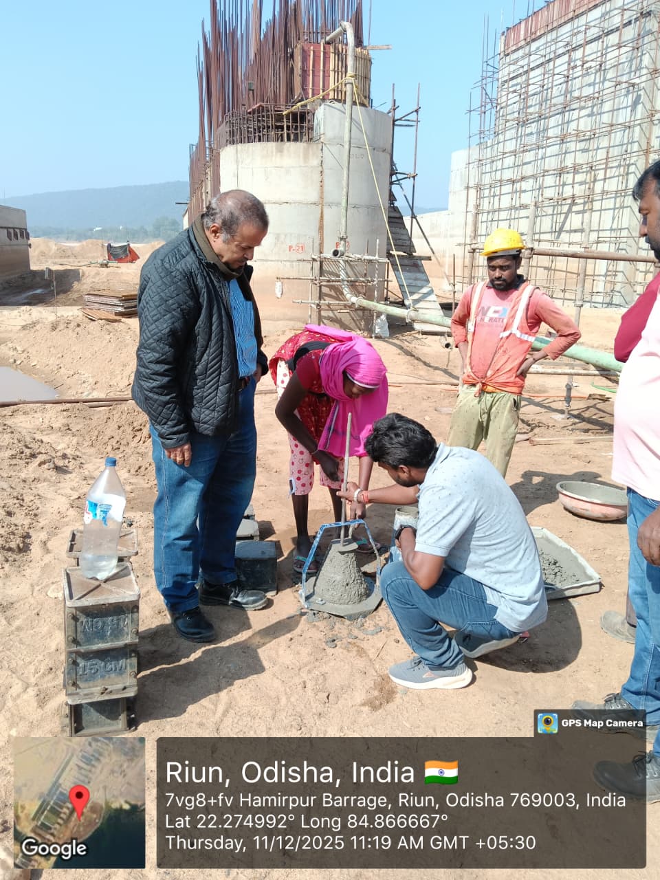 Slump testing M25A20 (Value 160 mm) of D/S Barrage bay Panel No-23 done in presence of Client & PSS Team.
