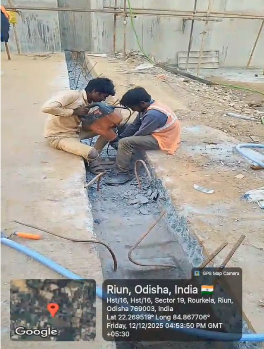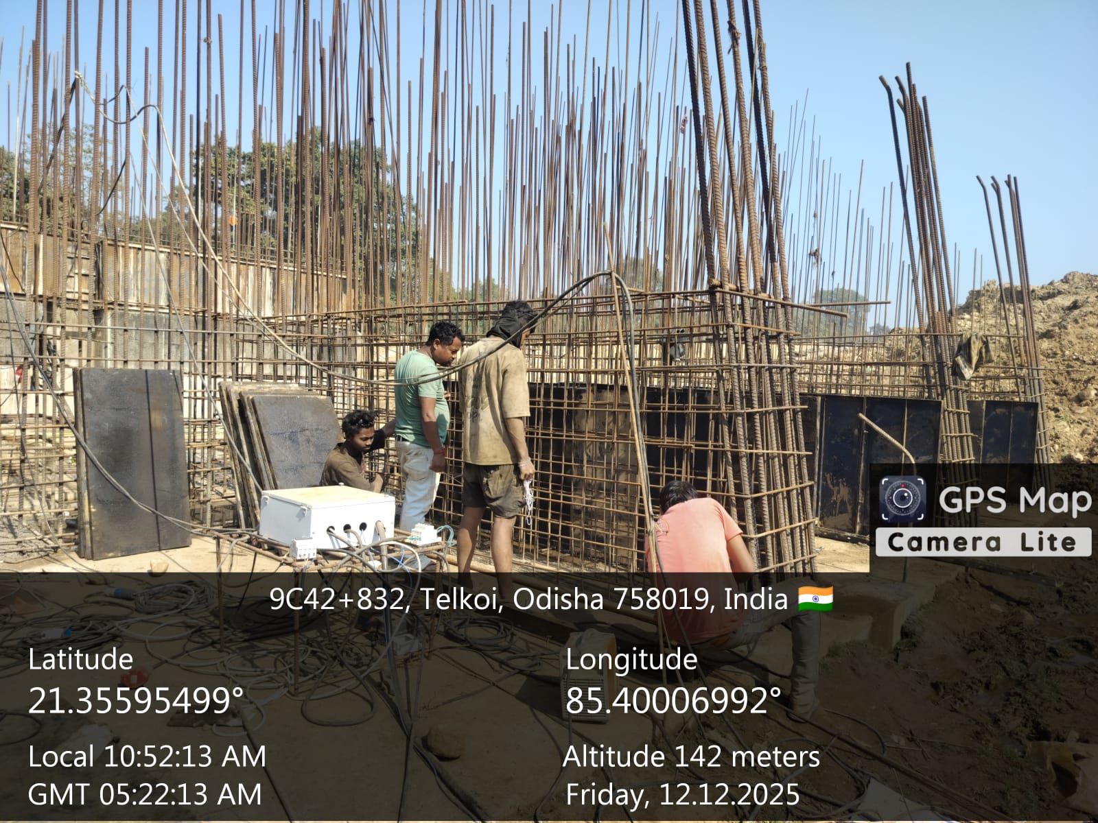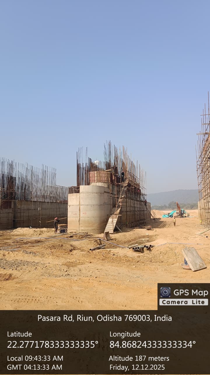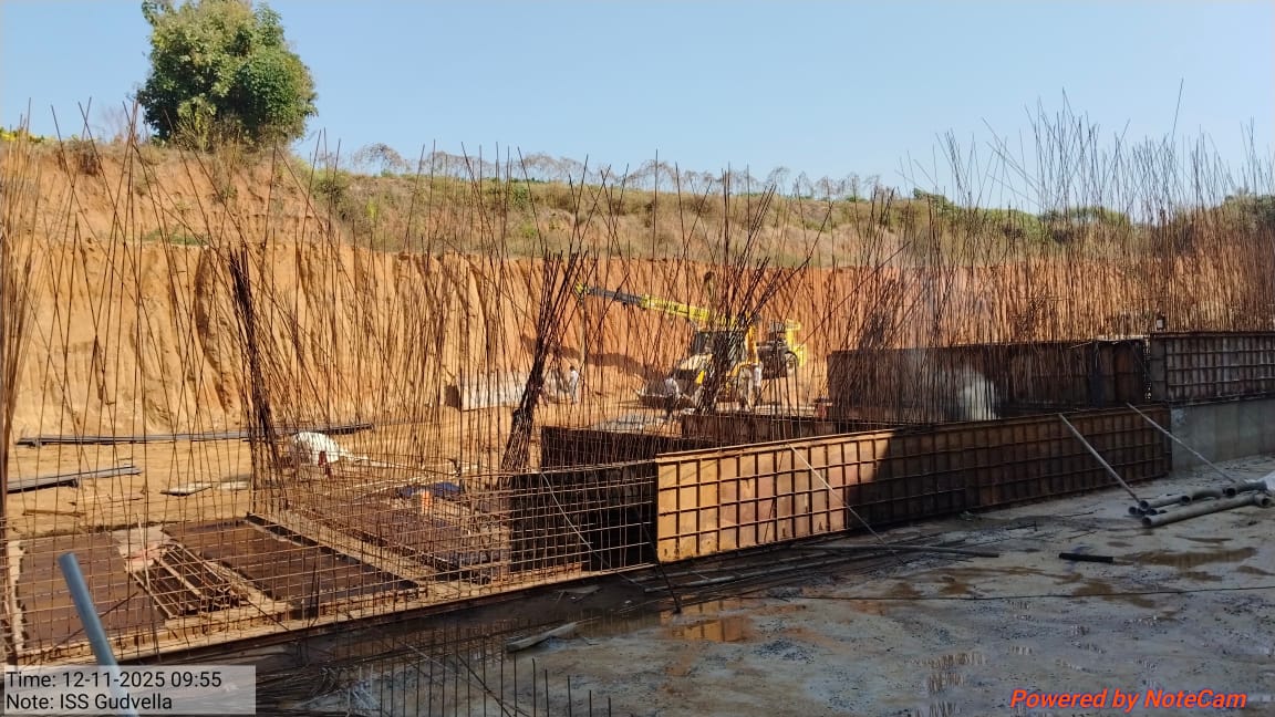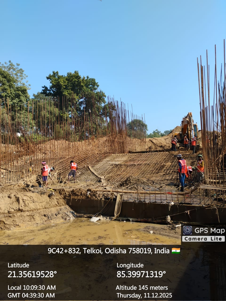 reinforcement at right side D/s wing wall including 5nos CF for 1st lift RCC is in progress on 11.12.2025