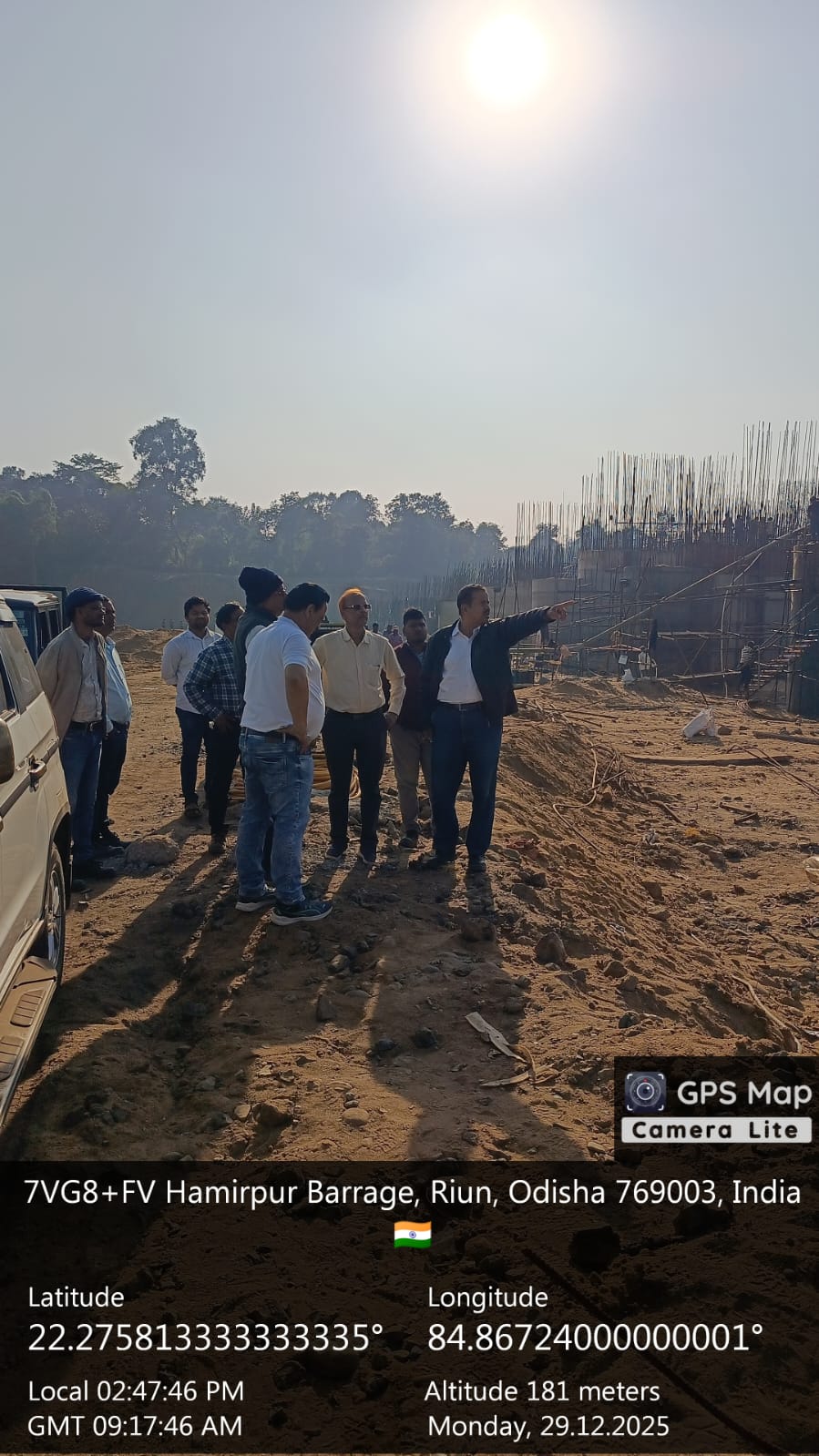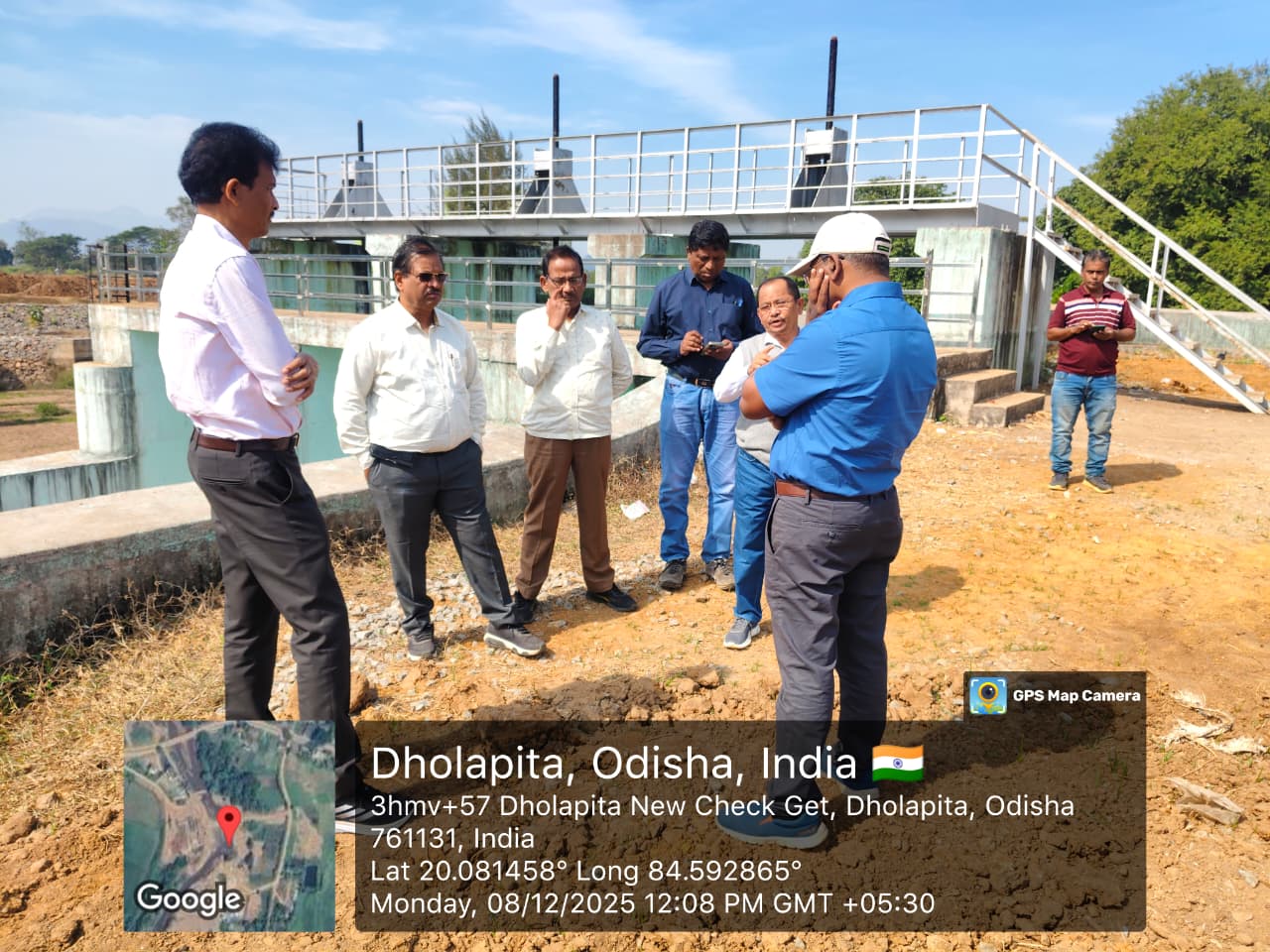 Today i.e. 08.12.25 SE,SDO,JE of Department and DTL,Irr Engg Expert,QC/QA Expert,Social Developmental Expert,Site Engineer of PMC visited Dholapita lSS Structure.
