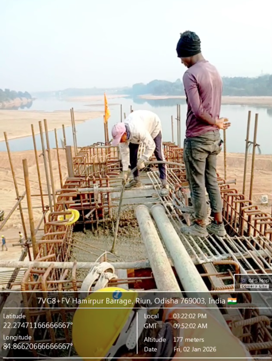 (iii).The area is cleaned properly through air water jetting and passed by SE, KID, Bhawanipatna for placing with RCC M35A20 grade on 06.01.2026