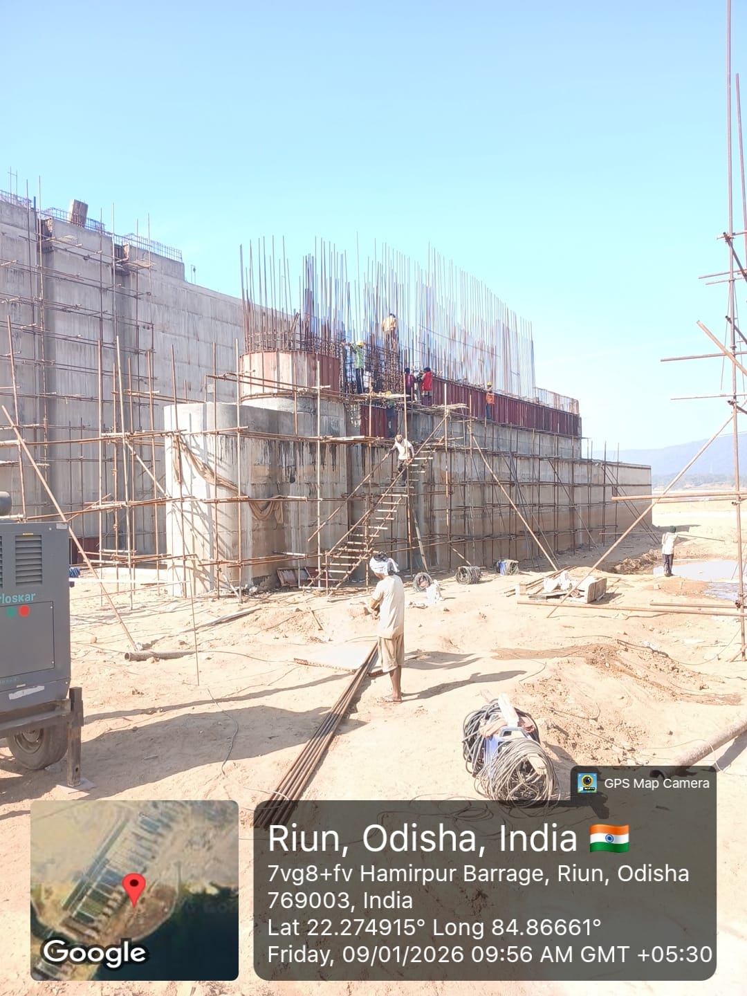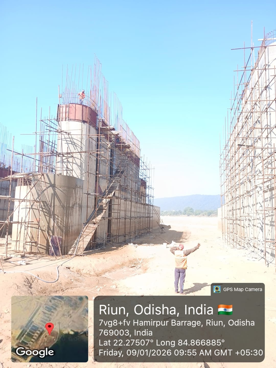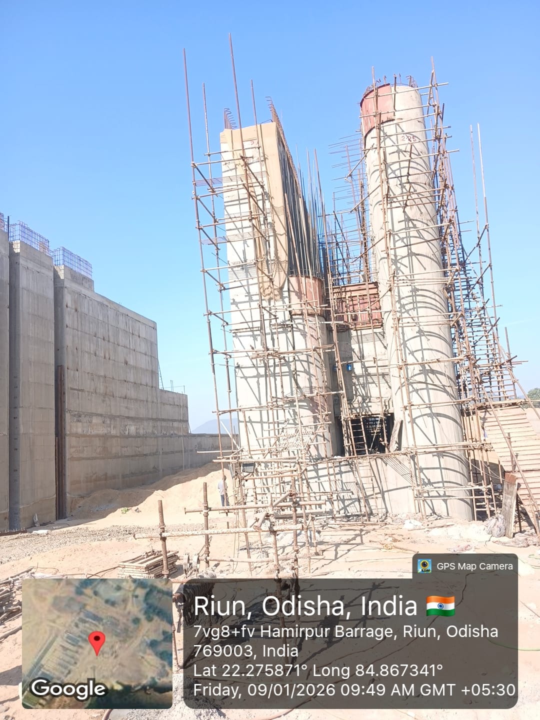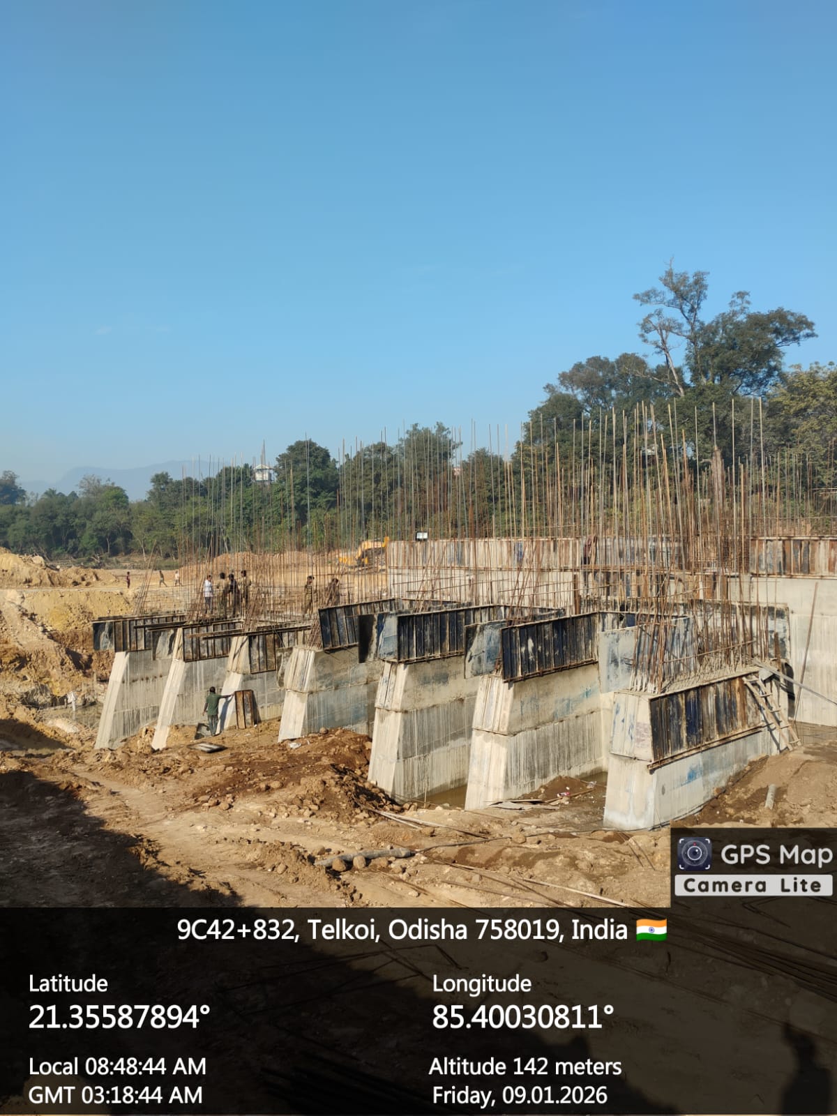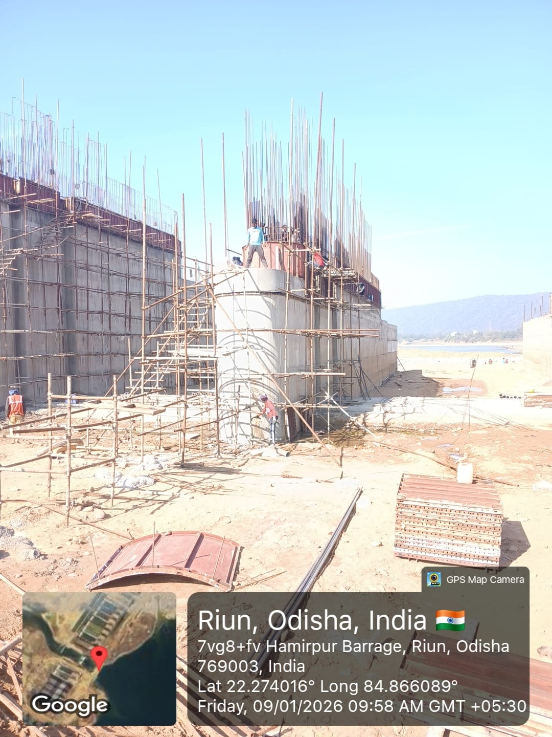 Shuttering work at right side u/s flank wall for 3rd lift & u/s wing wall for 6th lift RCC is under progress on 08.01.2026