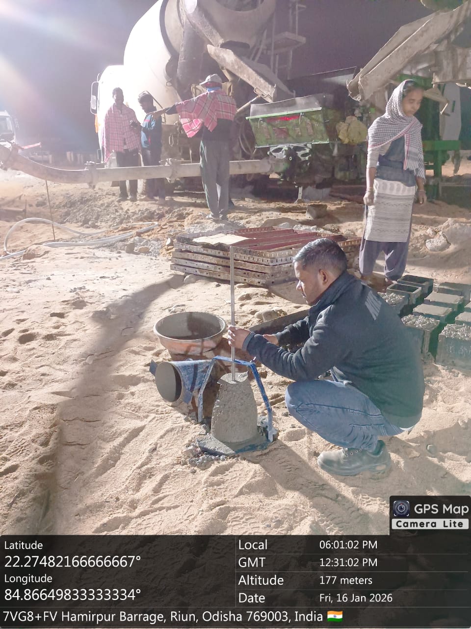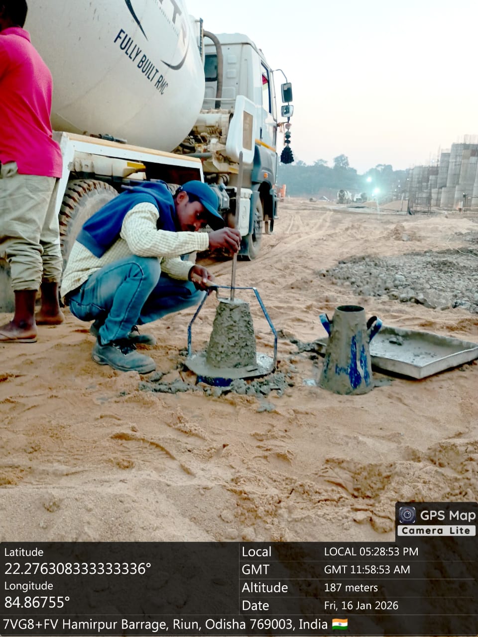 Slump testing M25A20 (Value 160 mm) of U/S Barrage bay Panel No-14 done in presence of Client & PSS Team.
