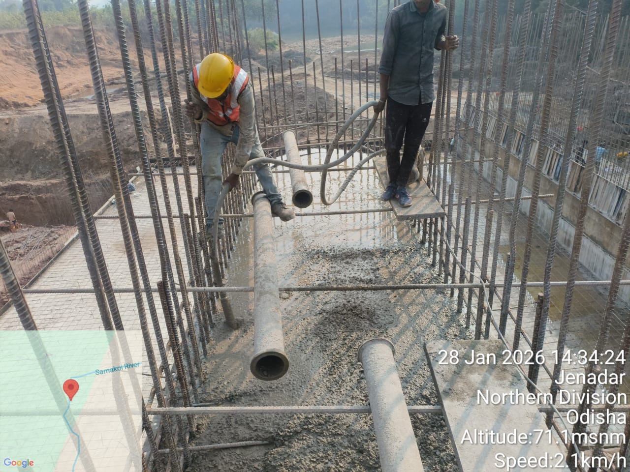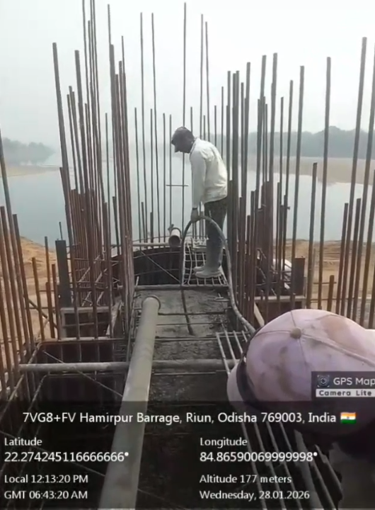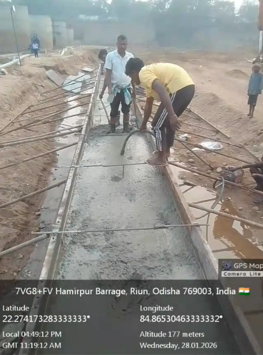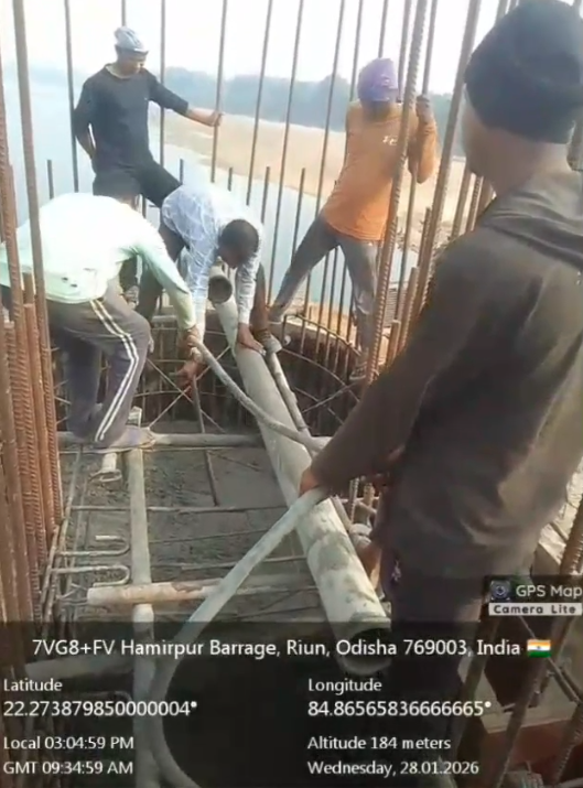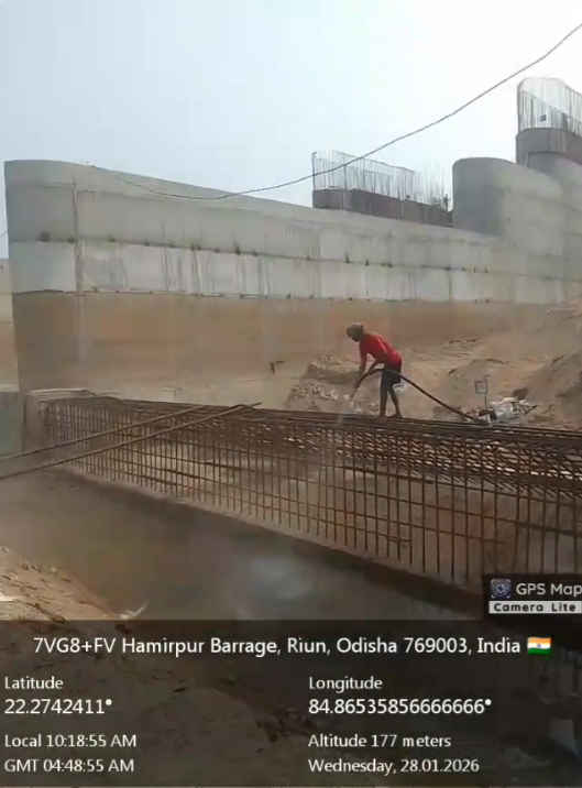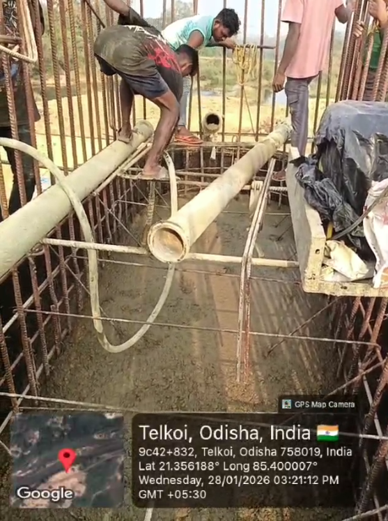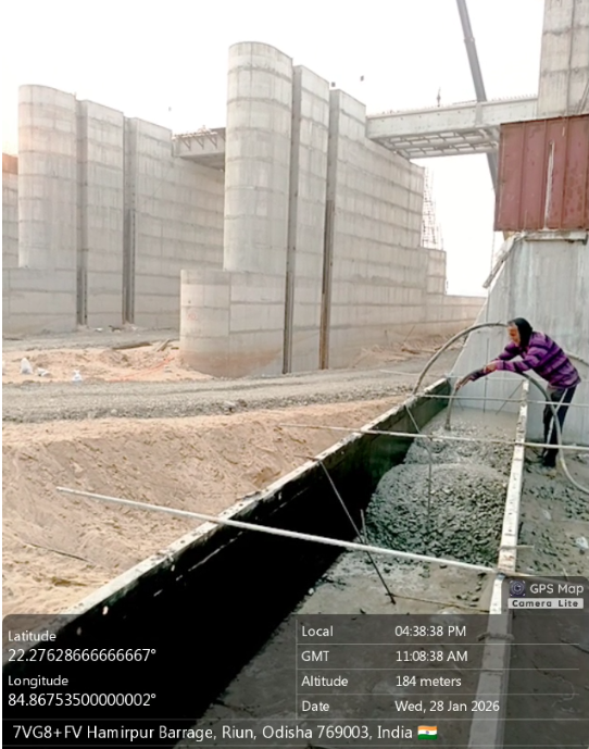 (iii).The area is cleaned properly through air water jetting and passed by SE, KID, Bhawanipatna for placing with RCC M35A20 grade on 27.01.2026