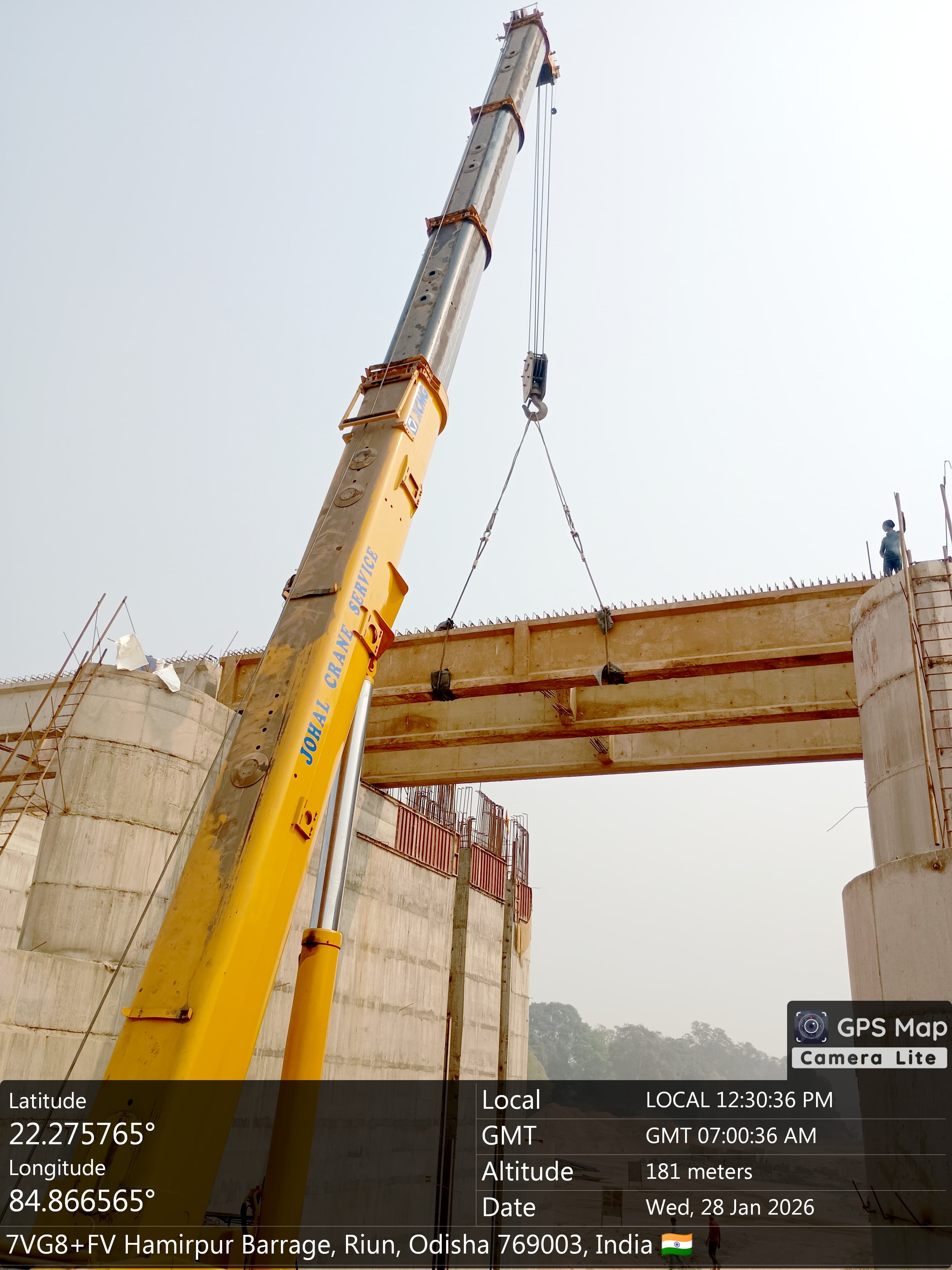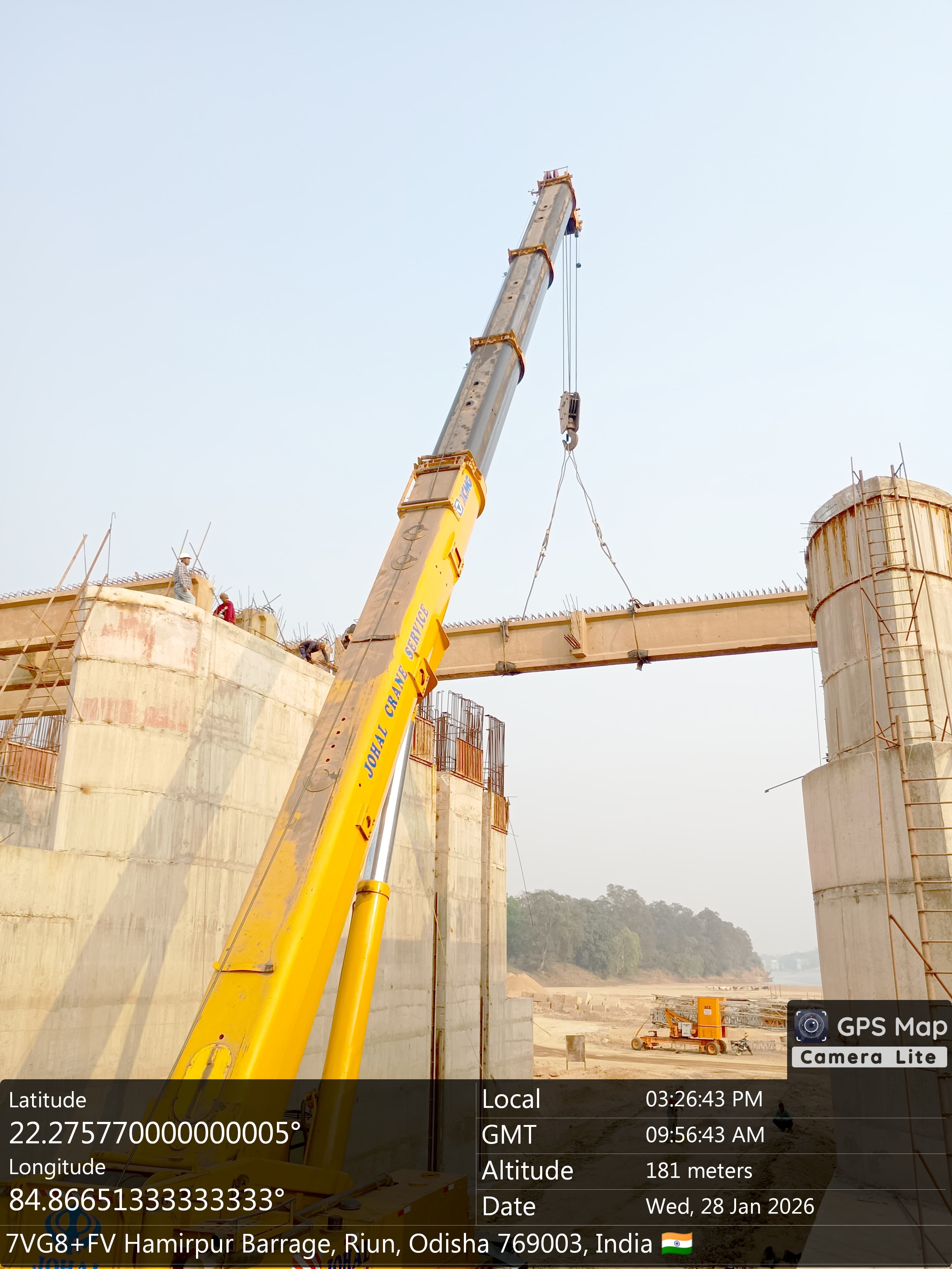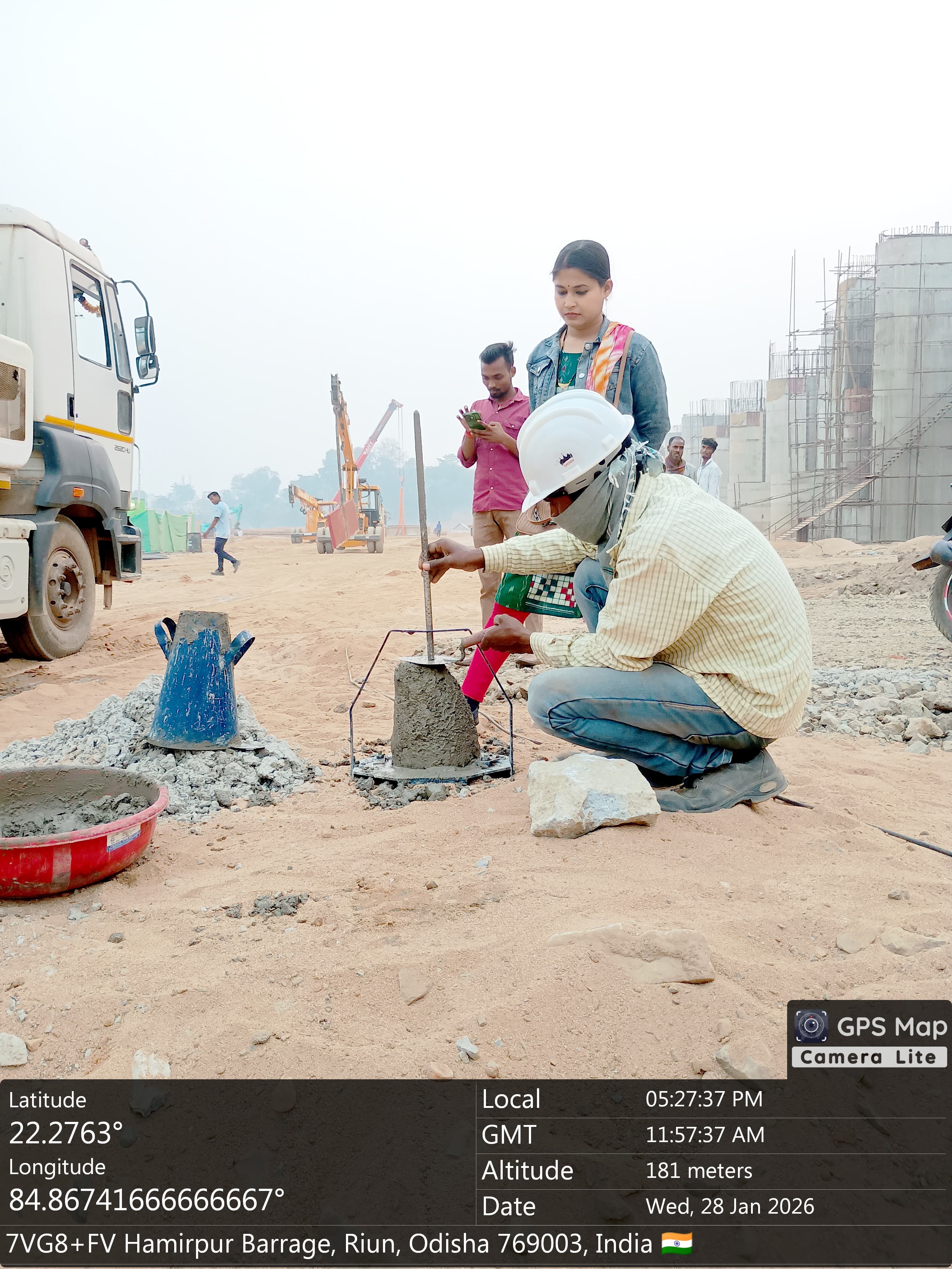 Concrete casting with M35A20 grade for 2nd stage concrete for stoplog & service gate grooves at bay-6 of Pier no.6 for 6th lift is in progress in presence of PM,EPC agency,Site Engineers of PMC & Site Engineer of EPC agency. The slump test value is 74mm on 27.01.2026