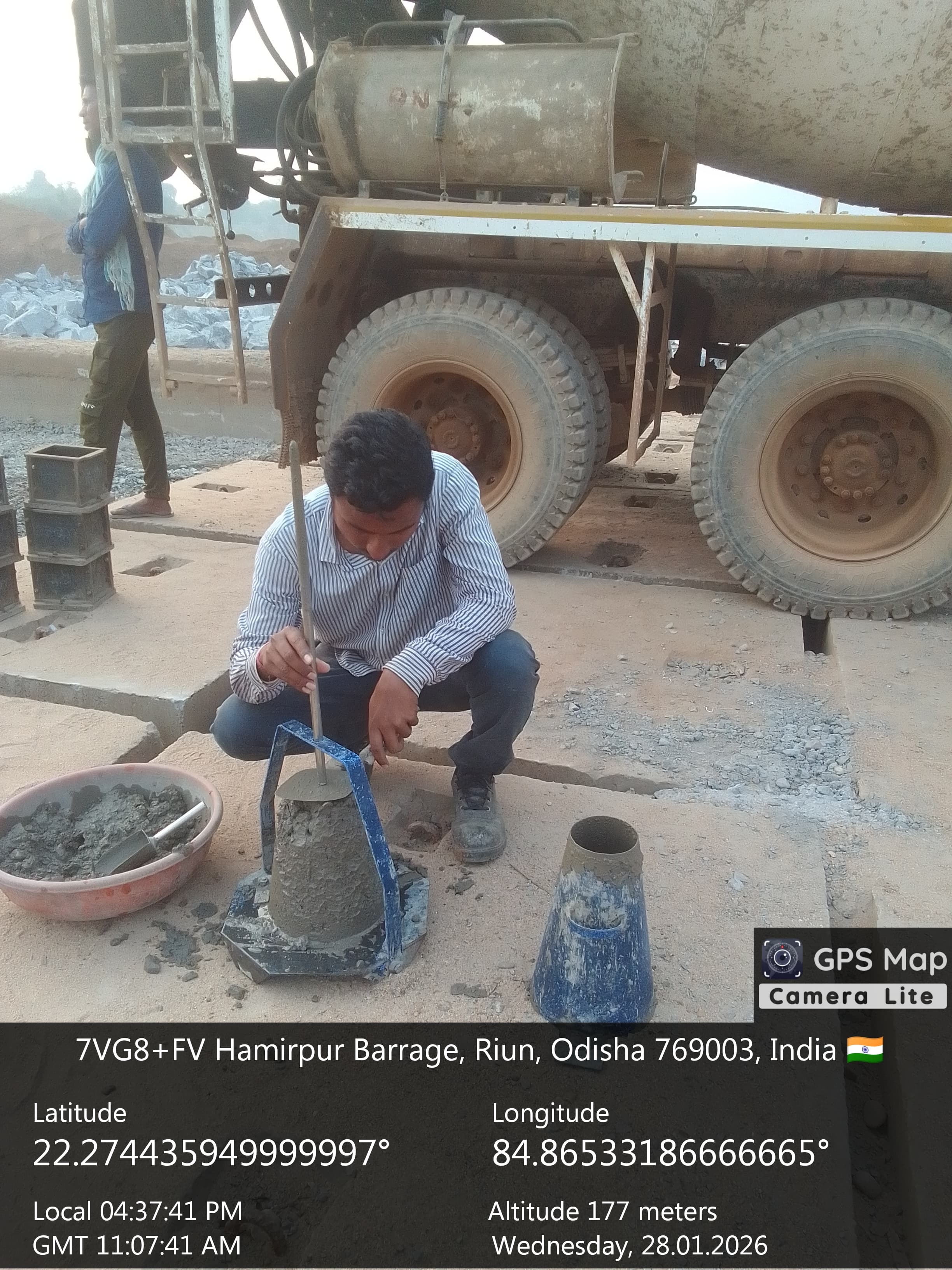 Concrete casting with M35A20 grade for 2nd stage concrete for stoplog & service gate grooves at bay-5 of Pier no.5 for 7th lift is in progress in presence of PM,EPC agency,Site Engineers of PMC & Site Engineer of EPC agency. The slump test value is 74mm on 27.01.2026