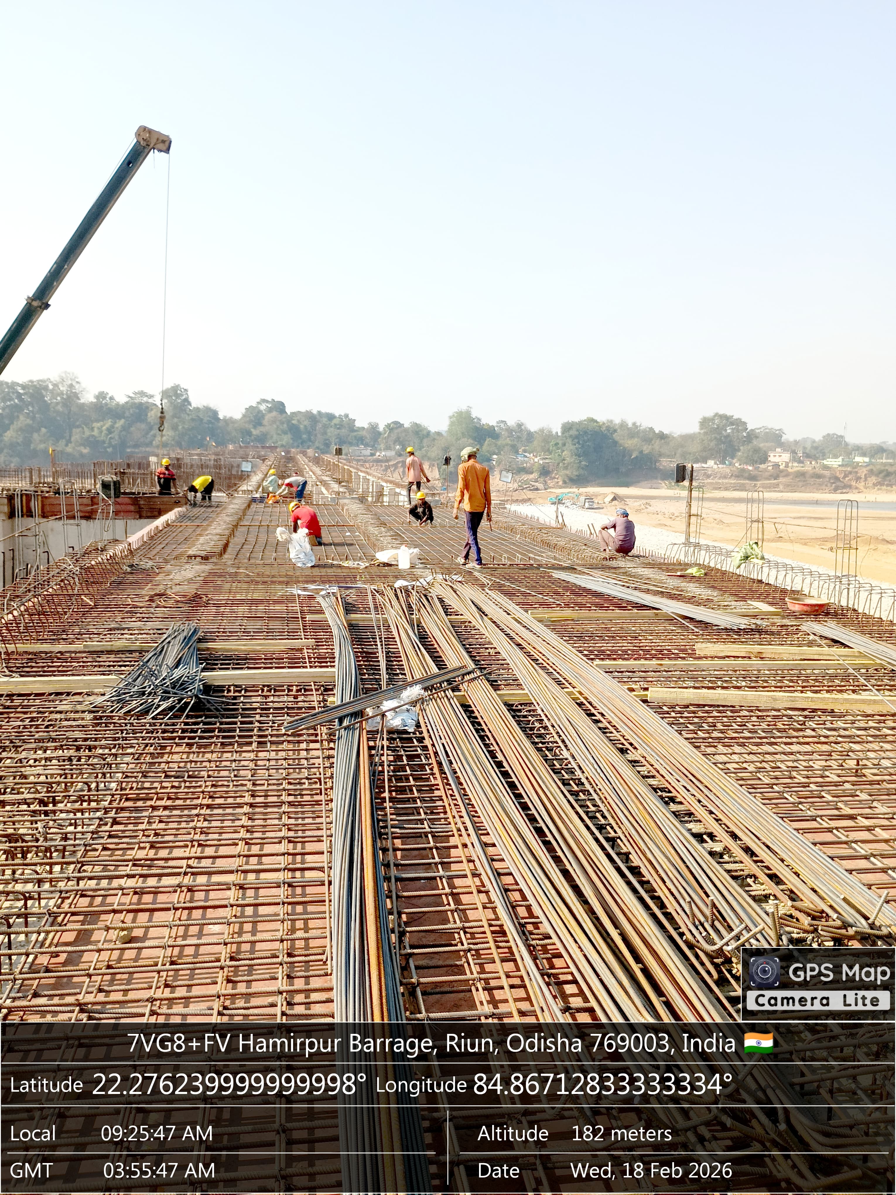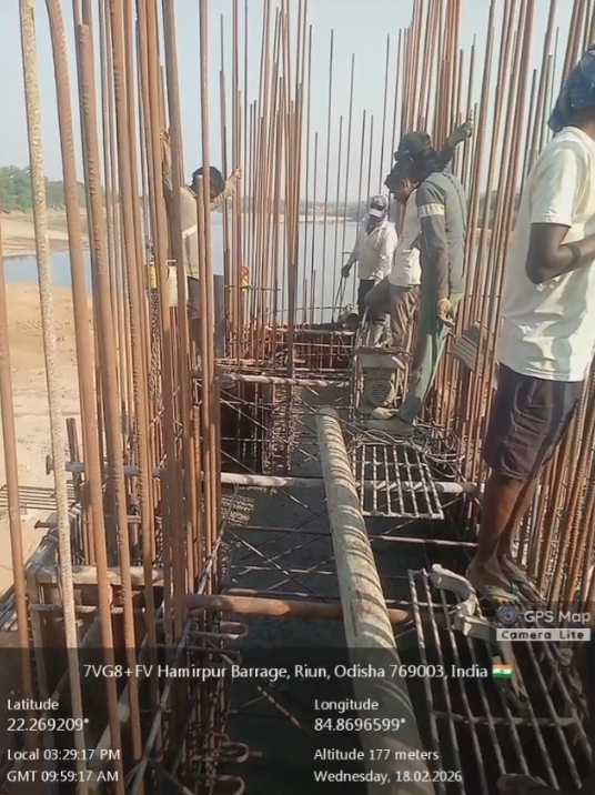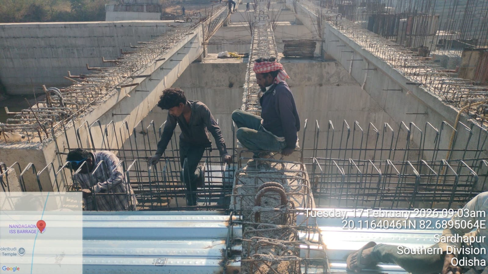 • 3. Reinforcement works including shuttering for casting of 2nos. cross girders with RCC M35A20 grade at Pier No.:-8 for span-8&9 of barrage bay-6&7 is completed and checked in presence of PM,EPC agency, Site Engineer of PMC and Site Engineer of EPC Agency as follows: