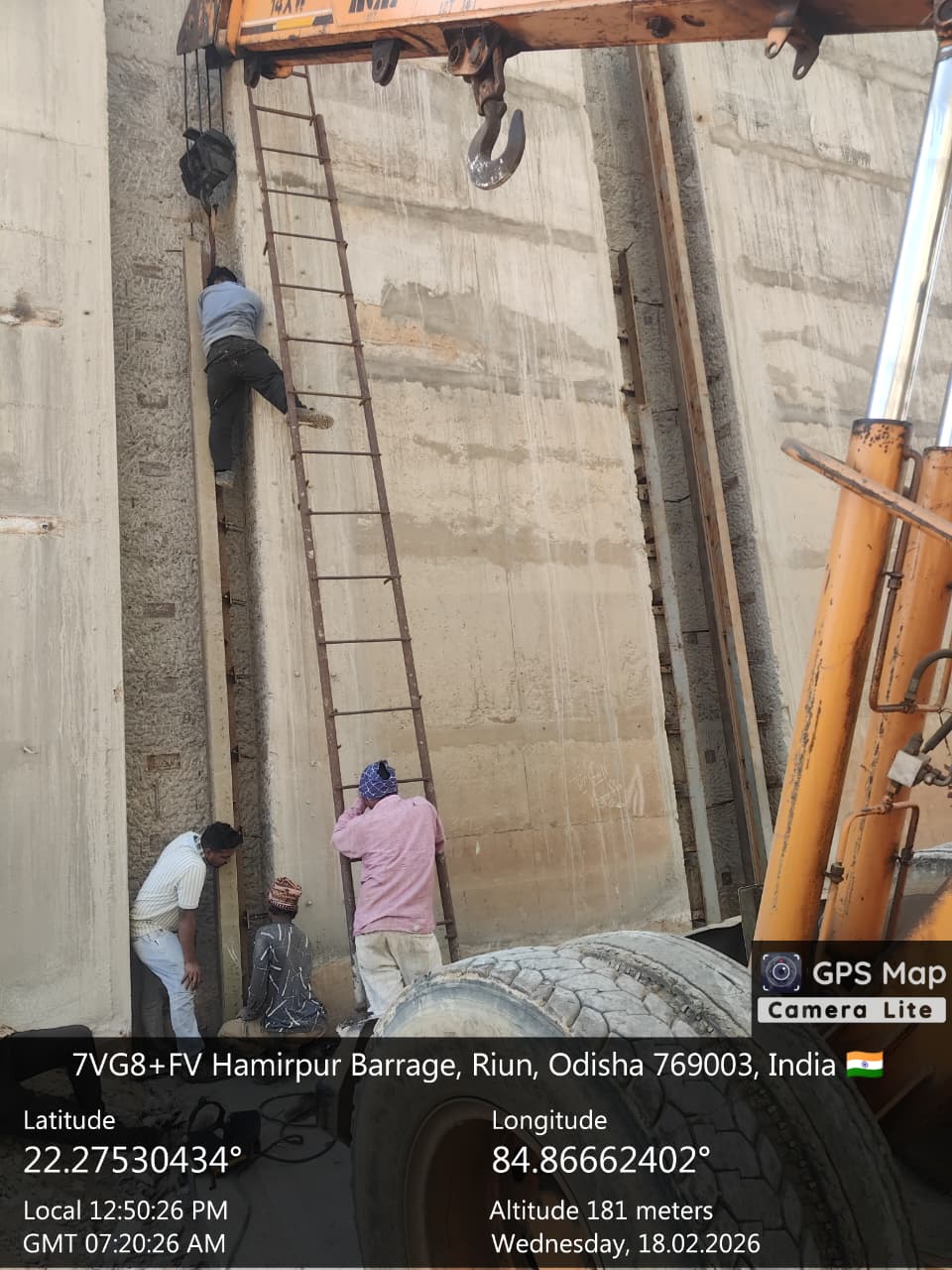 Sill beam installation work at under-sluice bay in between P9 & A2 is under progress on 18.02.2026