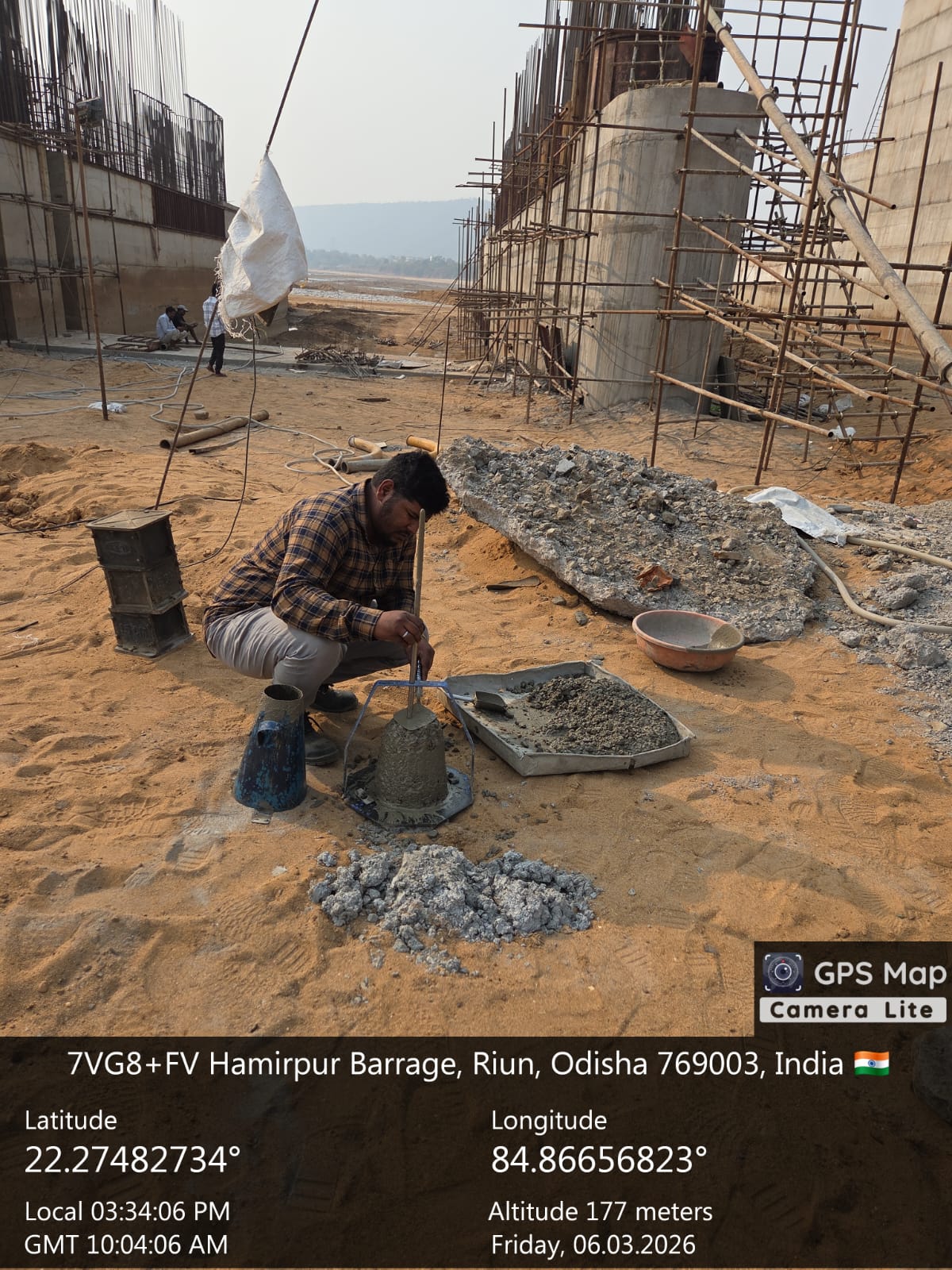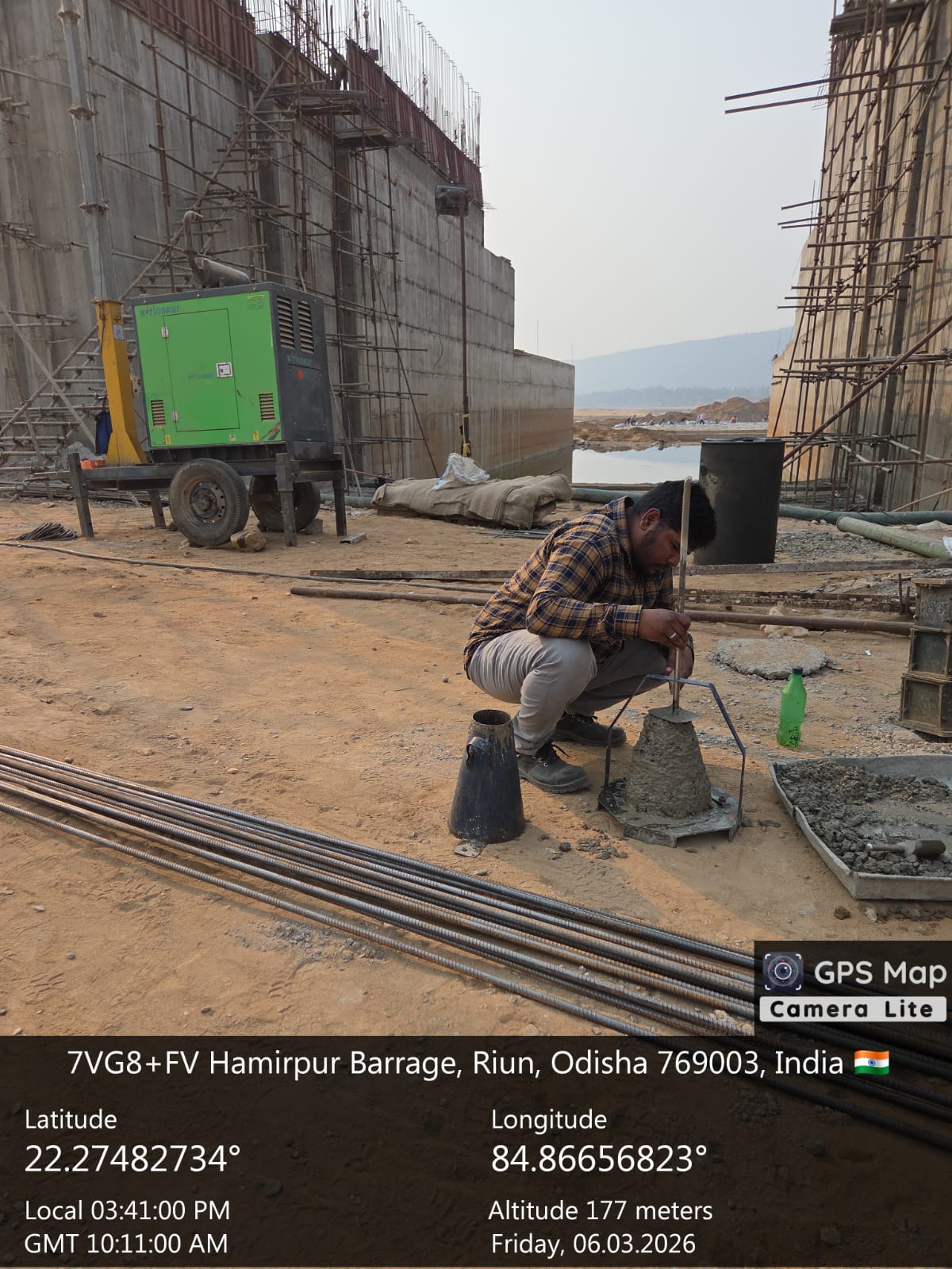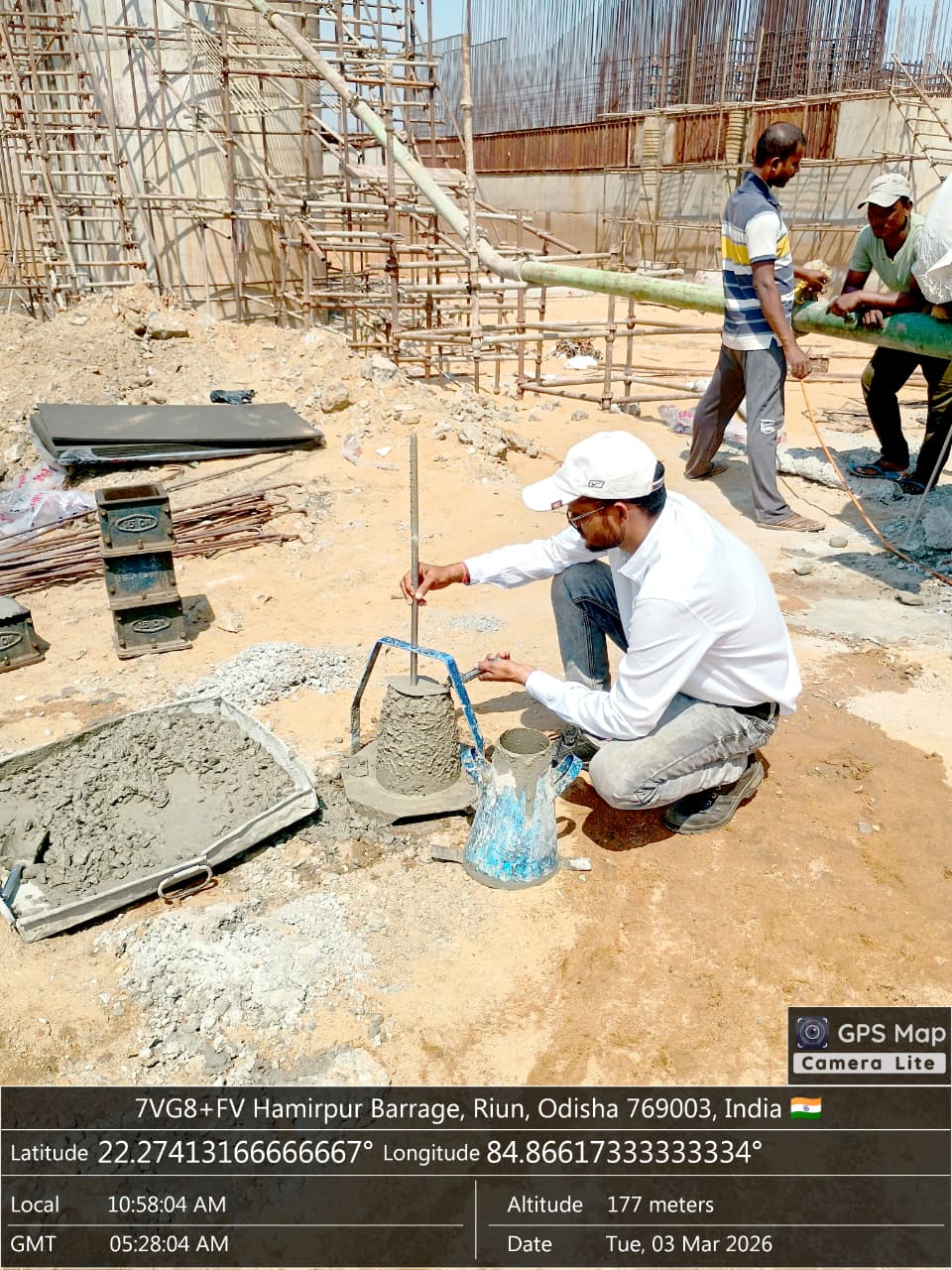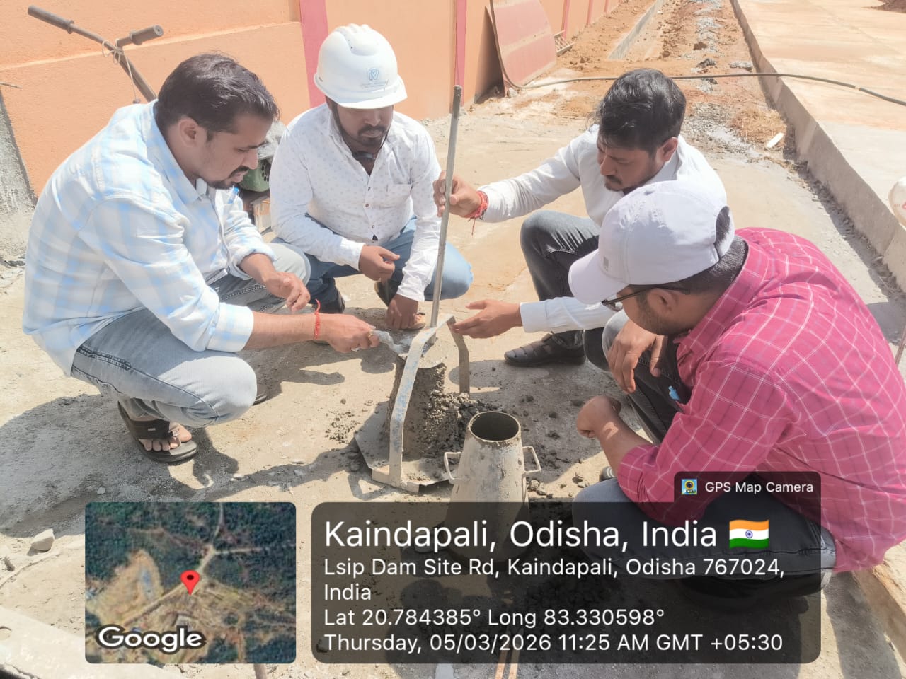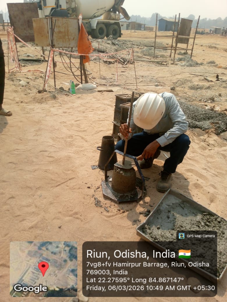 Slump testing work is in progress for internal approach road block casting at Pump House in presence of DoWR AEE and PMC team.