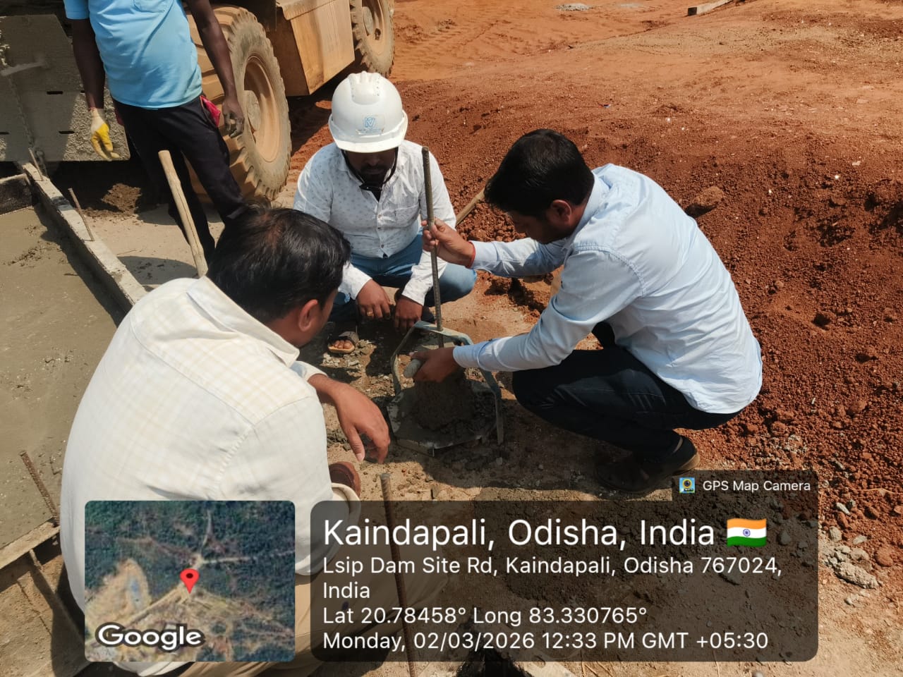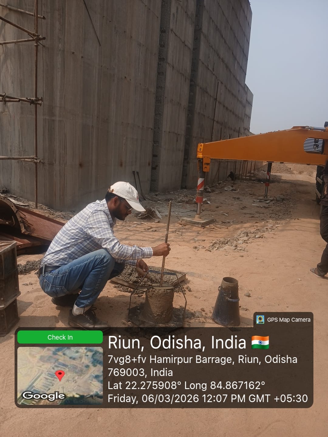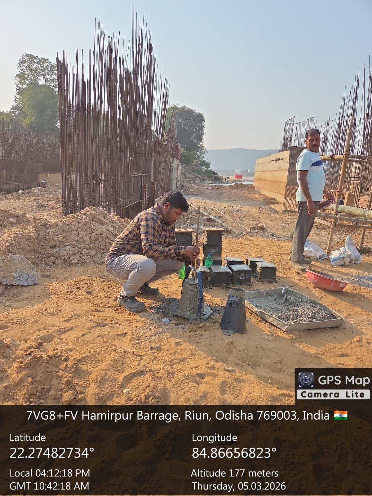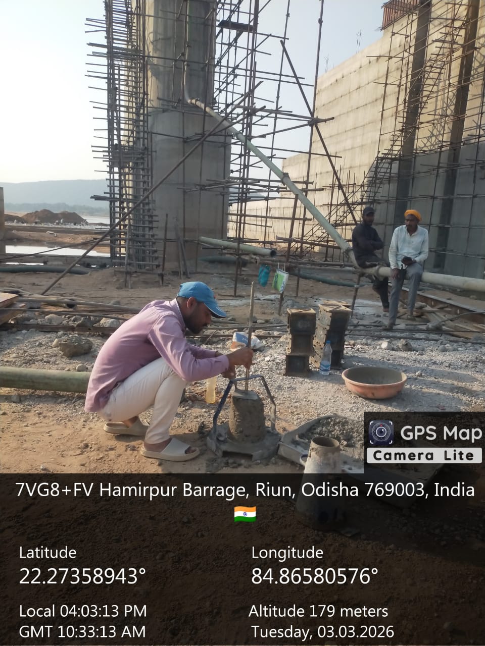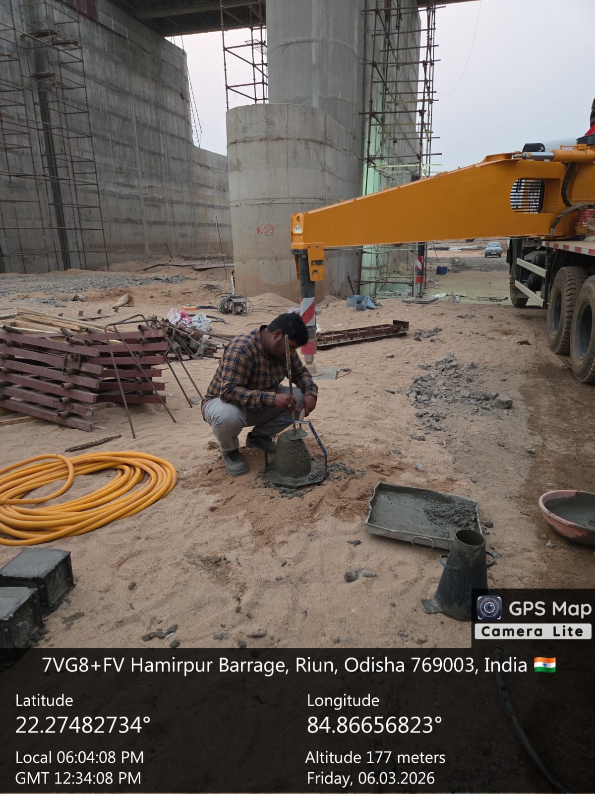 Slump testing work is in progress for internal approach road block casting at Pump House in presence of DoWR AEE and PMC team.