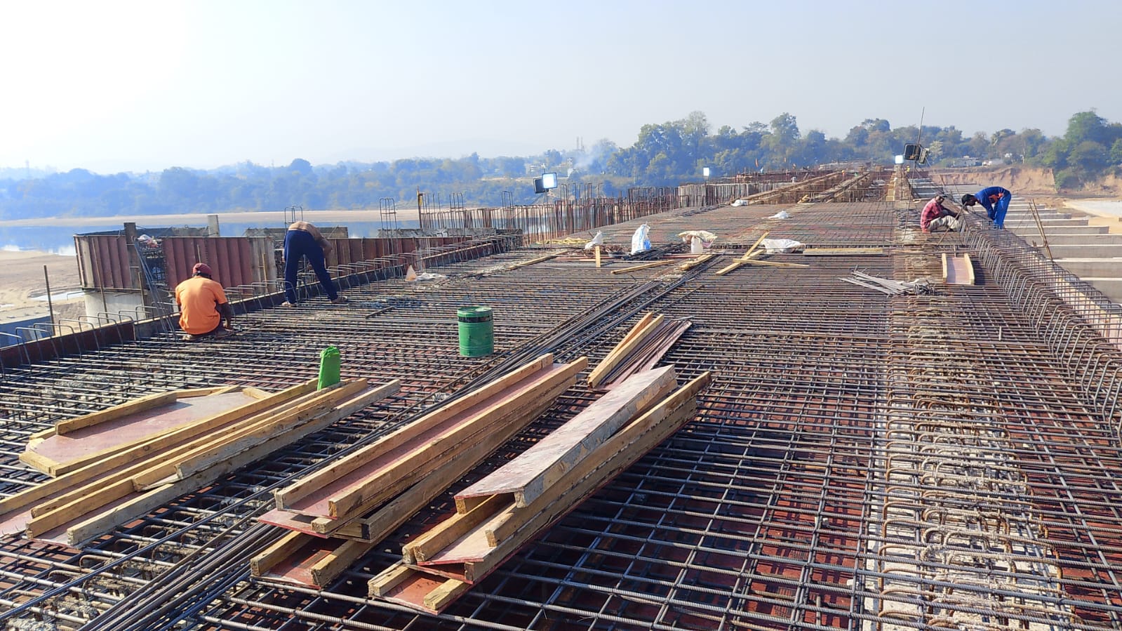 Binding of reinforcement for Pier No-21, 6th lift is under progress.