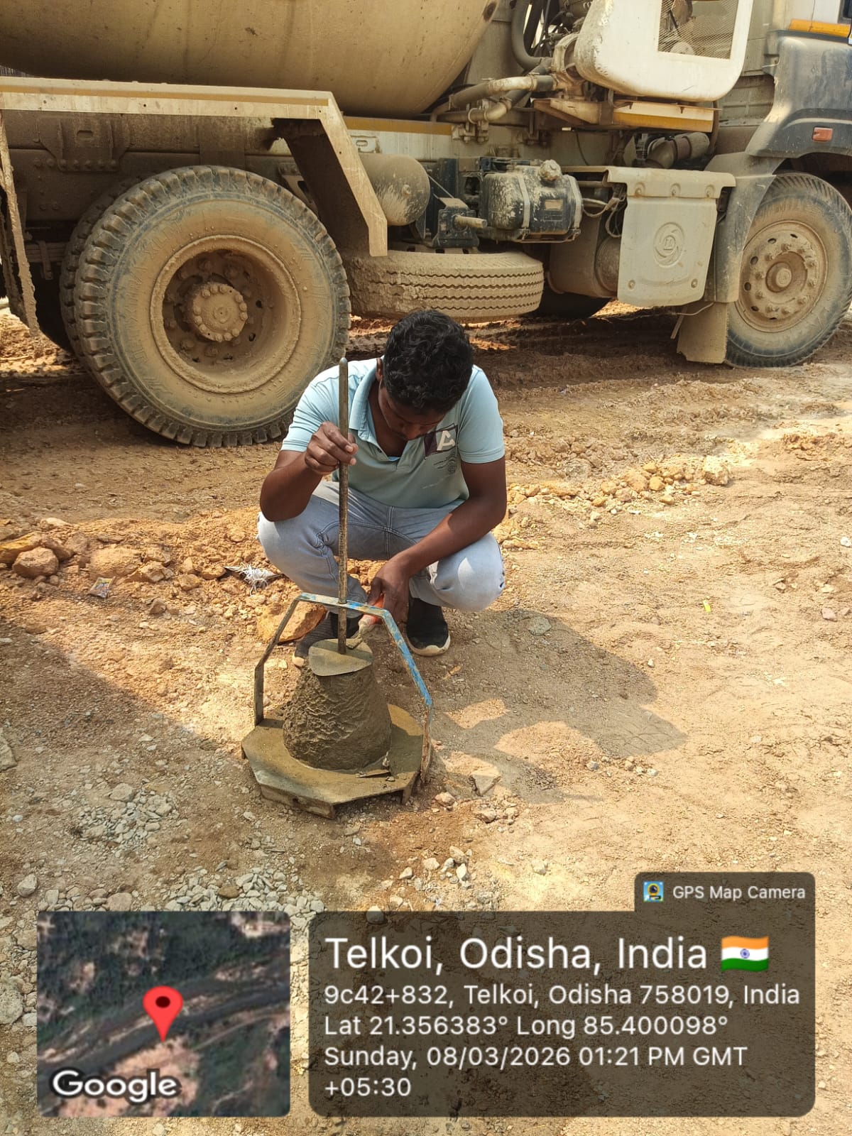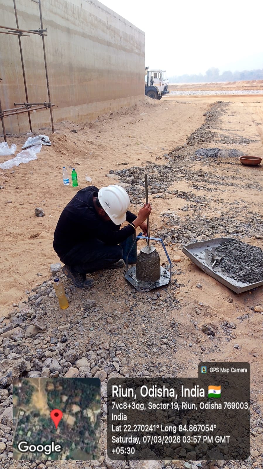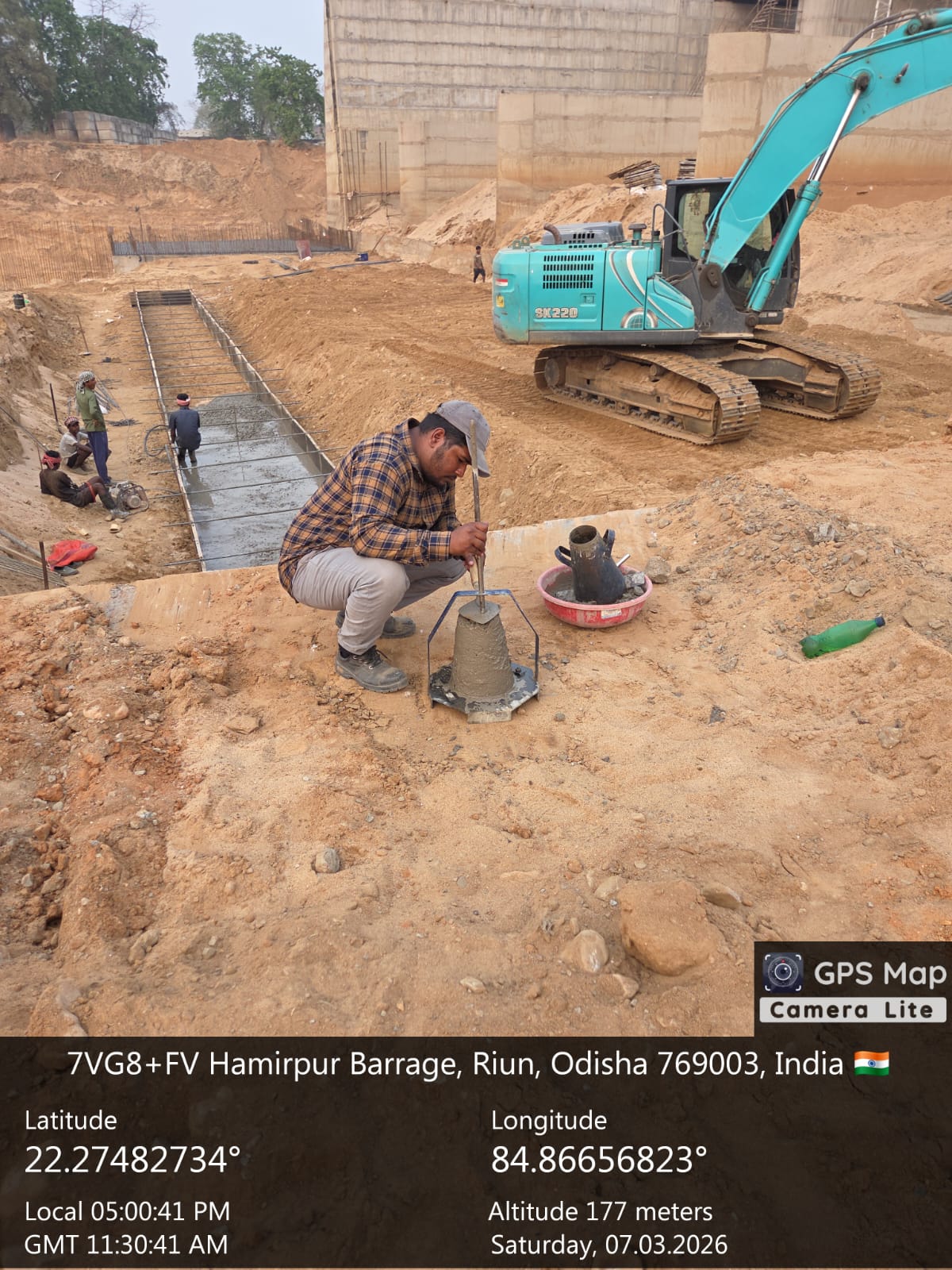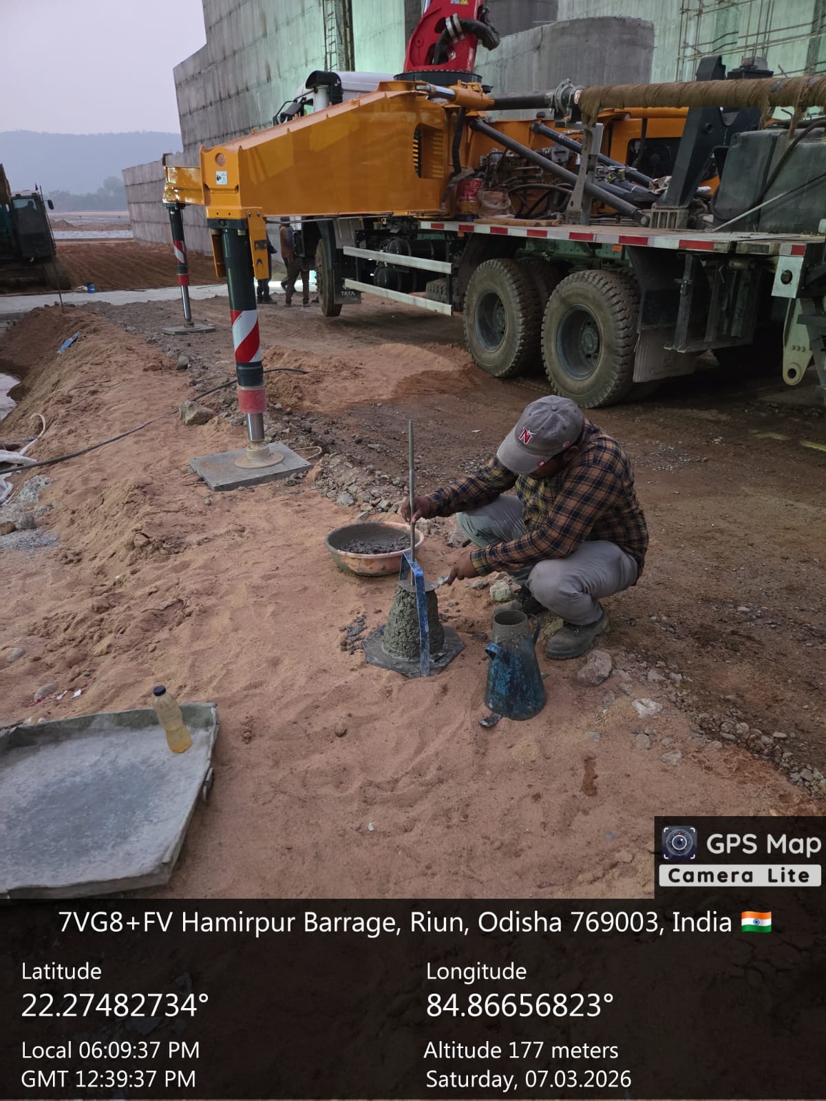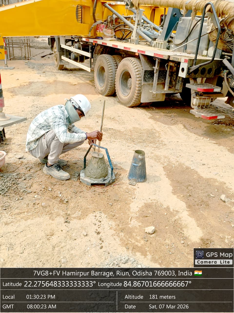 Slump testing M25A20 (Value 85 mm) of D/S Flank wall, Cut-off at Block No-5 done in presence of Client & PSS Team.