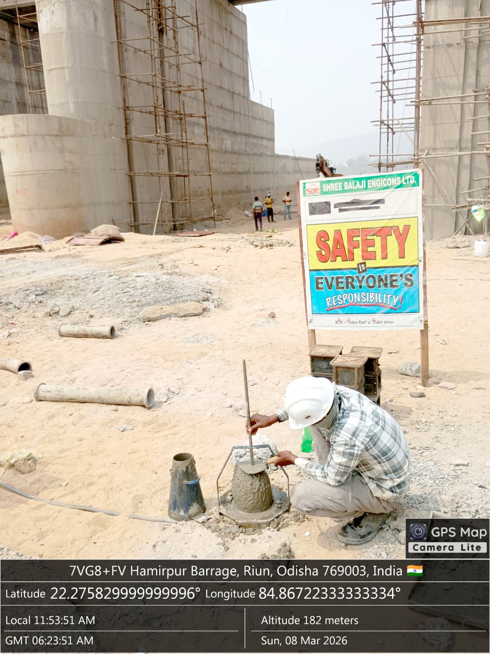 Slump testing M25A20 (Value 80 mm) of LHS Double pier, 7th lift done in presence of Client & PSS Team.