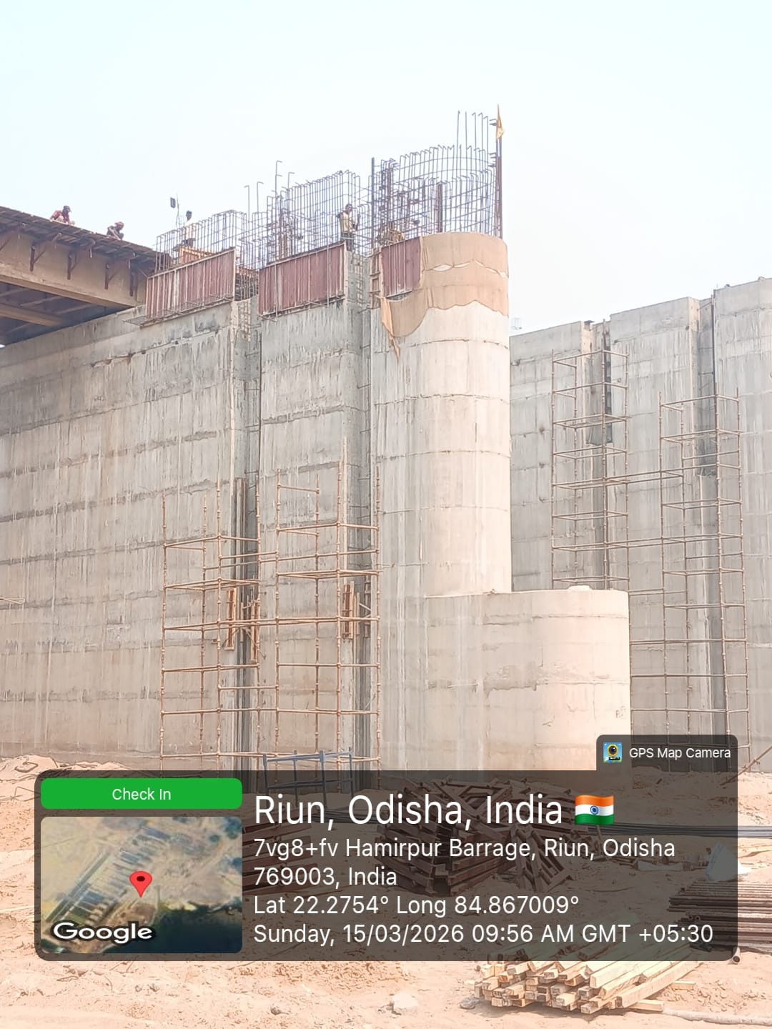 • 1.Fixing & fittings and alignment of 2nd. stage embedded parts and sufficient numbers of dowel bars at roller tracks of both stoplog & service gate grooves at under sluice bay No.1 of Pier No. 1 & left abutment for 2nd lift has been checked and found correct by HM Expert of PMC during his site visit on dt.11.03.2026 in presence of all civil n mechanical Site Engineers of PMC and EPC Agency as per the approved Mechanical drawing & designs.