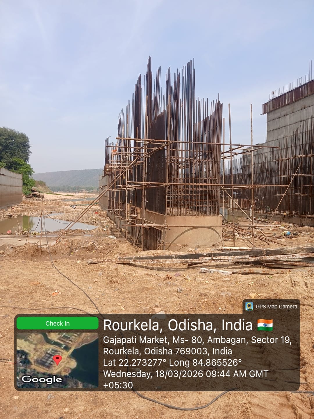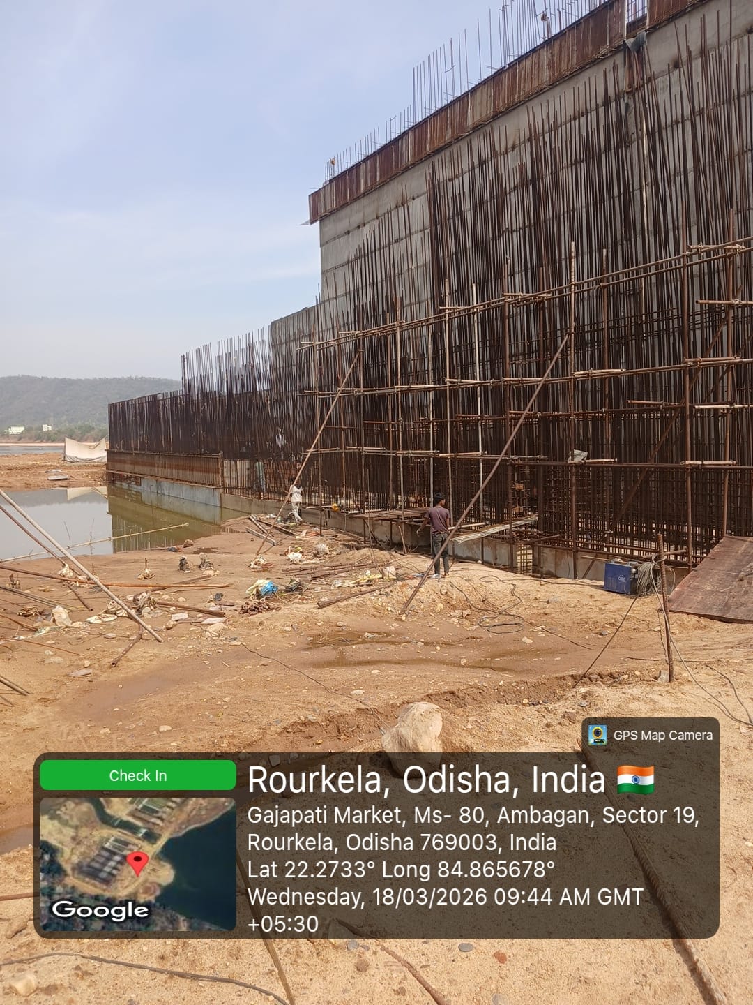 Barrage bay raft reinforcement fixing work in progress at baitarani iss project- 19.03.2026