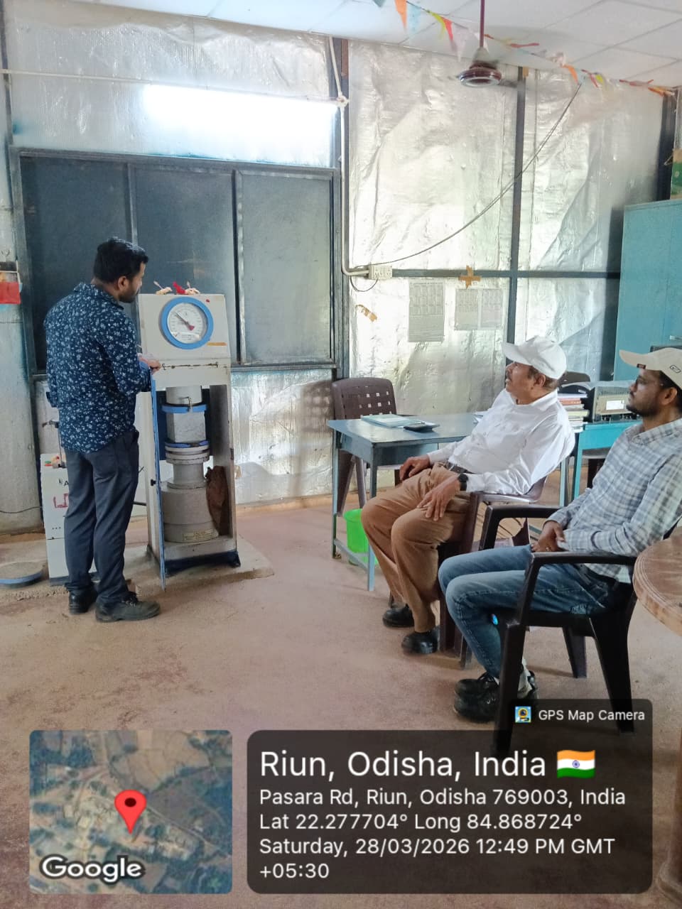 Testing of Compressive M25A20 (Strength is 30.86/mm2 for 28 days) of Pier no-1, 5th lift and (Strength is 21.33/mm2 for 07 days) of Pier no-6, 12th lift and M15A40 (Strength is 20.65/mm2 for 28 days) of D/S Flank wall (PCC) at block No-5 has done in presence of Client & PSS team.