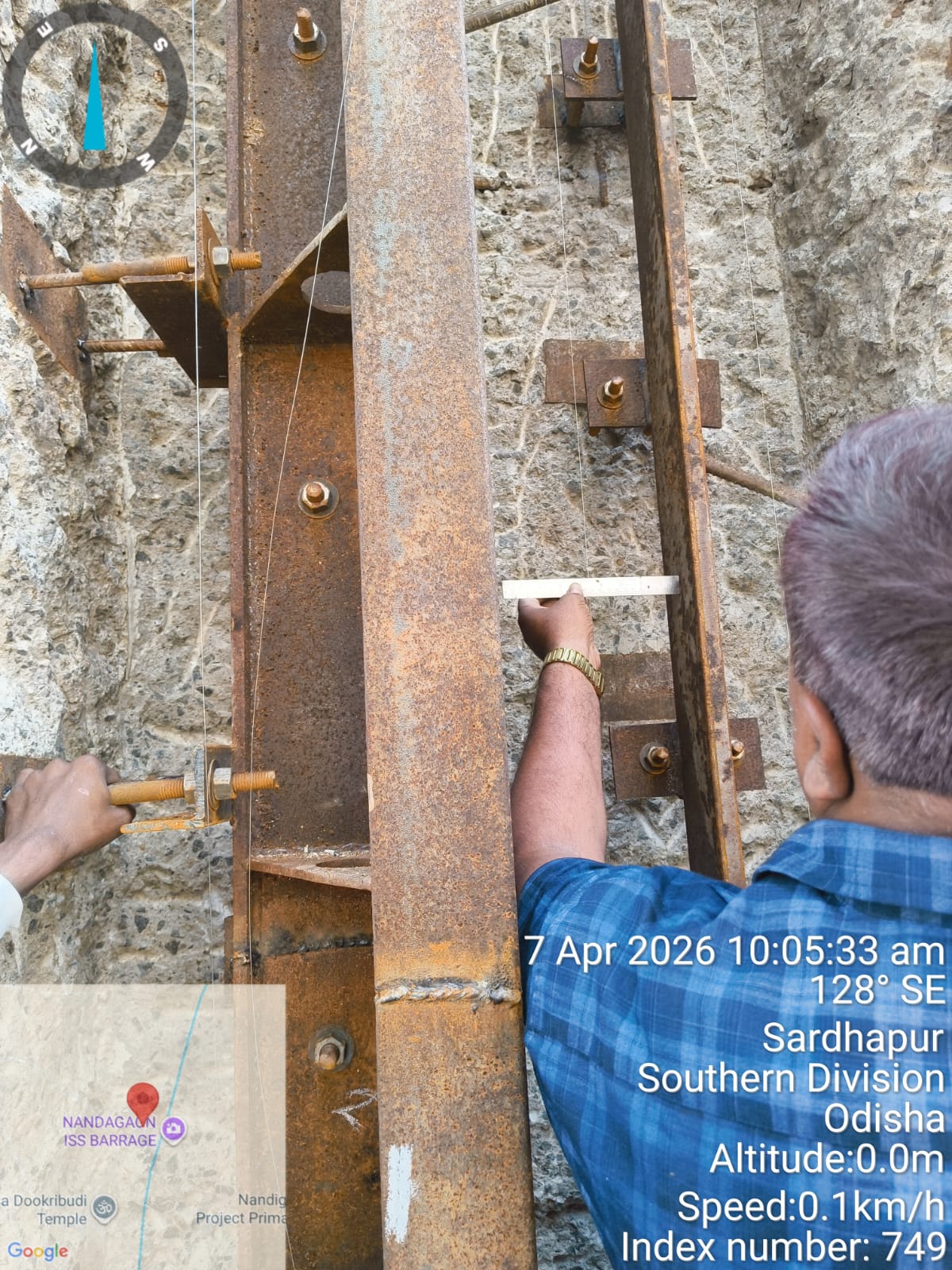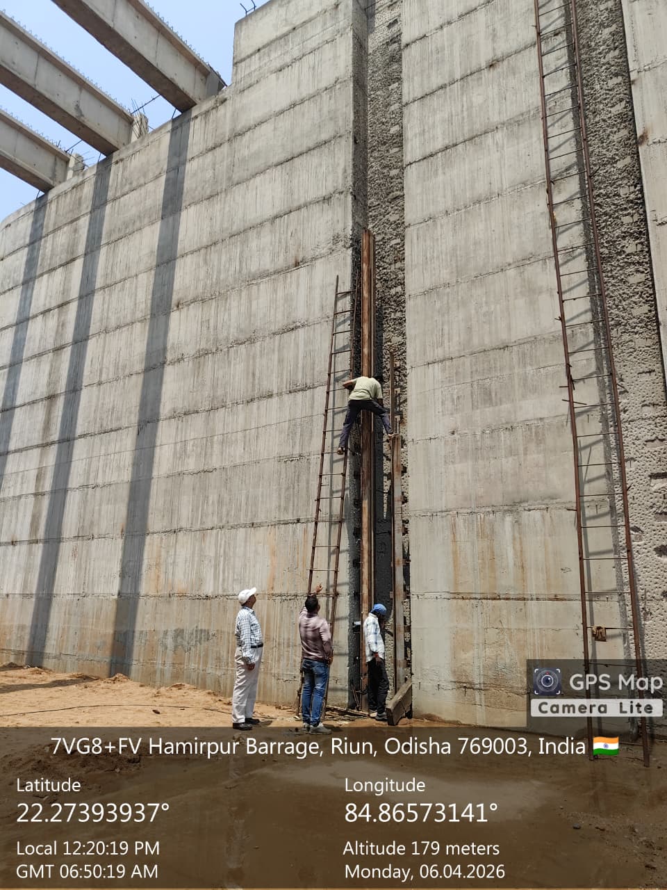 • 2.Fixing & fittings and alignment of 2nd. stage embedded parts and sufficient numbers of dowel bars at roller tracks of both stoplog & service gate grooves at undersluice bay No.-1 of Pier No.1& left abutment for 9th lift have been checked and found correct by HM Expert of PMC during his site visit on dt.01.04.2026 in presence of all civil n mechanical Site Engineers of PMC and EPC Agency as per the approved Mechanical drawing & designs.