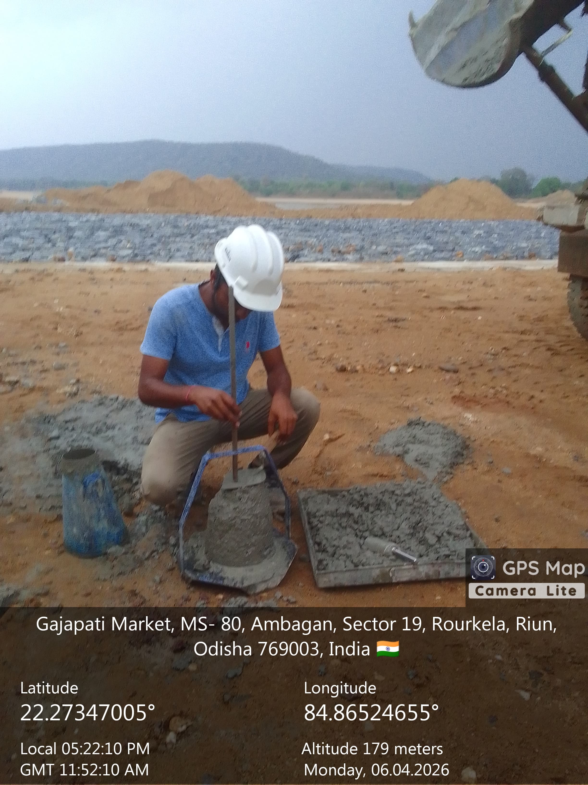 Slump testing M25A20 (Value 85 mm) of Barrage Bay No-2 Mid Cut-off wall, 1st lift done in presence of Client & PSS Team.