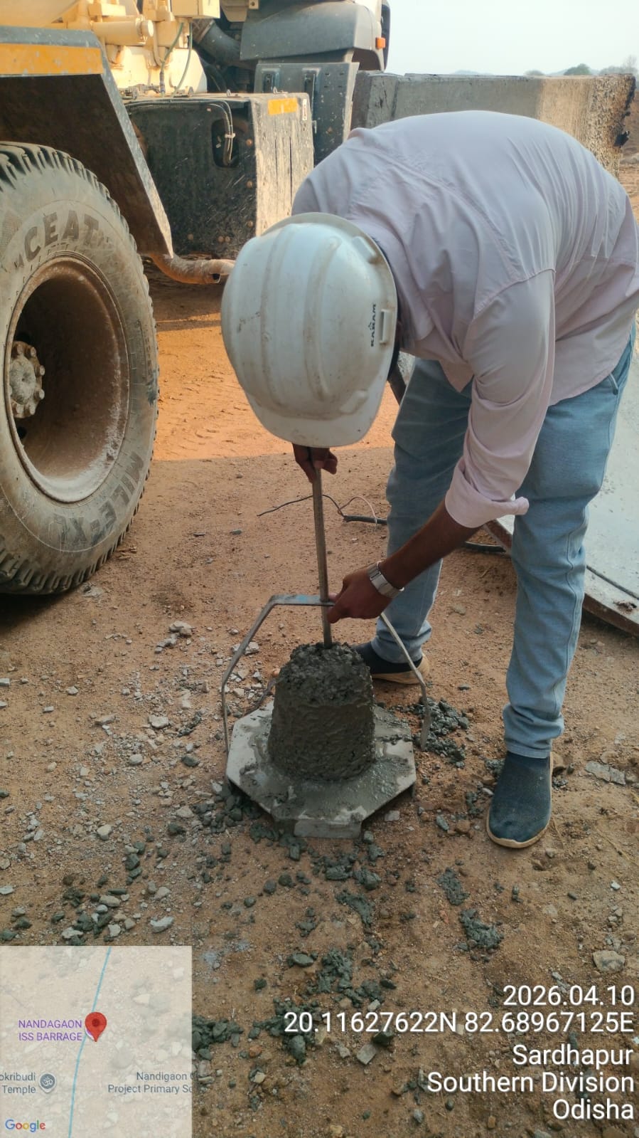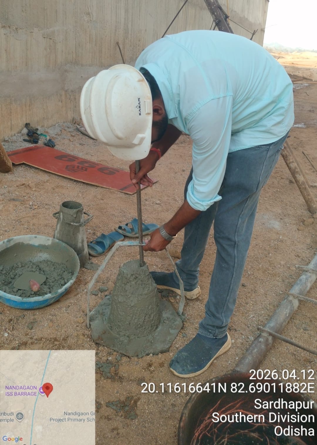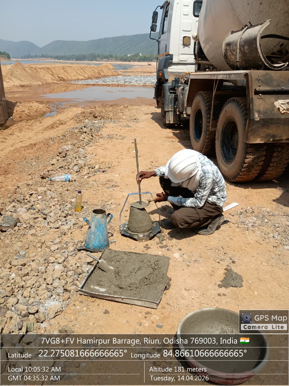 Slump testing M25A20 (Value 80 mm) of Barrage Bay No-2 Mid Cut-off, 2nd lift done in presence of Client & PSS Team