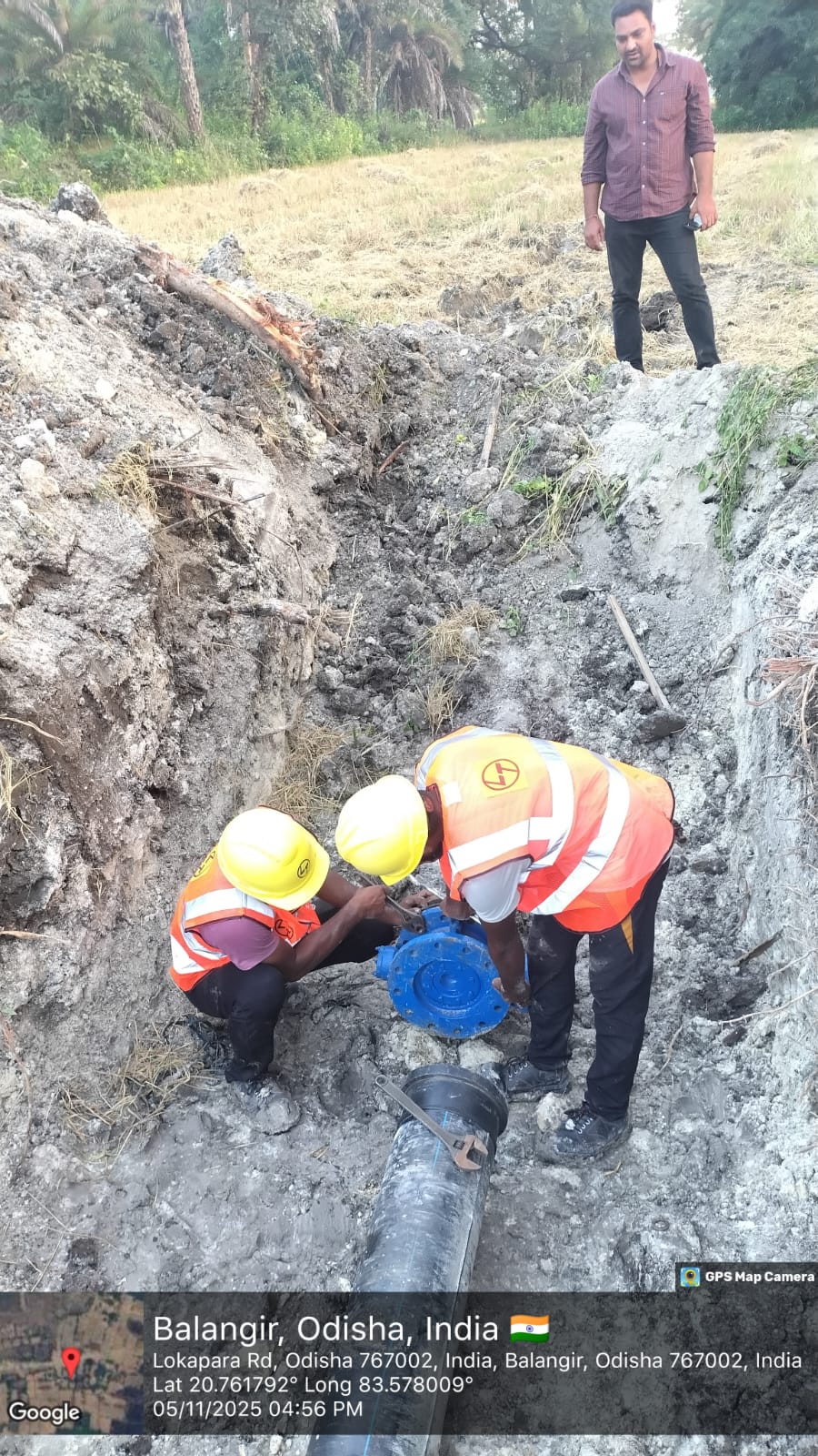 200 mm Dia Butterfly valve fixing work is in progress on HDPE pipe line from J-5174 to J-5283 at village Junapadar in presence of JE( DoWR) and PMC team.