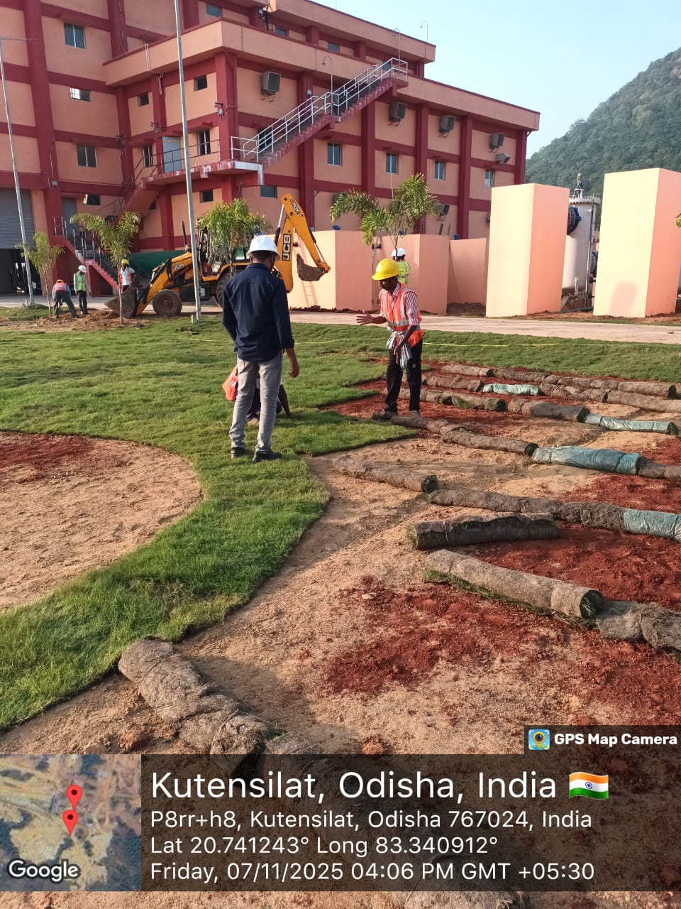 Turfing work is in progress at free space of Pump House village Khuntpali.